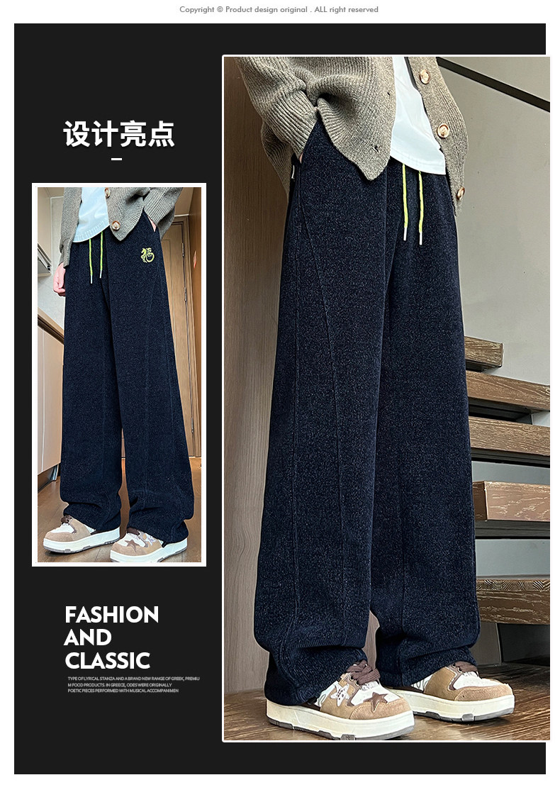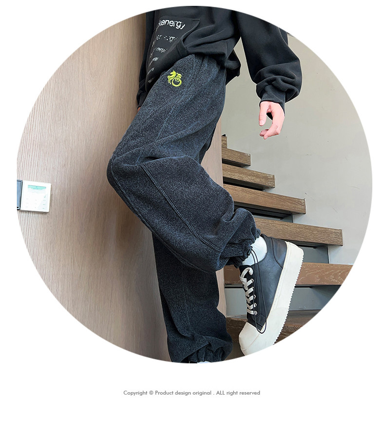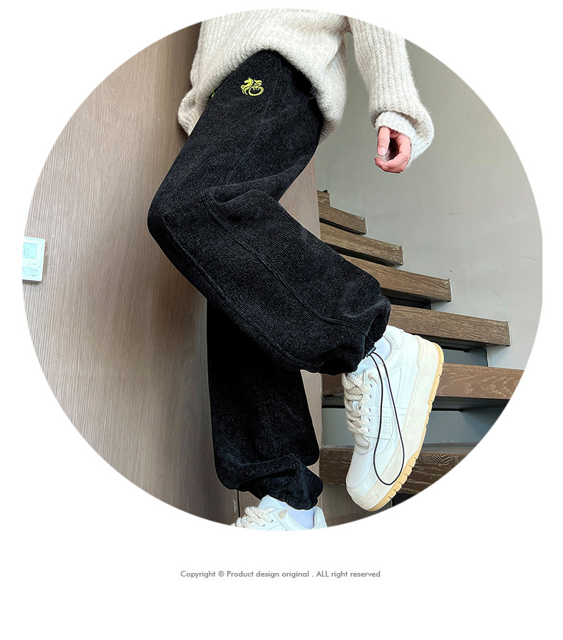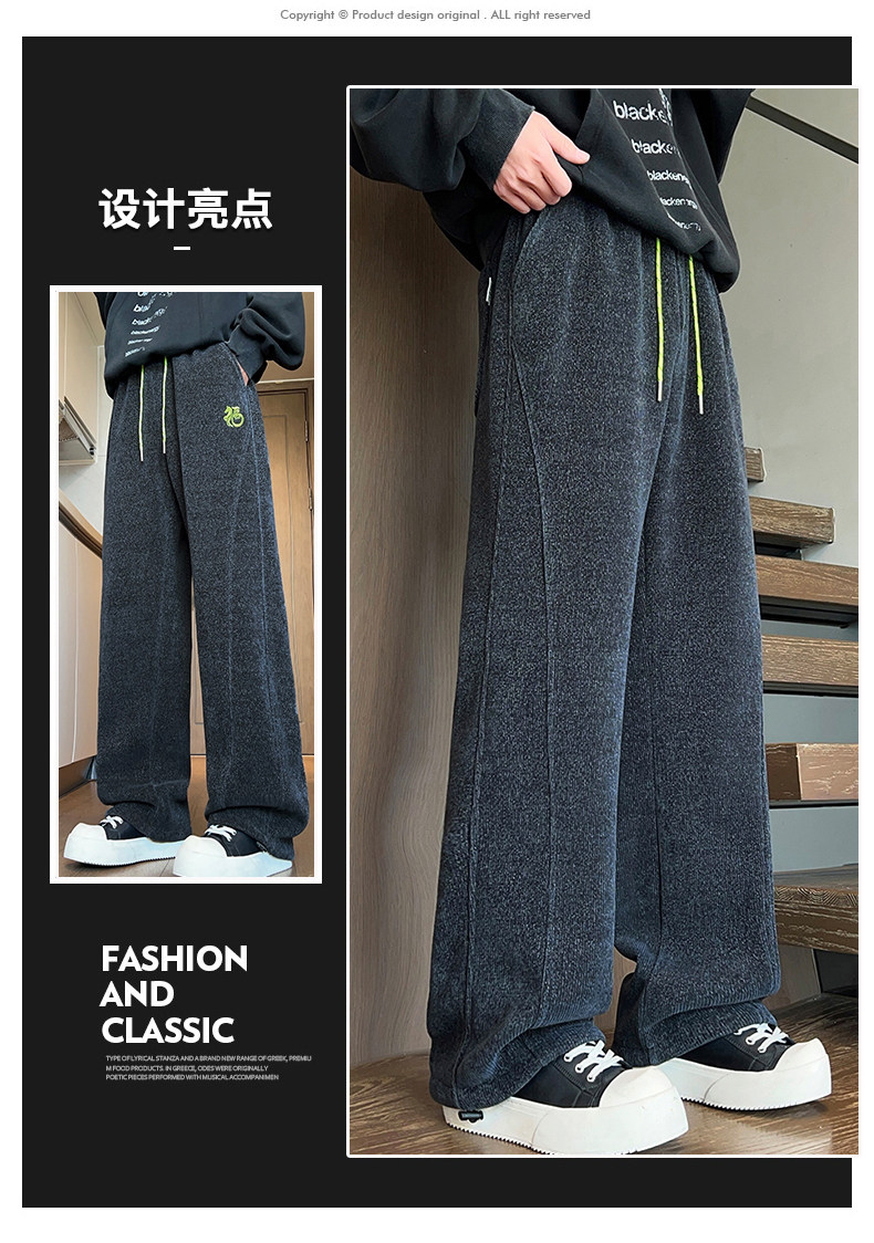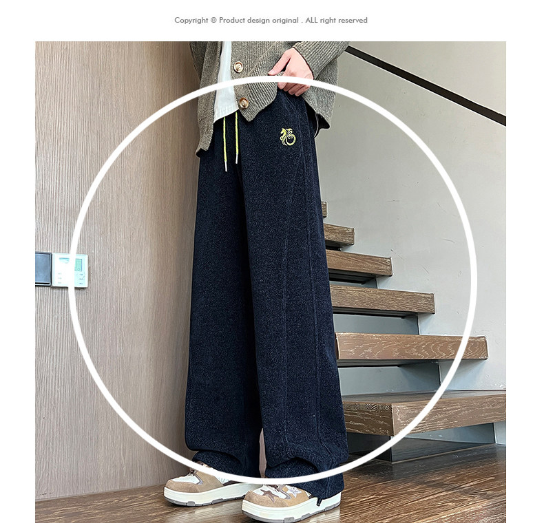 Teenagers' Pants with Fleece Lining, Thickened for Autumn and Winter, Loose Straight-Leg Sweatpants for Boys, Casual Long Pants for Middle and High School Students