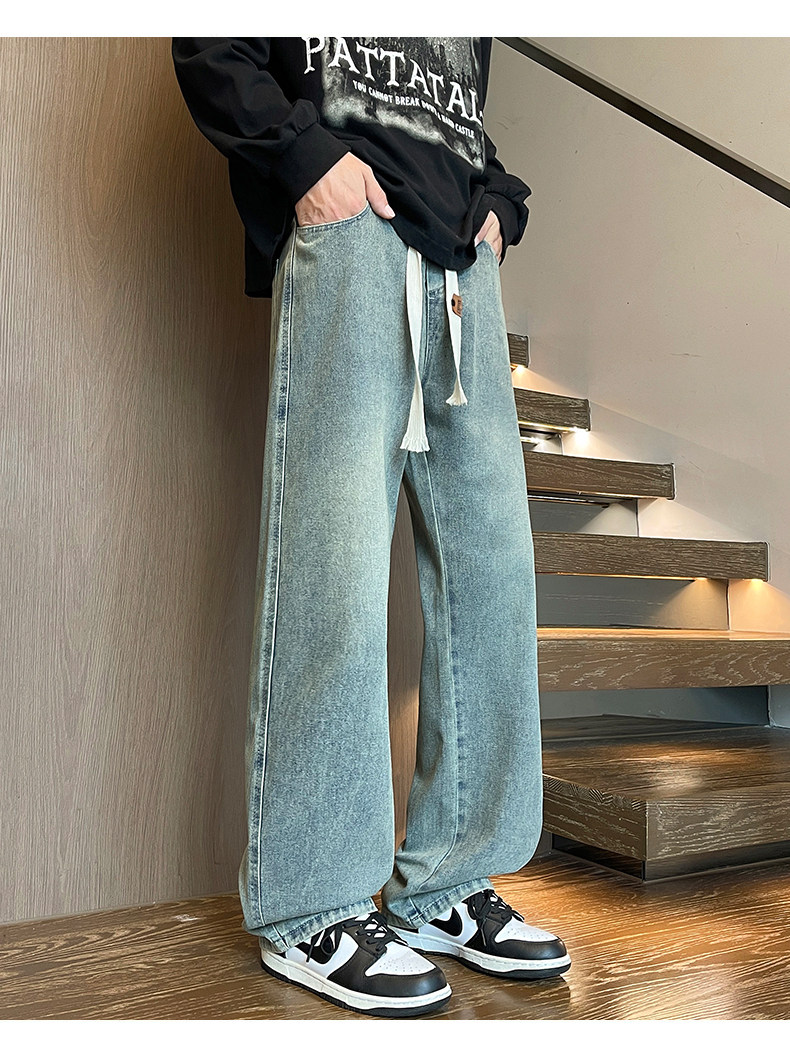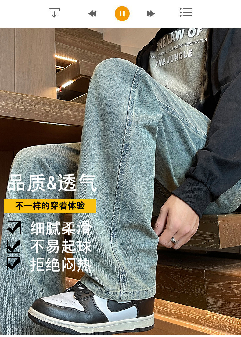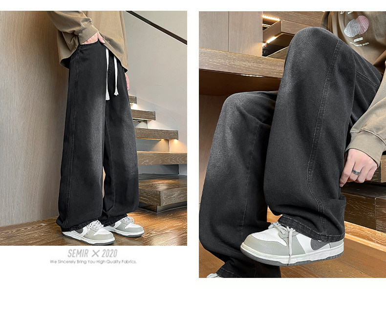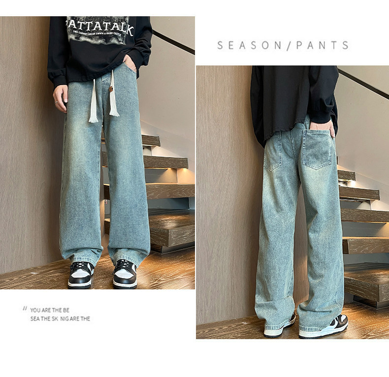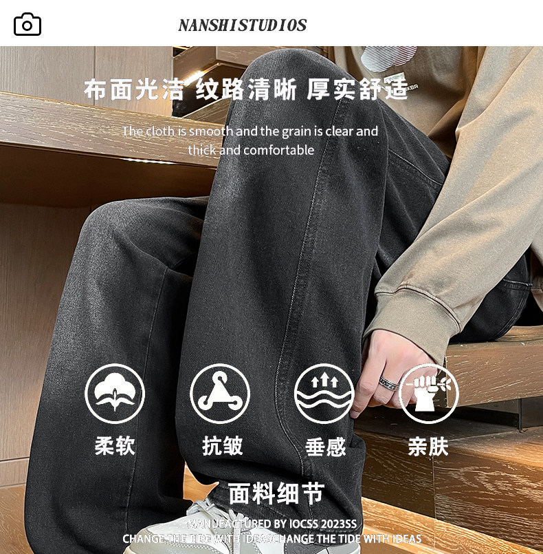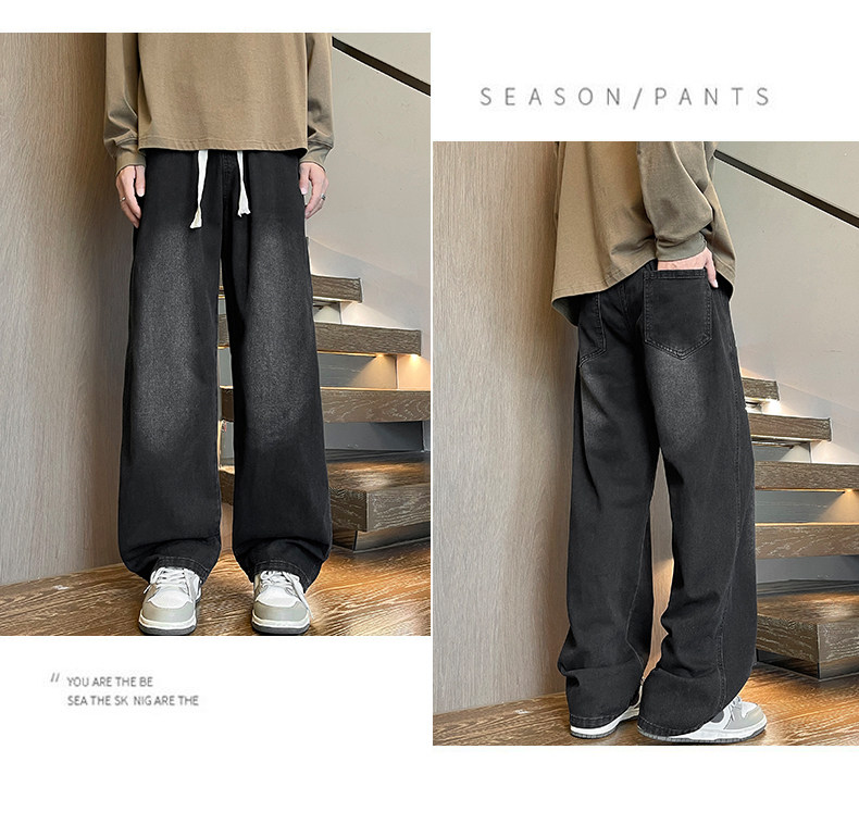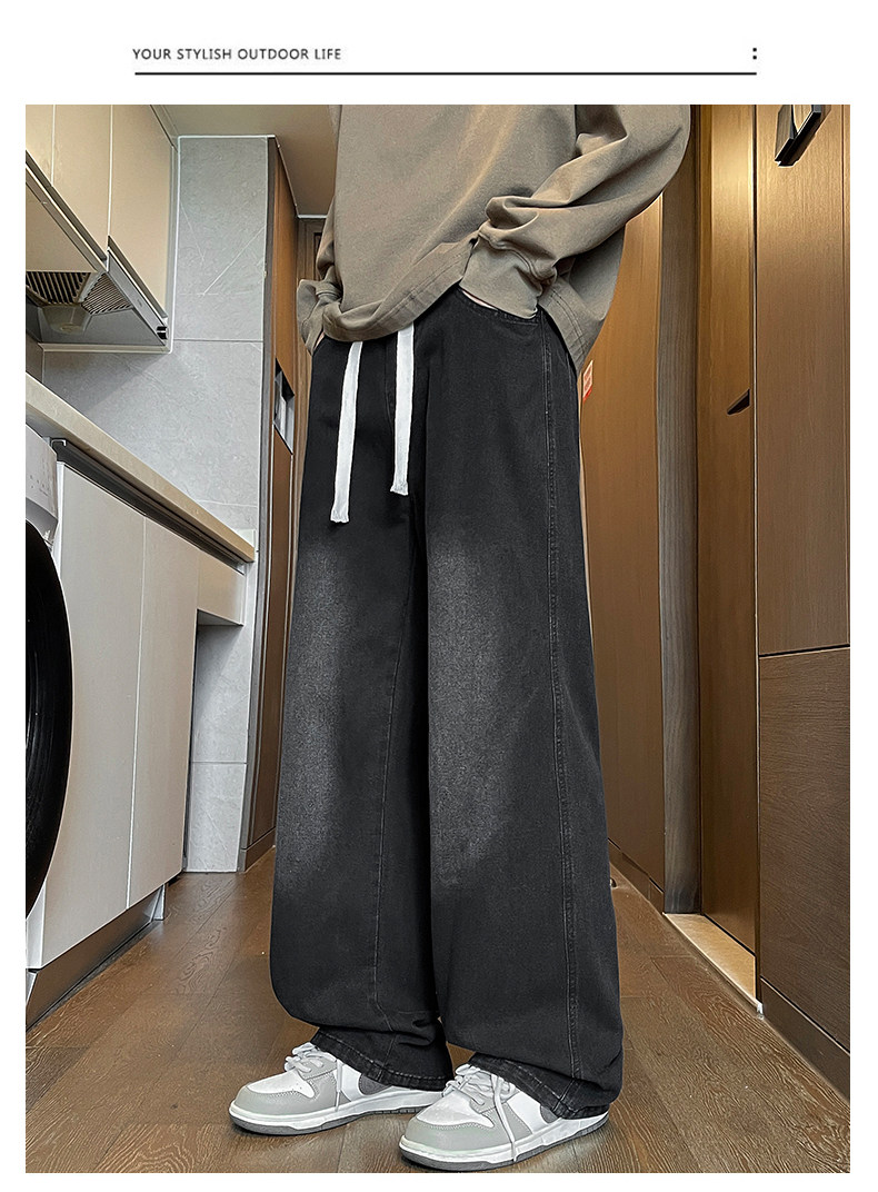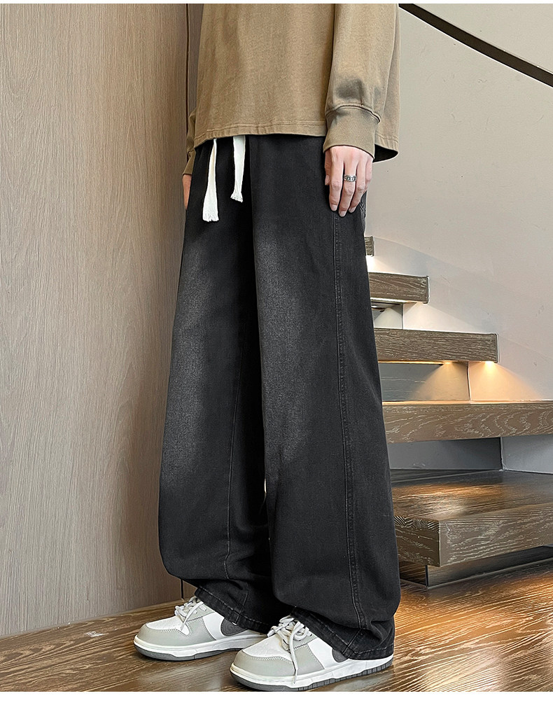 Teenagers' Winter Fleece-Lined Thickened Jeans, Gradient Color American-Style Pants, Men's Autumn and Winter Loose Straight-Leg Trousers