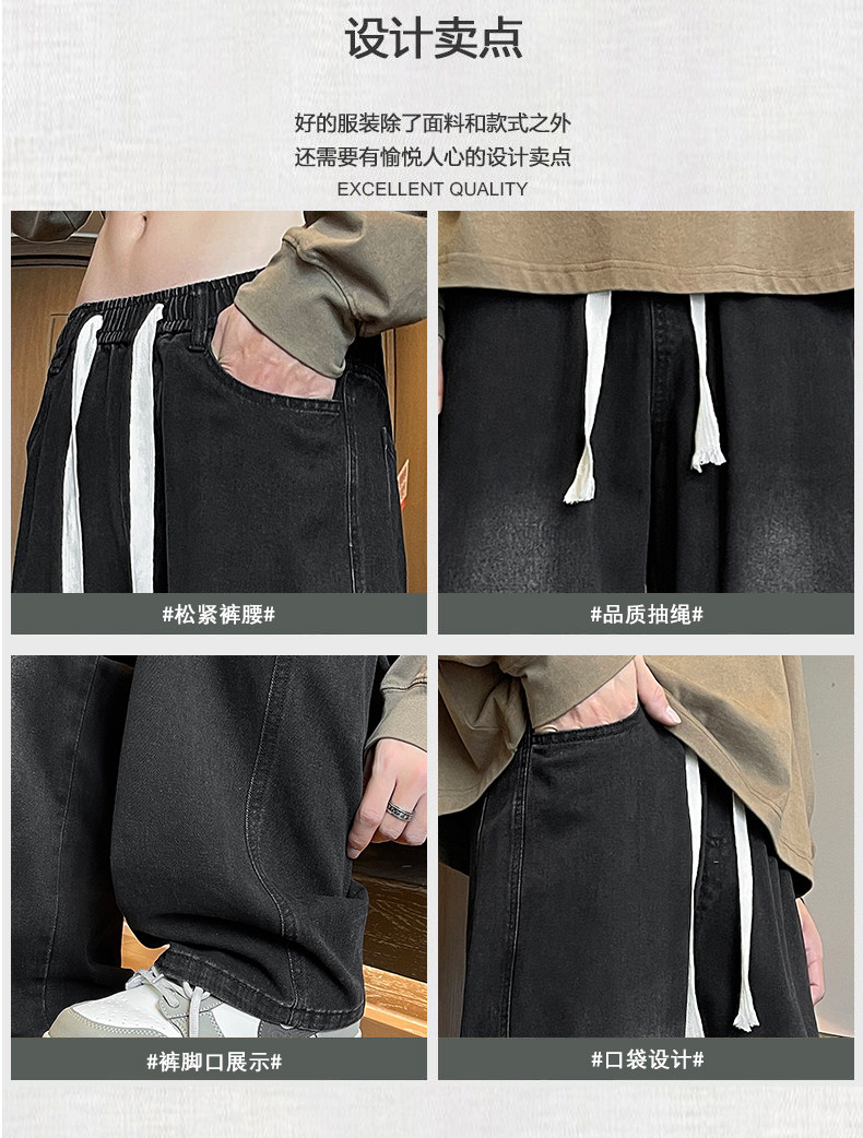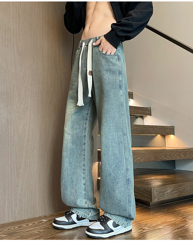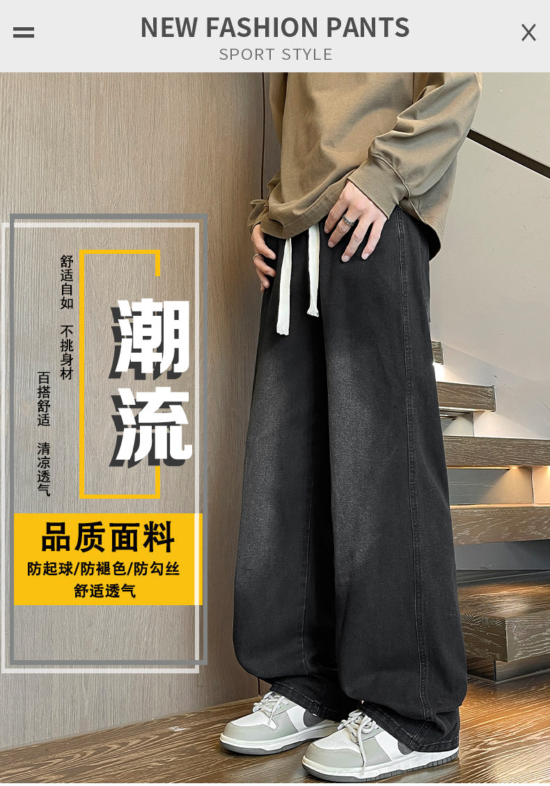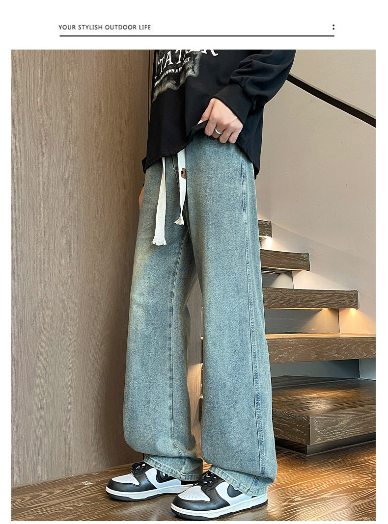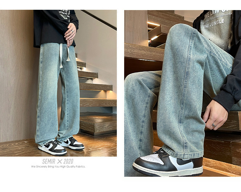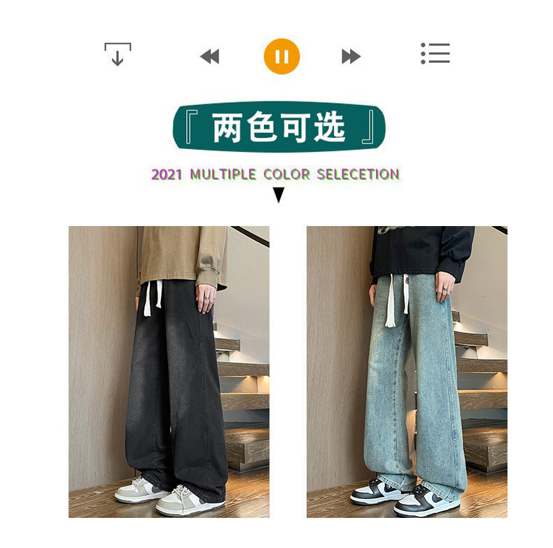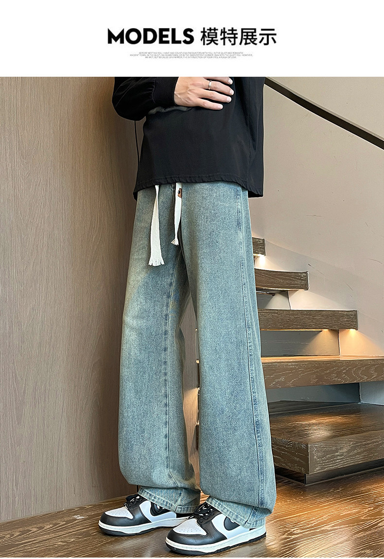 Teenagers' Winter Fleece-Lined Thickened Jeans, Gradient Color American-Style Pants, Men's Autumn and Winter Loose Straight-Leg Trousers
