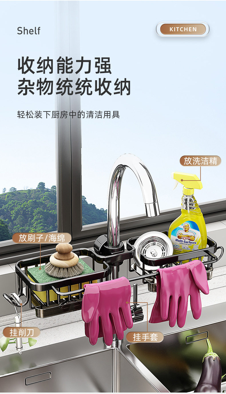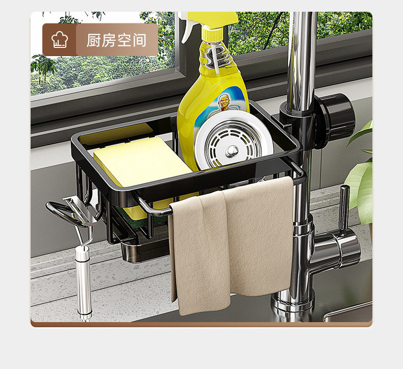 Kitchen faucet storage rack dishwashing sink sink supplies household drain basket multi-function rag storage rack