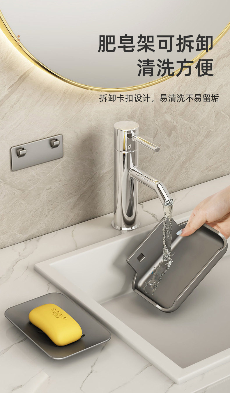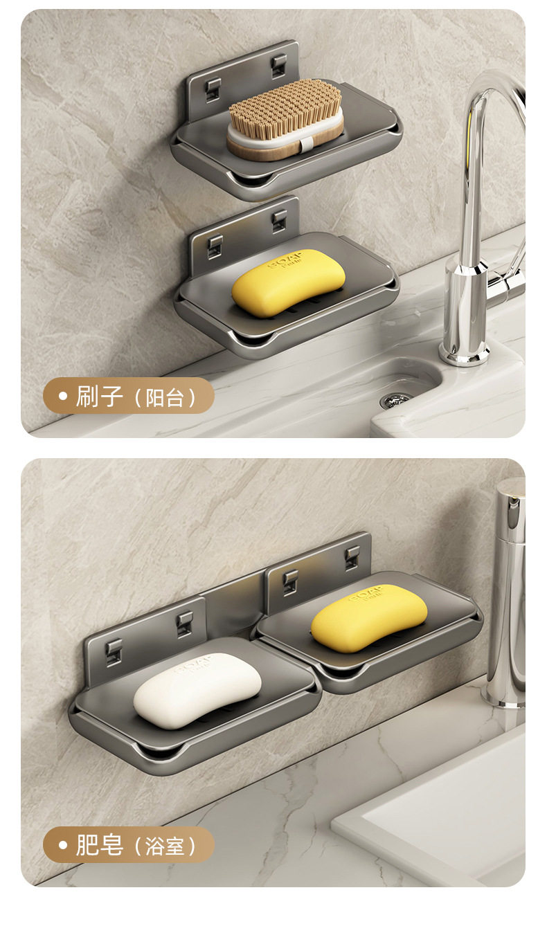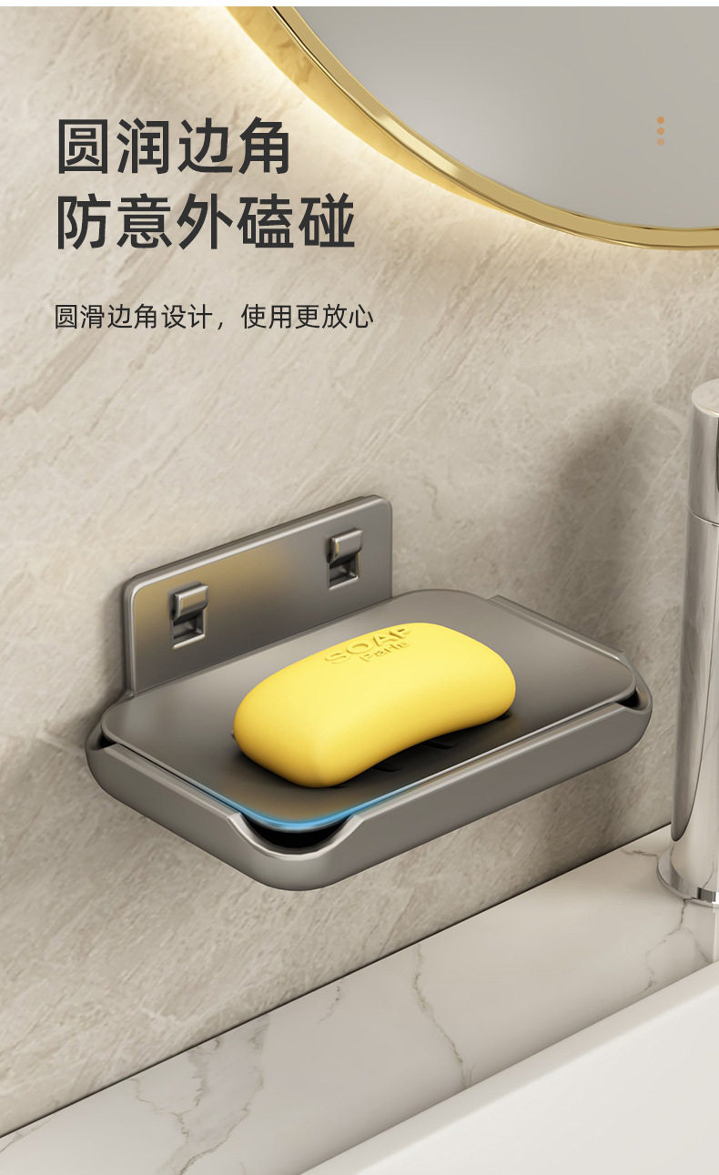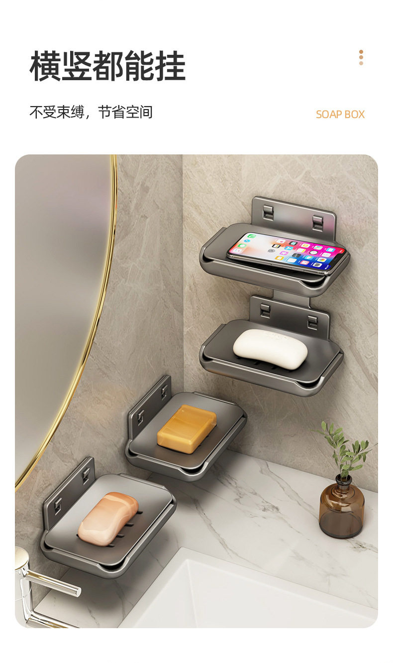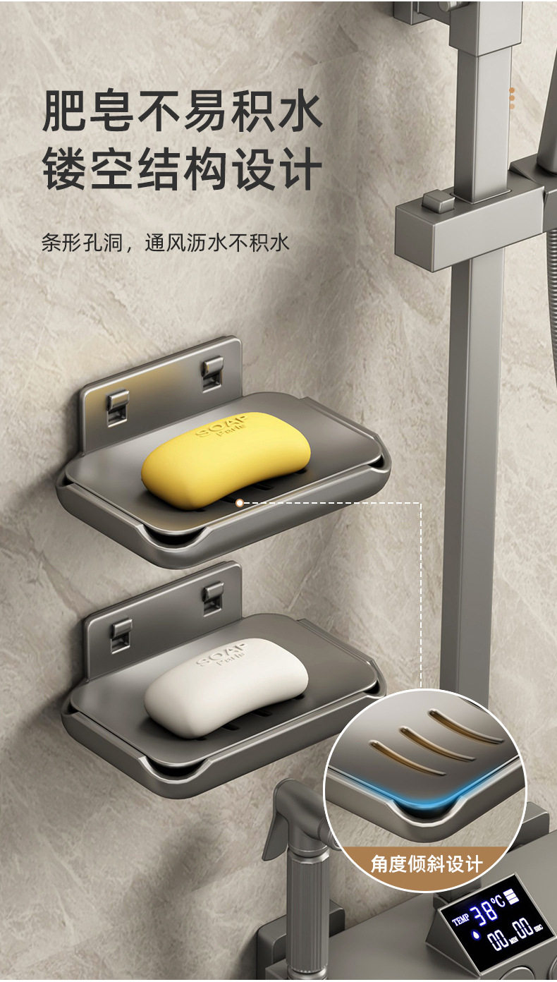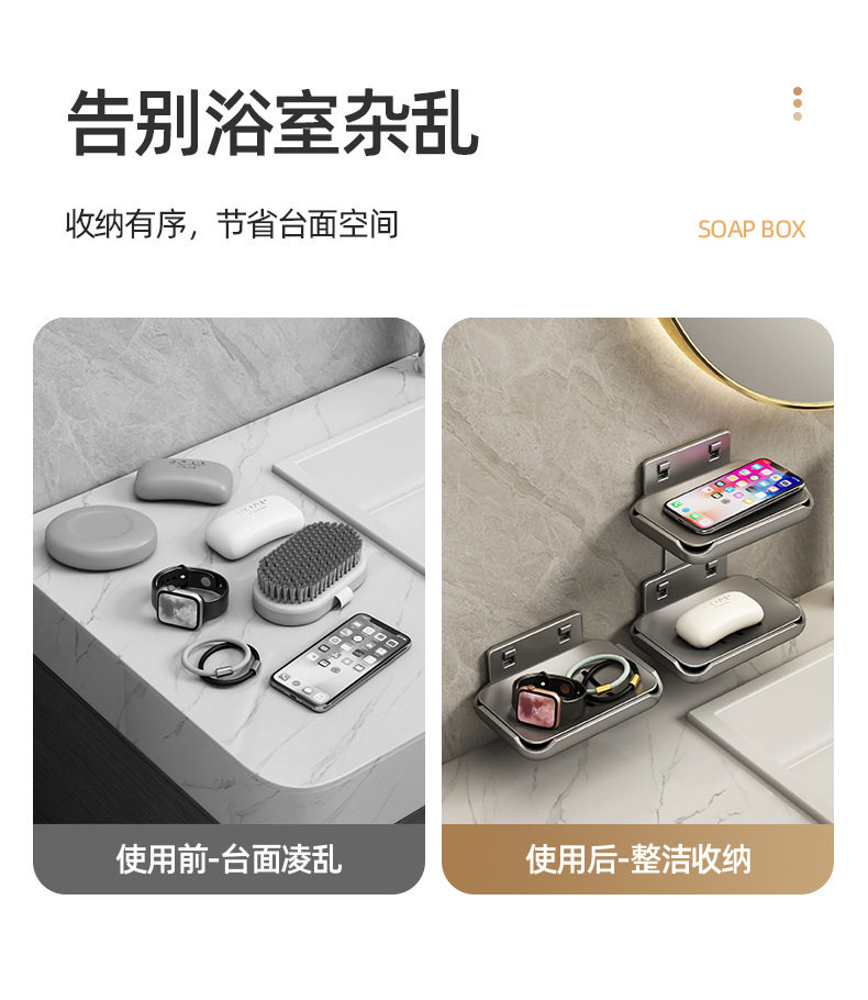 Soap box wall-mounted punch-free bathroom space aluminum bathroom wall drain high-end double body soap storage rack