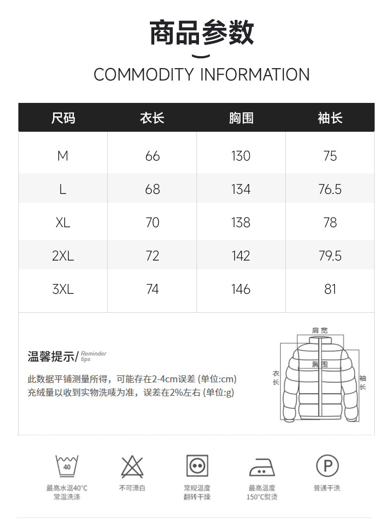 China (cm) 165 / 88-90 170 / 96-98 175 / 108-110 180 / 118-122 185 / 126-130