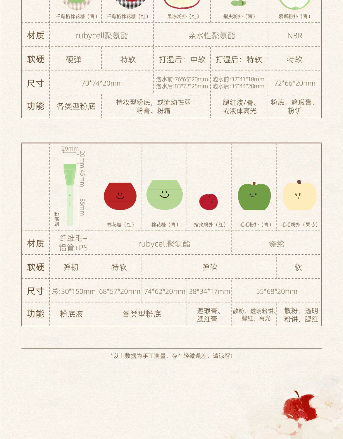 Color Classification Red Apple Marshmallow [3-Piece Set],Green Apple Marshmallow [3-Piece Set],Apple Foundation Brush [3-Piece Set],Maomao Set [5-Piece Set],Houndstooth Set [5-Piece Set],Q Bomb Set [5-Piece Set],Detail Set [4-Piece Set],Conformity Set [Medium Gift Box],Morning Eight Group [Medium Gift Box],Quick Makeup Set [Medium Gift Box],Treasure Set [Medium Gift Box],Strength Group [Medium Gift Box],Full Makeup Set [Medium Gift Box],Green Apple Group [Medium Gift Box],Fine Makeup Set [Gift Box],Full Set [All in Big Gift Box],Green Apple Sticky Powder Puff [4 Pack],Red Apple Sticky Powder Puff [4 Pack]