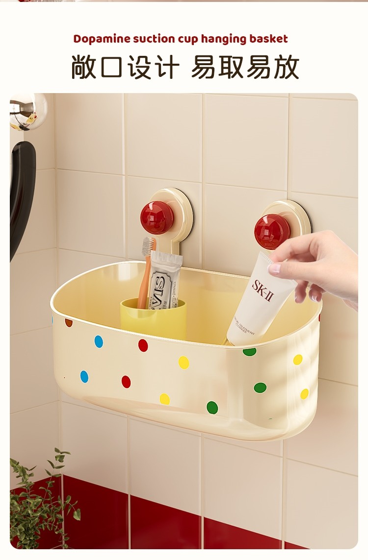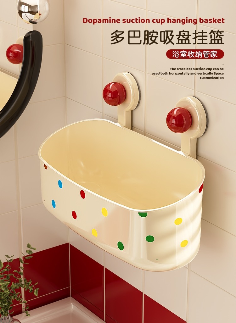 Japanese Imported Suction Cup Storage Rack, No-Drill Wall-Mounted Organizer for Bathroom, Toilet, Washbasin, and Shower