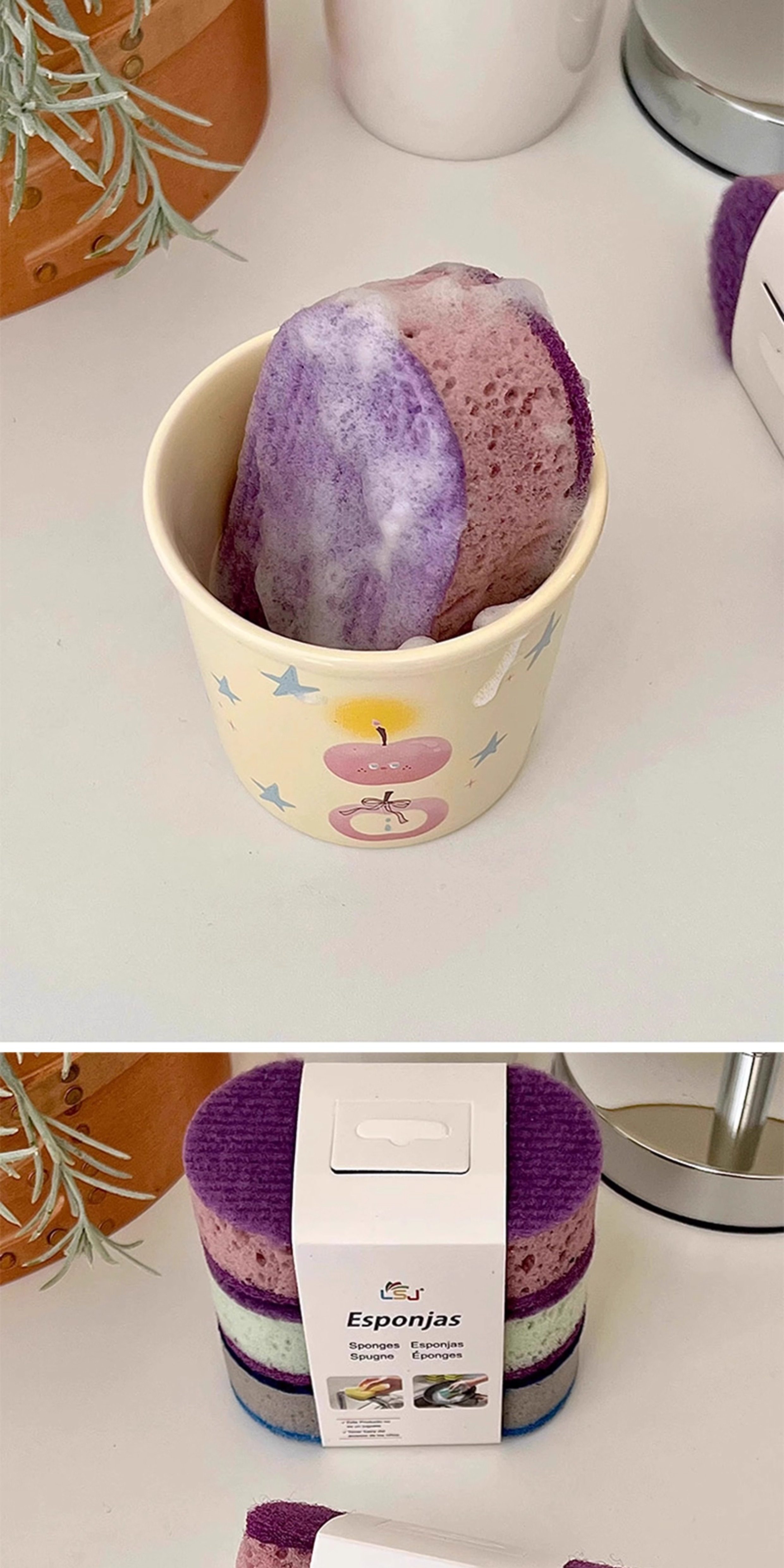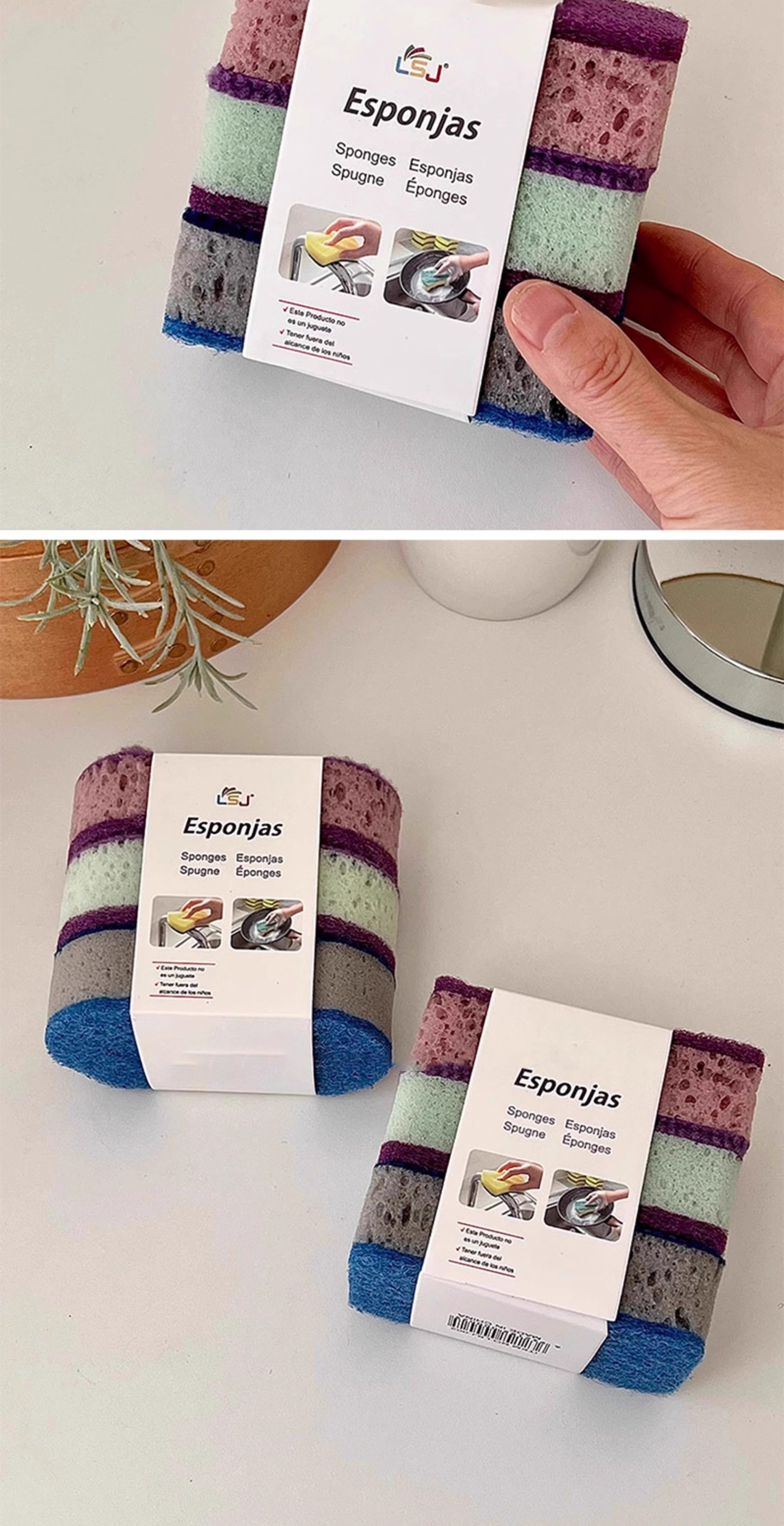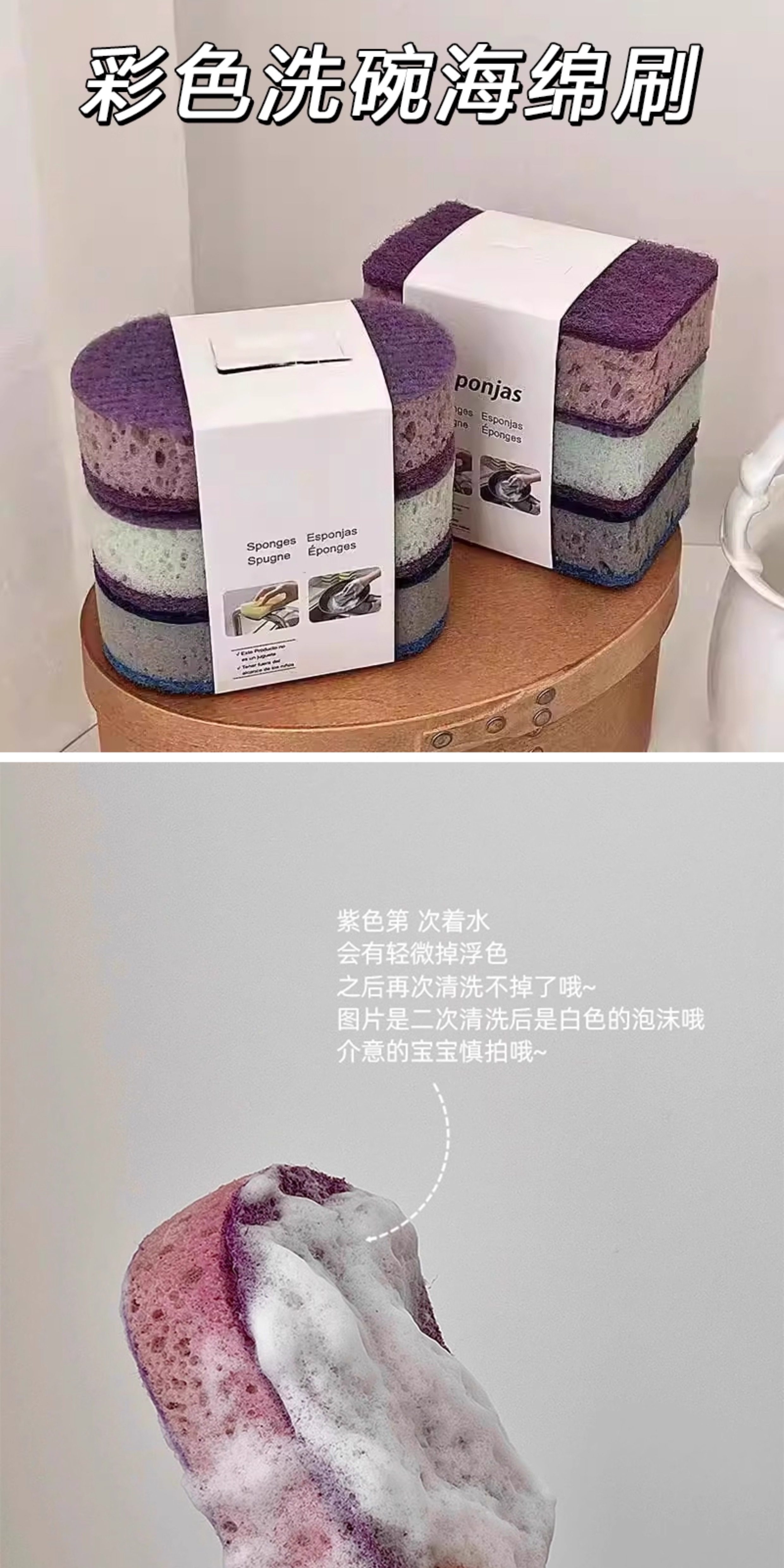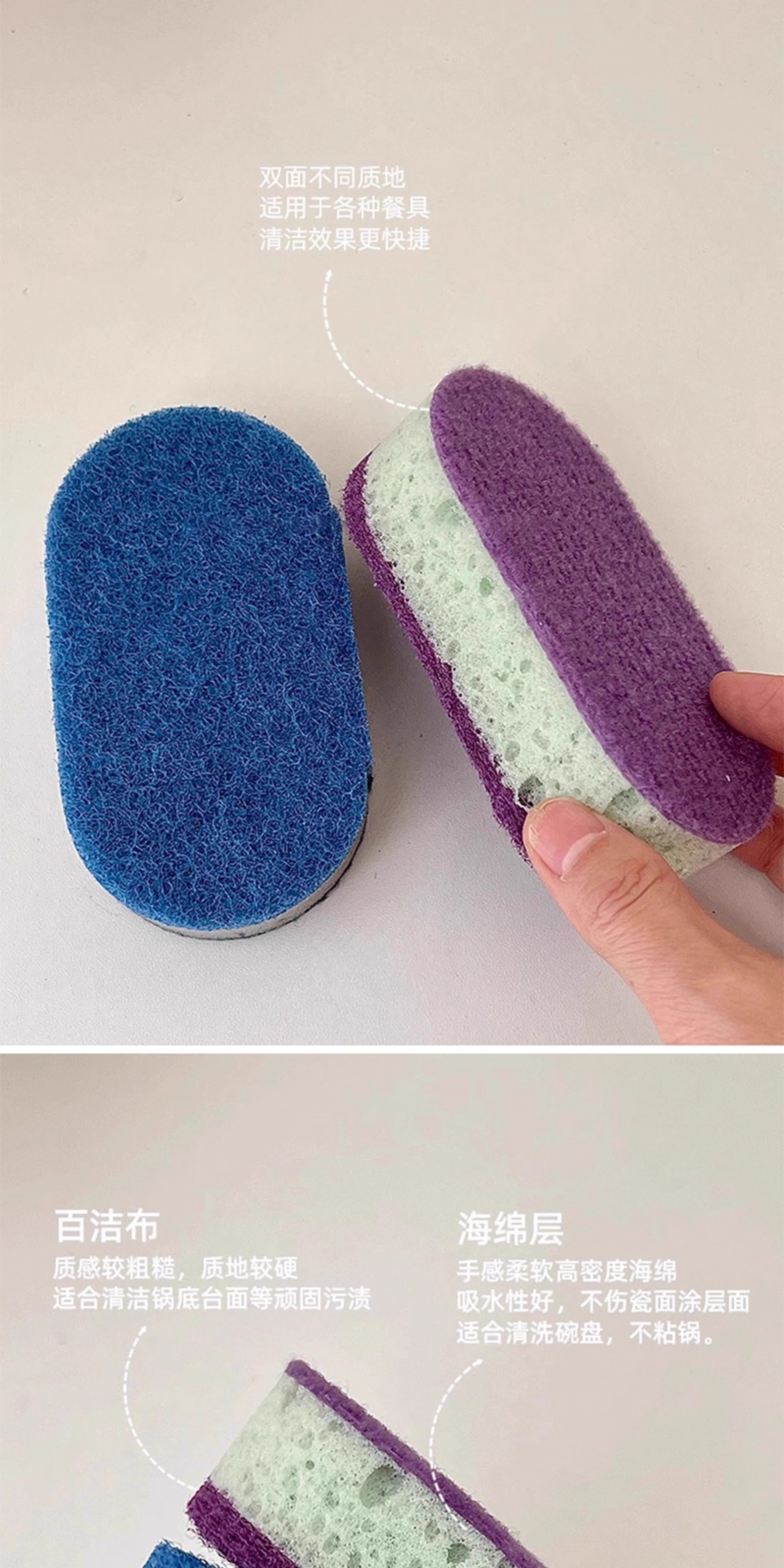 Thickened High-Density Colorful Dishwashing Sponge Brush, Pack of Three, Non-Stick Oil Pan Brush, Double-Sided Kitchen Dishwashing Scrubber