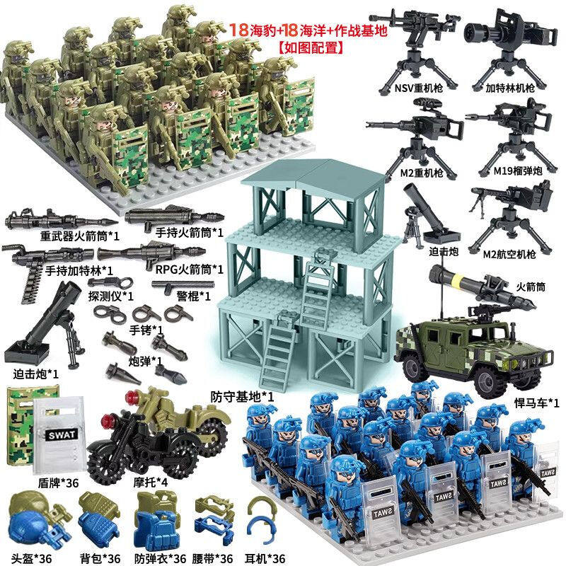 World War Ii Special Forces Military Minifigures, Navy Fleet, Tower Defense, Hummer Vehicle, Motorcycle Assembly Building Blocks, Minifigure Assembly Toys