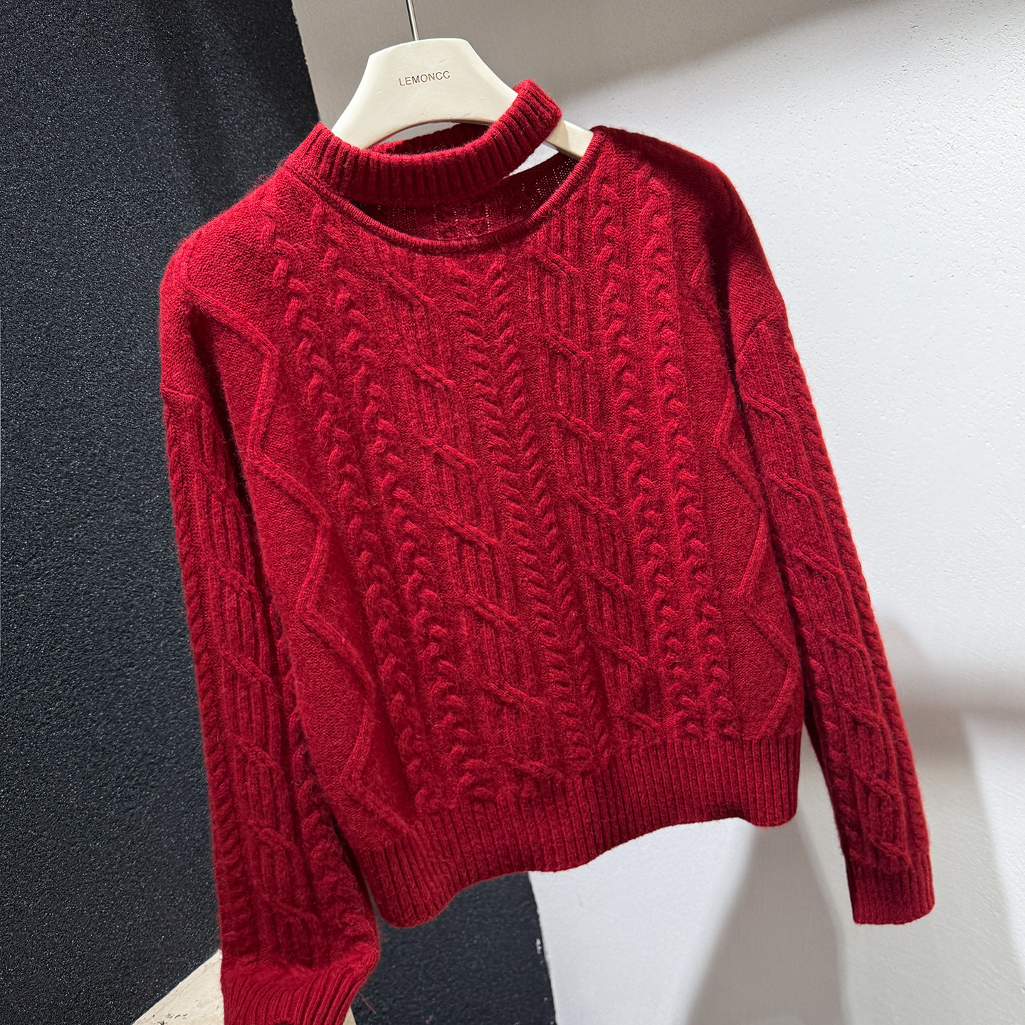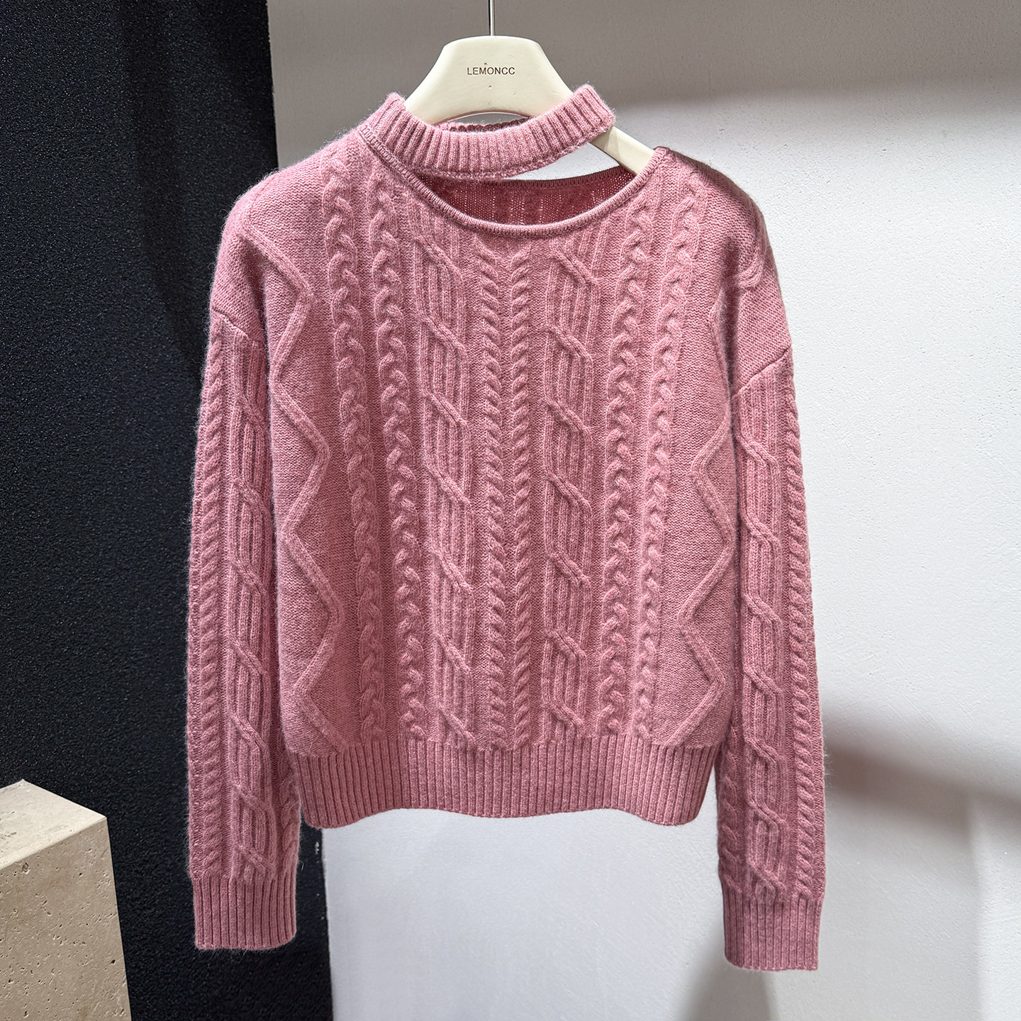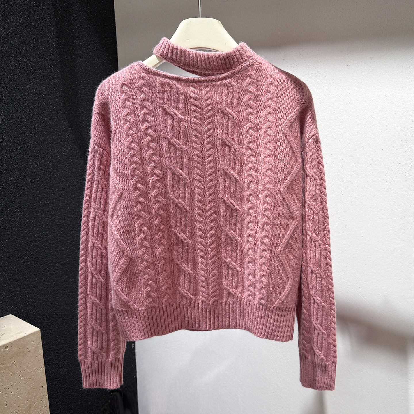 Slant collar off-shoulder halter neck design honey bear velvet twist top 2025 winter women's new style western style festival sweater