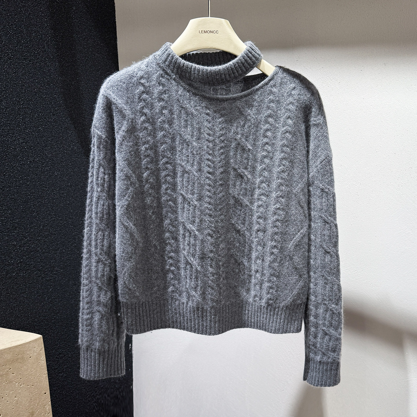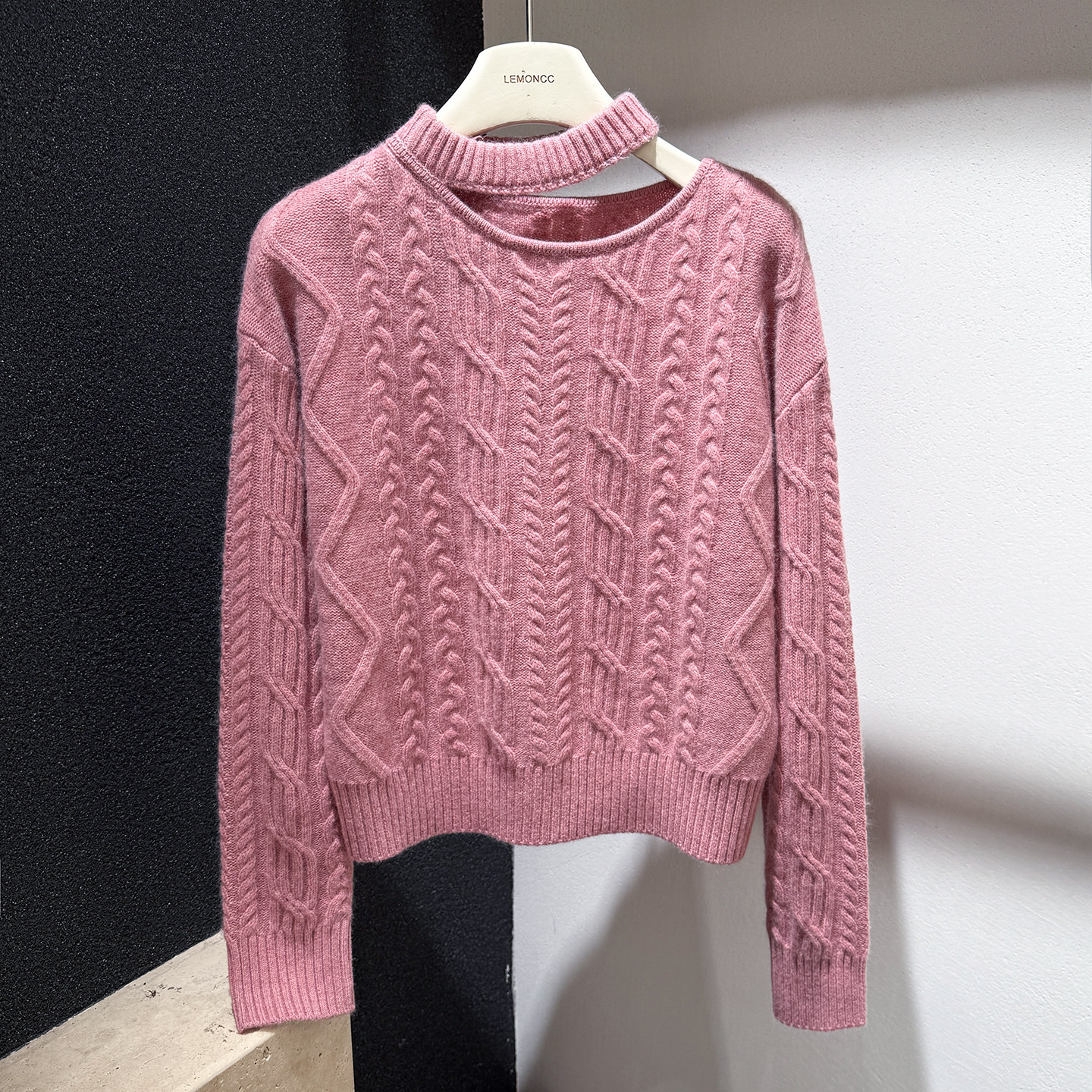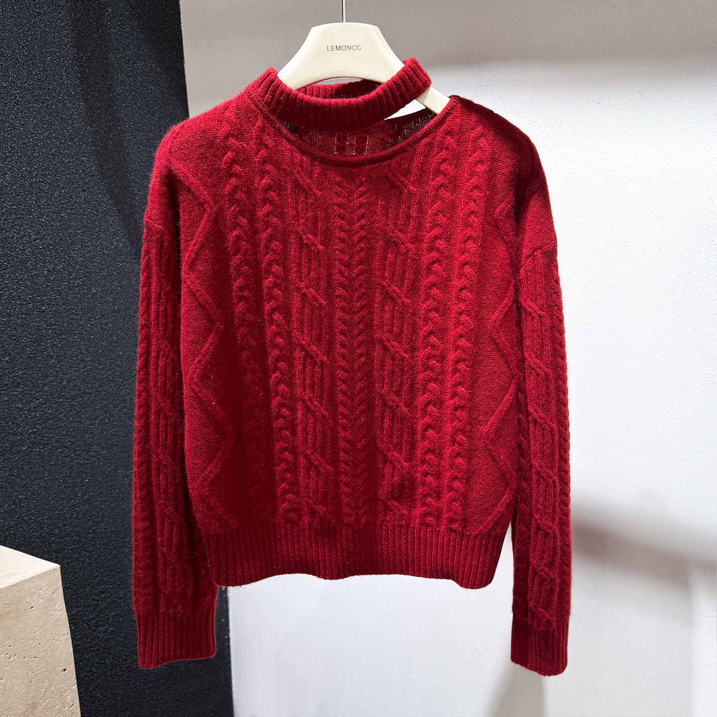 Slant collar off-shoulder halter neck design honey bear velvet twist top 2025 winter women's new style western style festival sweater