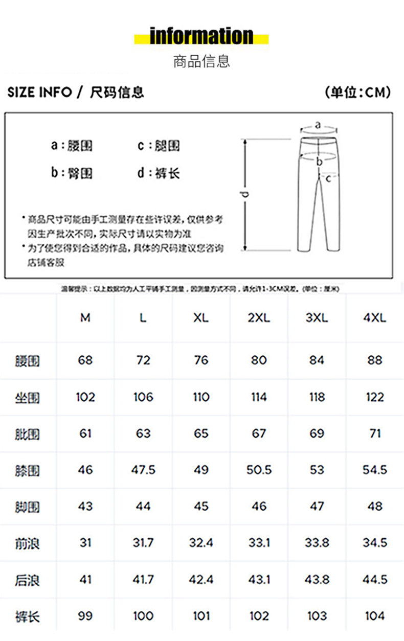 Outseam (cm) 99 cm 101.5 cm 104 cm 106.5 cm 109 cm