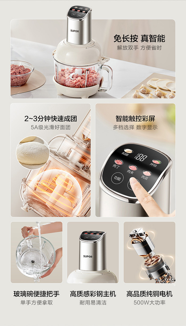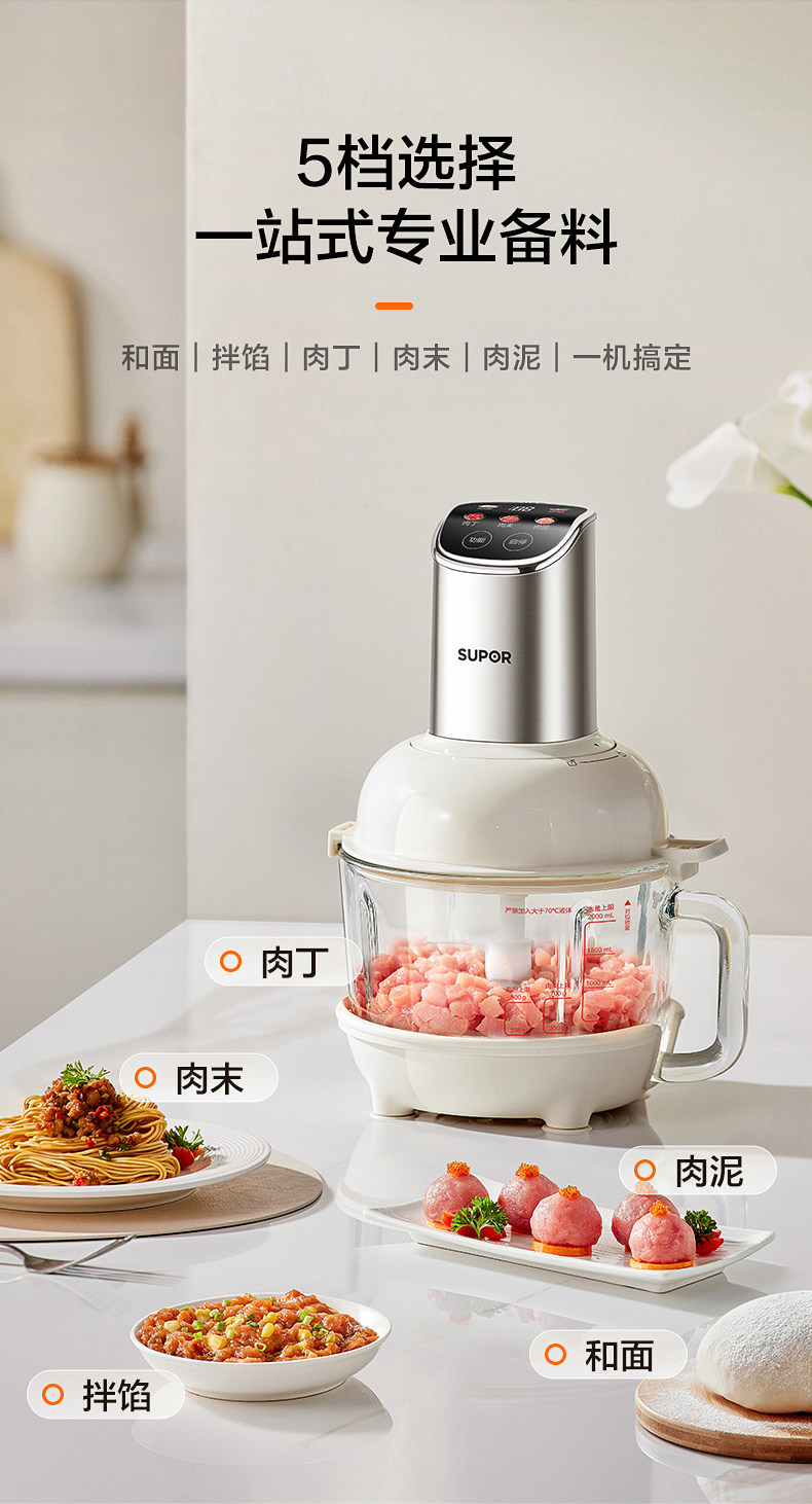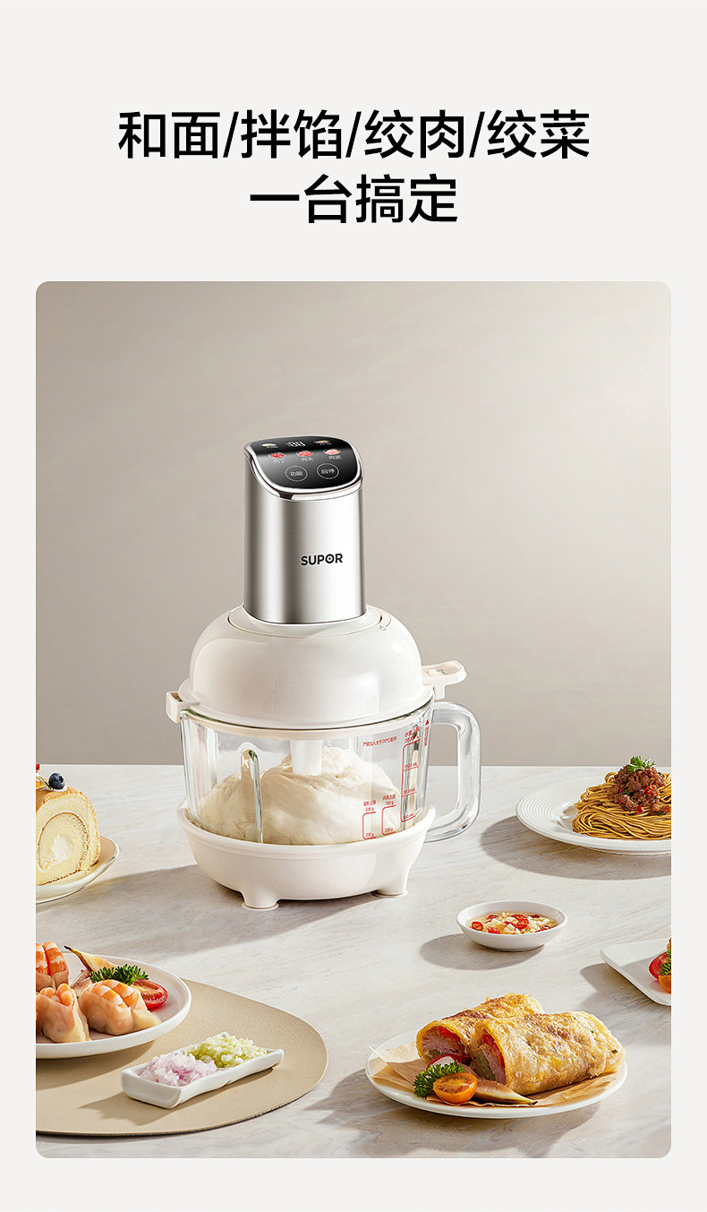 Supor Automatic Multifunctional Dough Kneading and Meat Grinding Machine for Home Use, Electric Small Food Processor Mixer