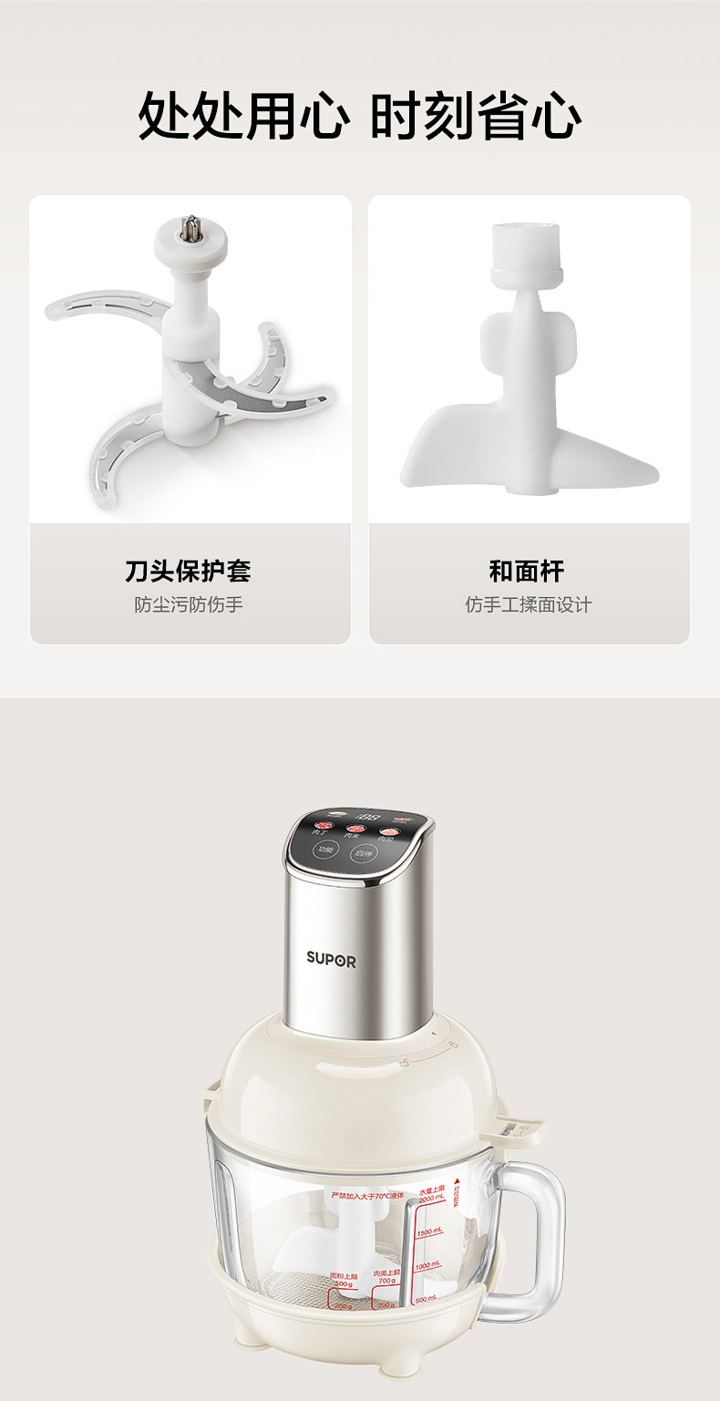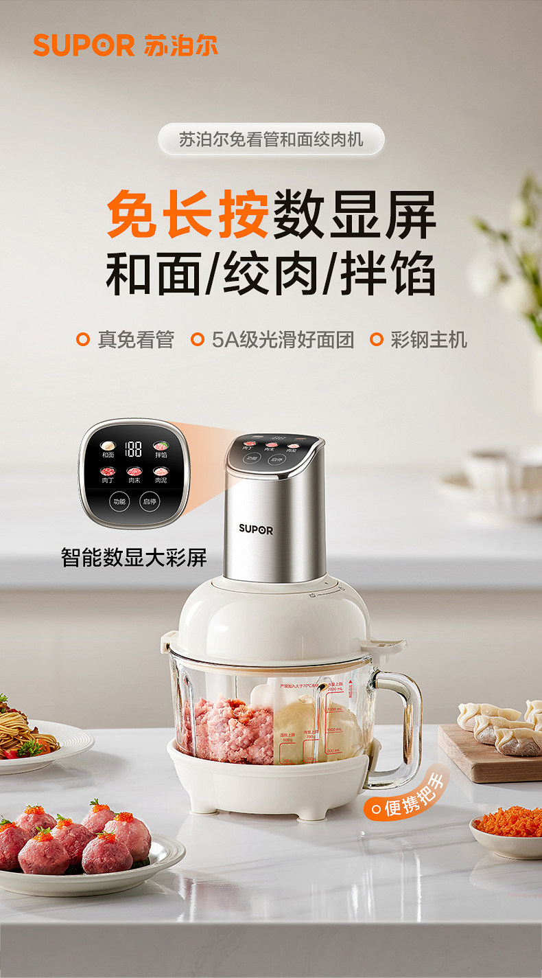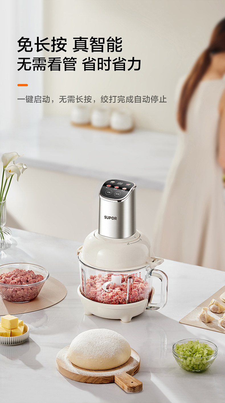 Supor Automatic Multifunctional Dough Kneading and Meat Grinding Machine for Home Use, Electric Small Food Processor Mixer