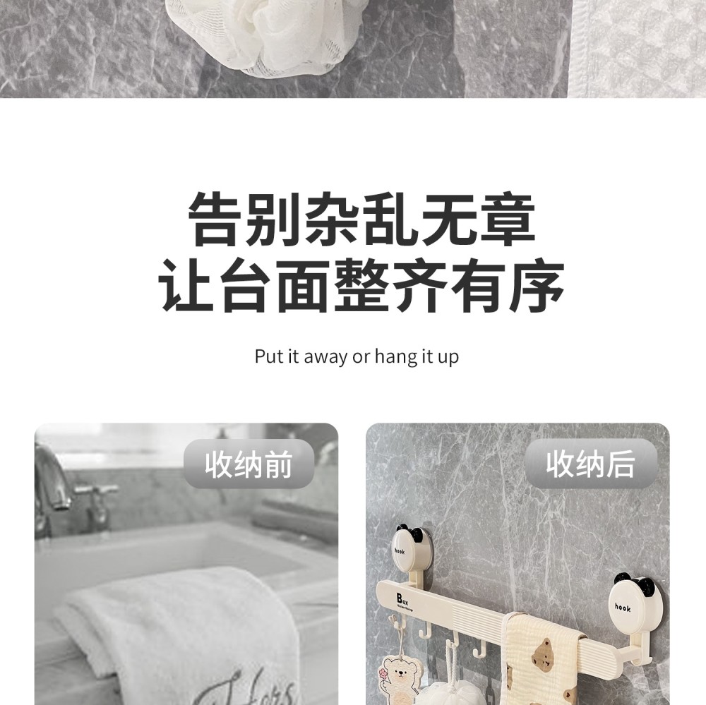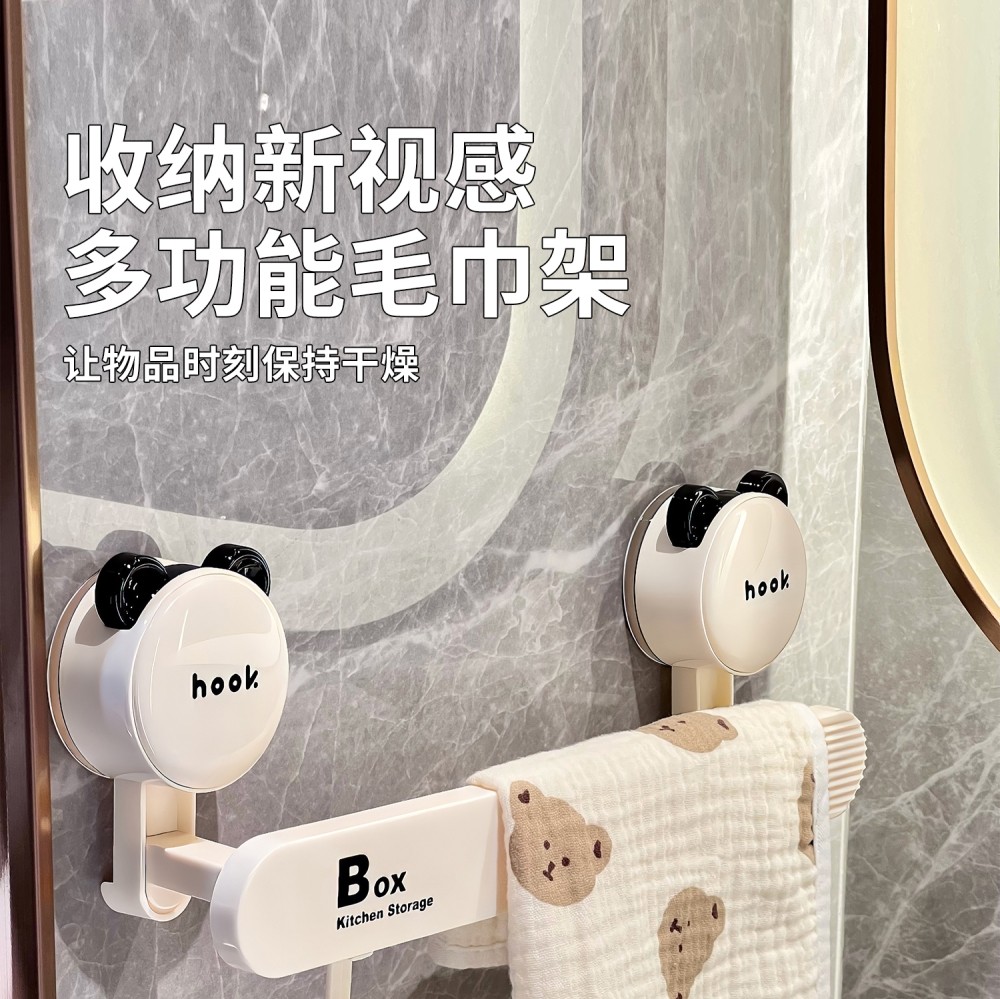 Japanese Imported Suction Cup Towel Rack, Strong Adhesive, No-Drill Bathroom Towel Rack, Wall-Mounted Bathroom Storage Rack, Towel Bar