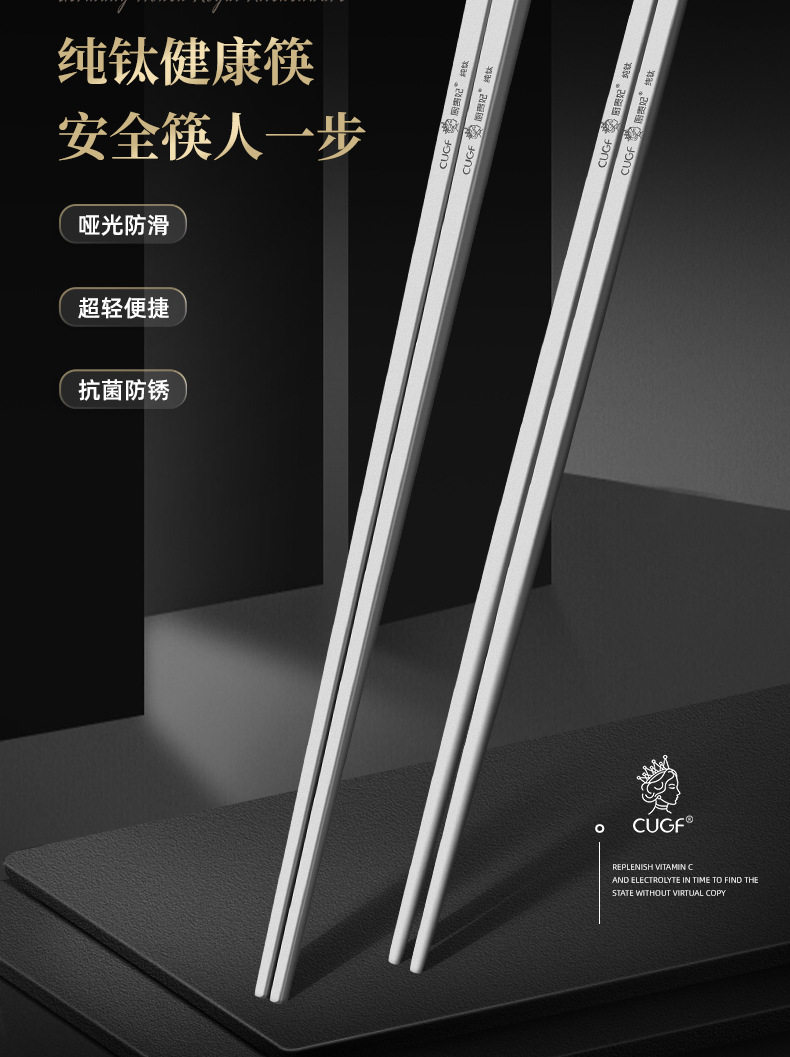 Pure Titanium Chopsticks, High-End Household Tableware, Antibacterial and Mildew-Proof, Non-Slip, High-Temperature Resistant, Portable Alloy Chopsticks