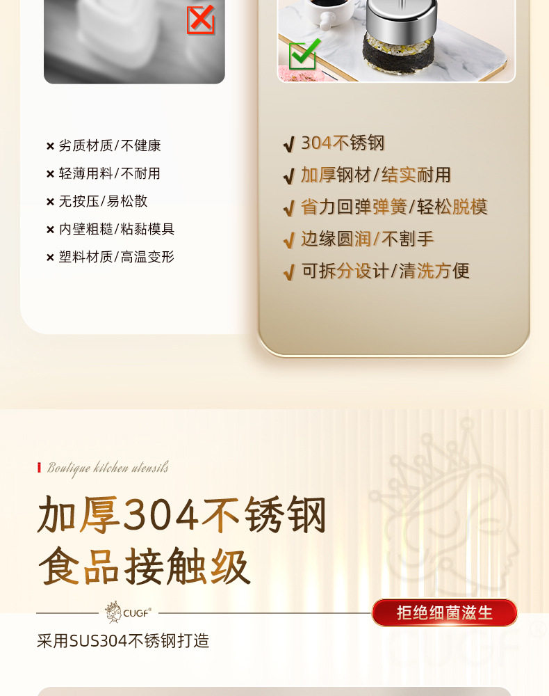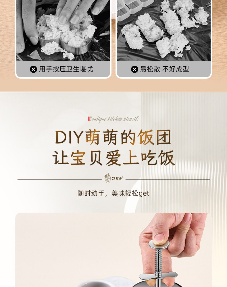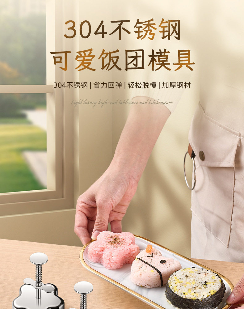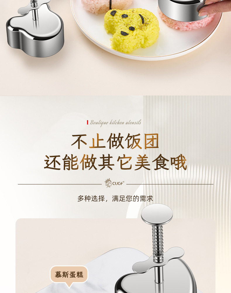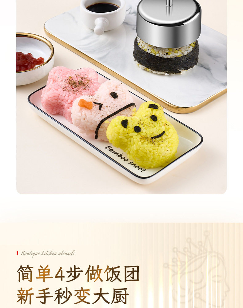 Sort by color Bear 304 push-type rice ball mold,Huahua 304 push-type rice ball mold,Heart-shaped 304 push-type rice ball mold,Round 304 push-type rice ball mold,Star-shaped 304 push-type rice ball mold