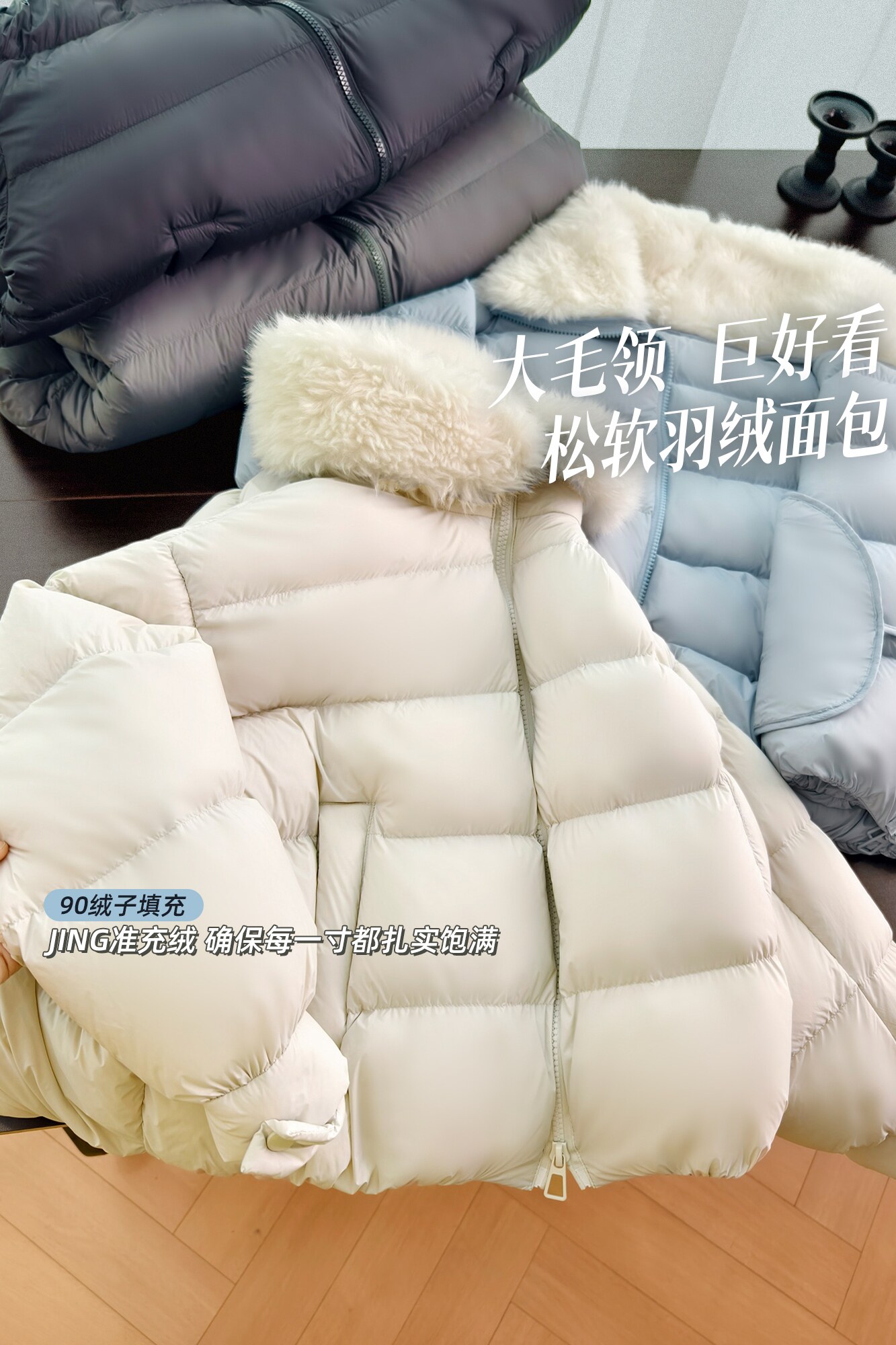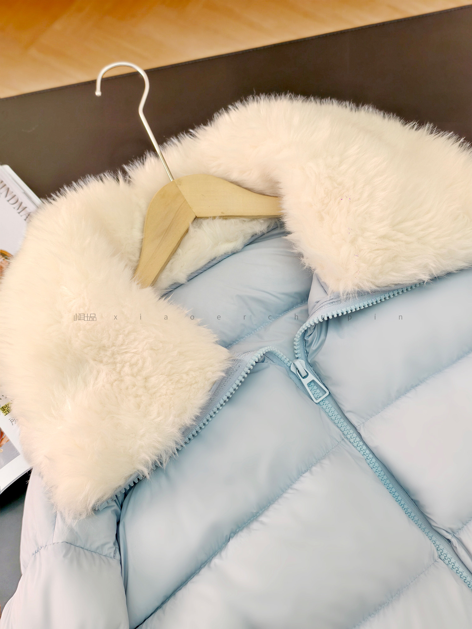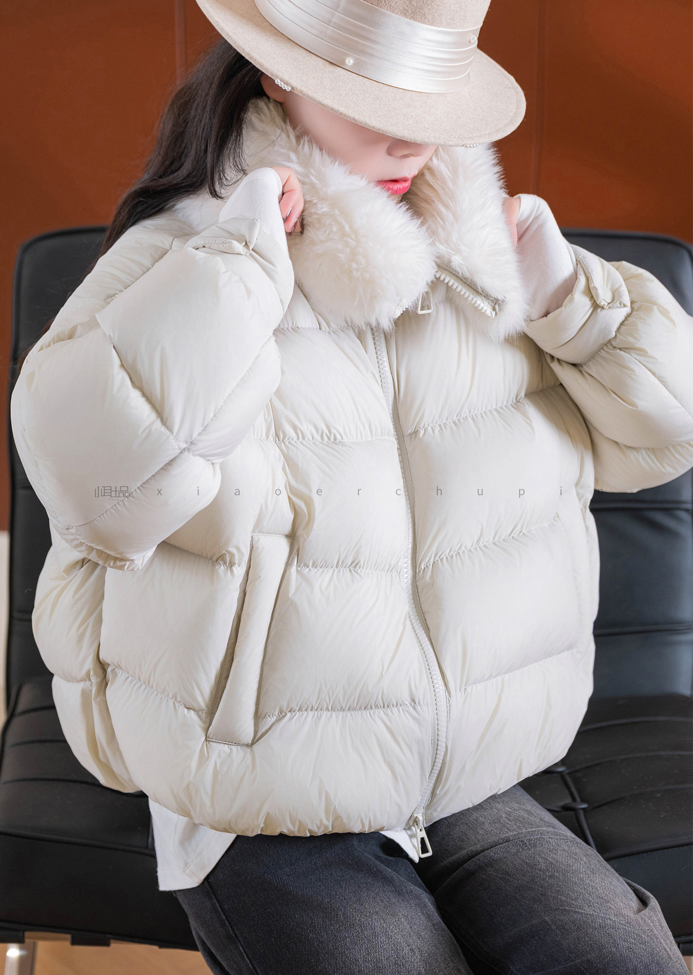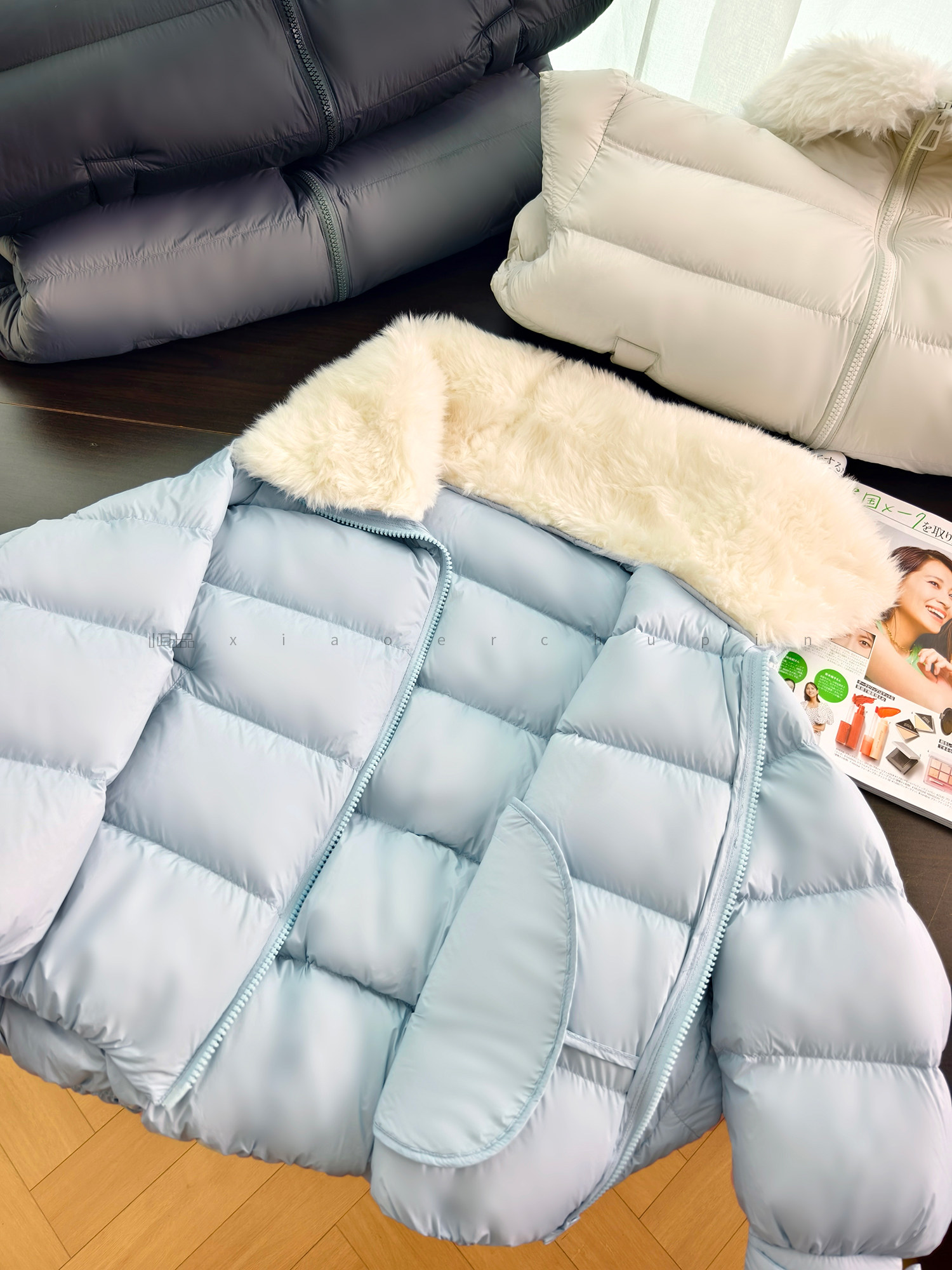 Produced by Xiaoer, Jumei! Atmosphere big fur collar! Fluffy bread/90 white duck down comfortable zipper down jacket