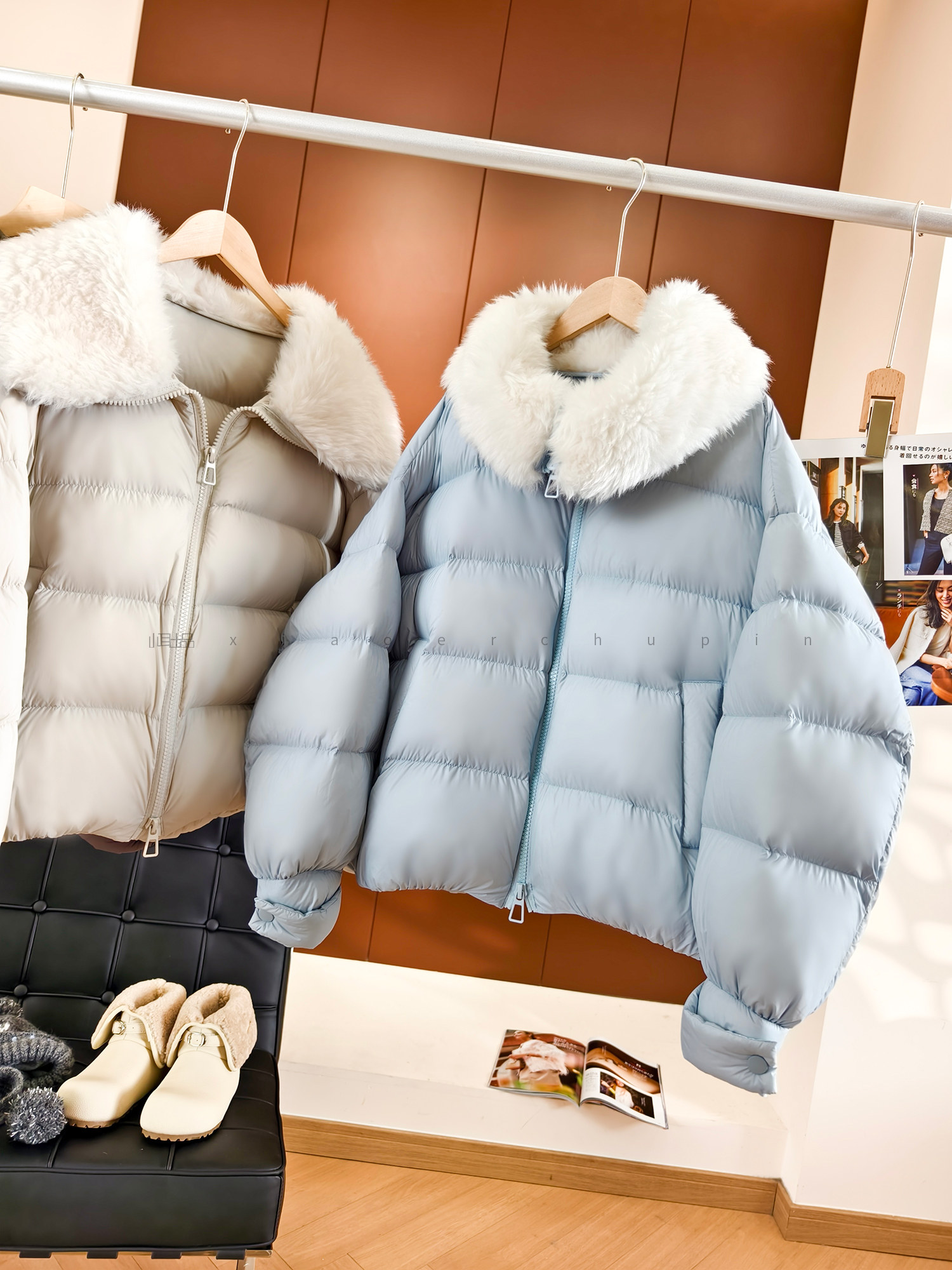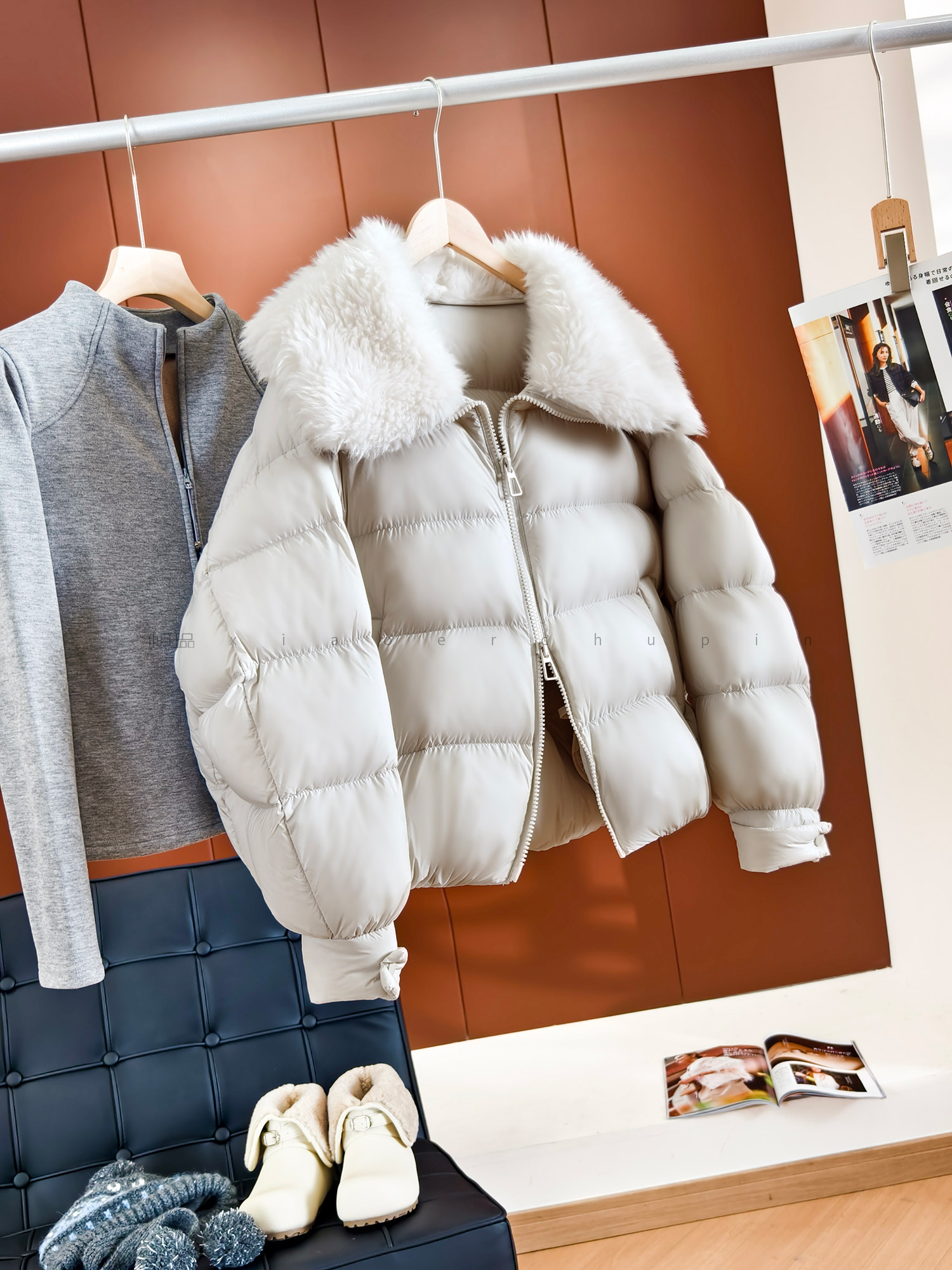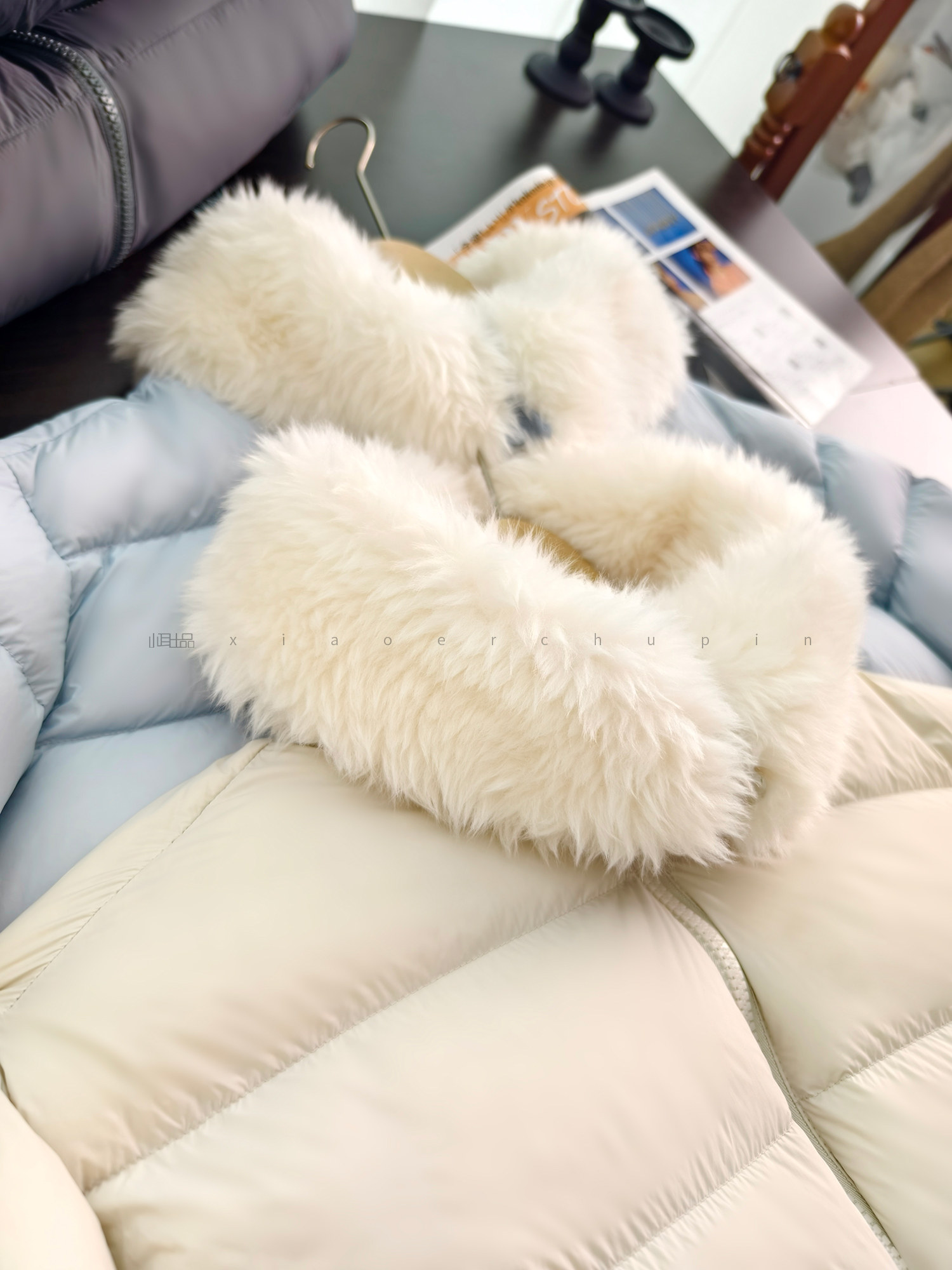 Produced by Xiaoer, Jumei! Atmosphere big fur collar! Fluffy bread/90 white duck down comfortable zipper down jacket