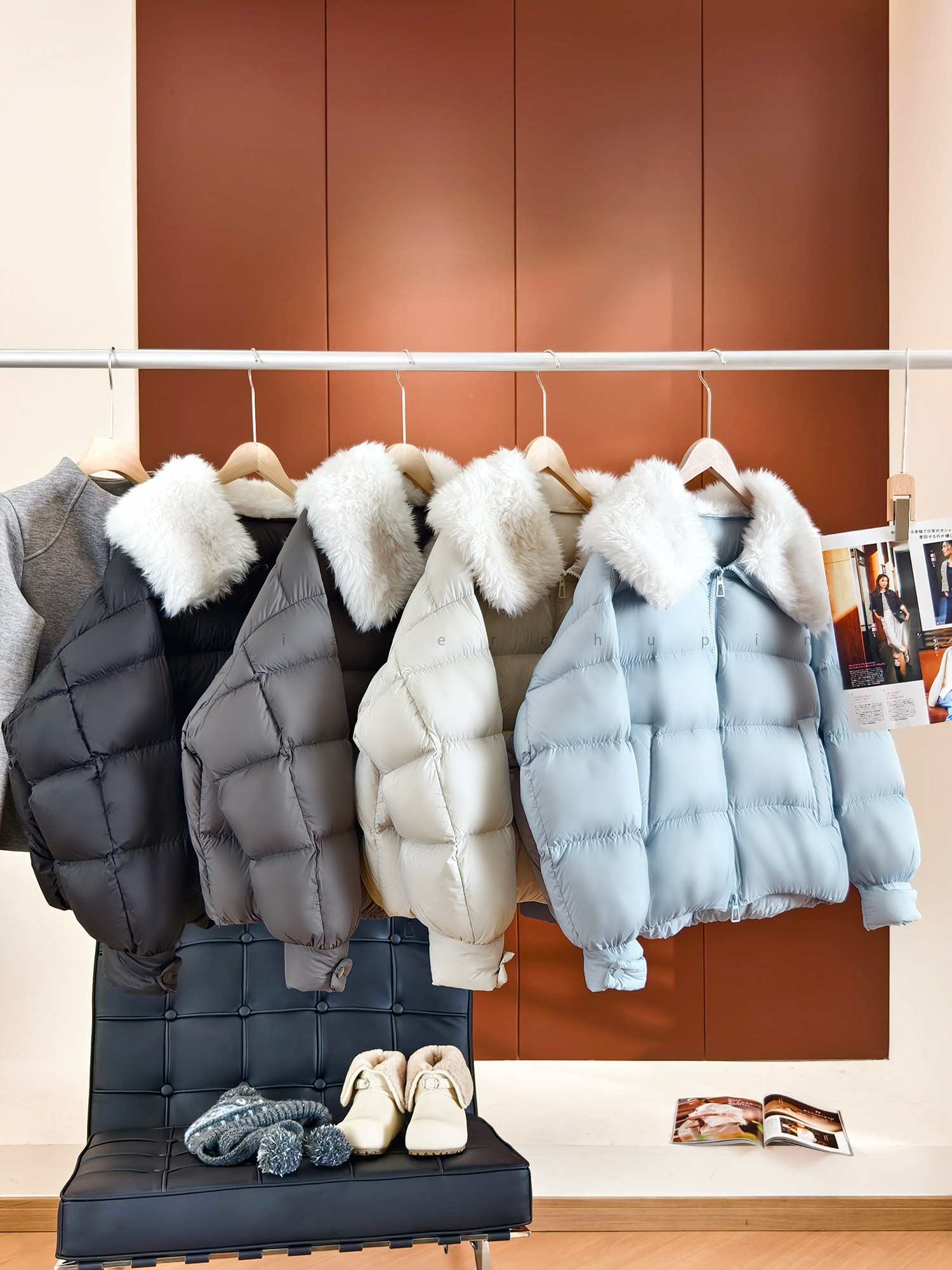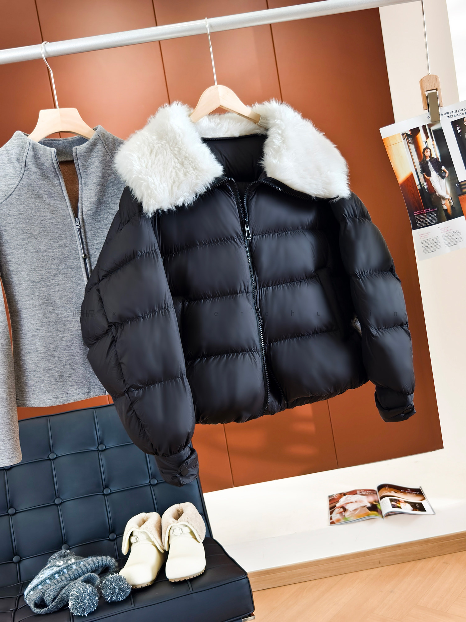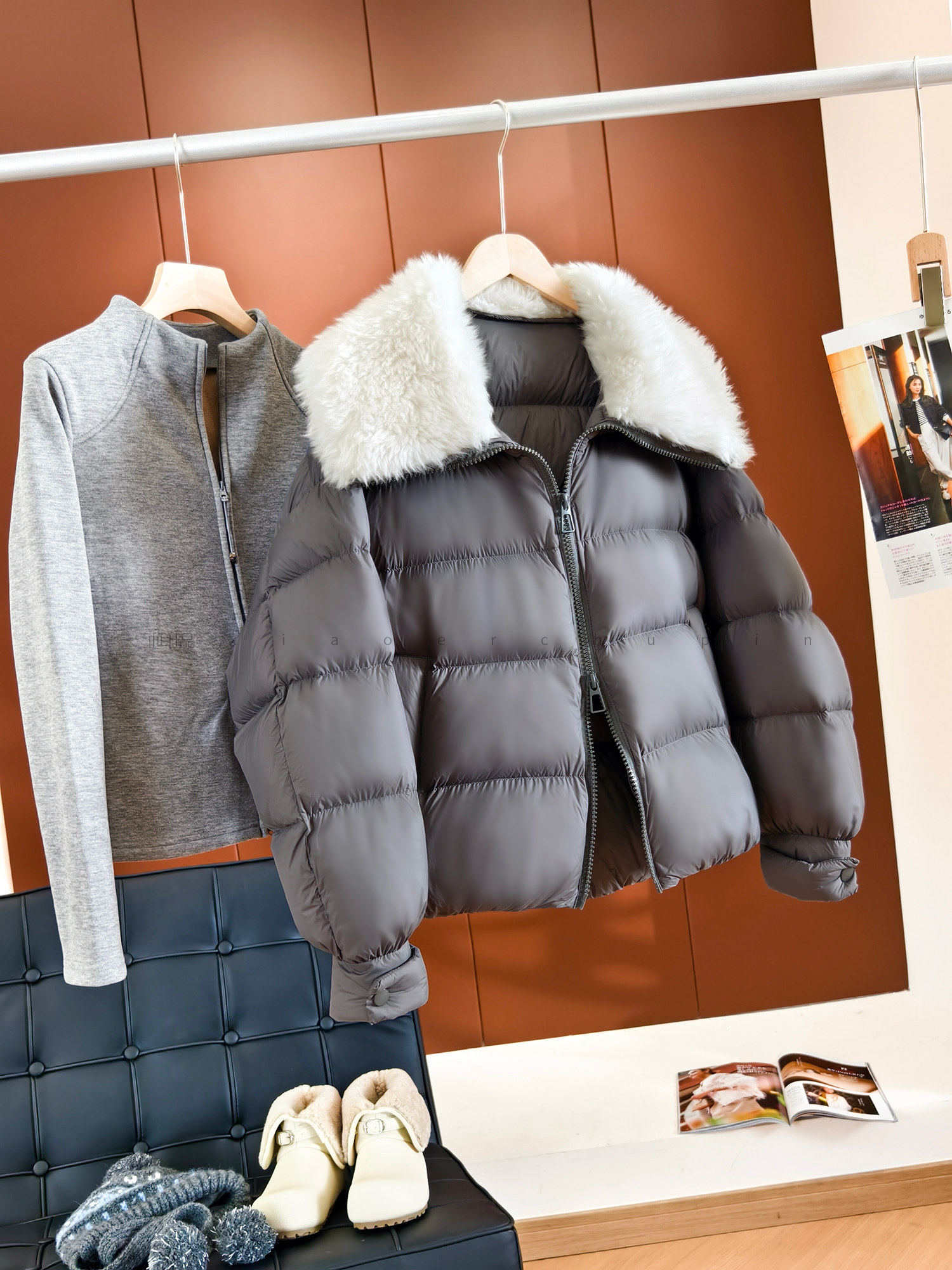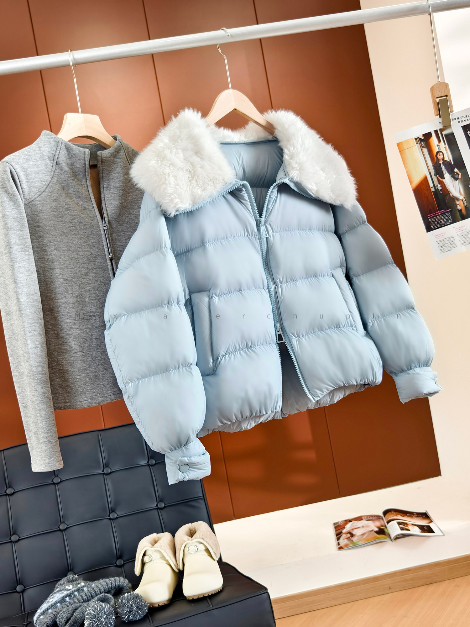 Produced by Xiaoer, Jumei! Atmosphere big fur collar! Fluffy bread/90 white duck down comfortable zipper down jacket