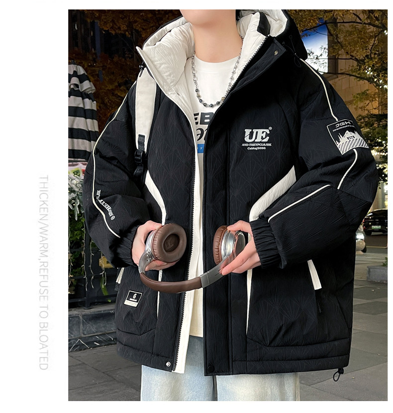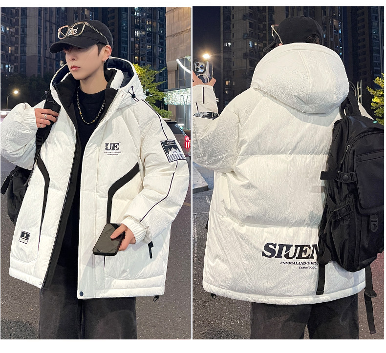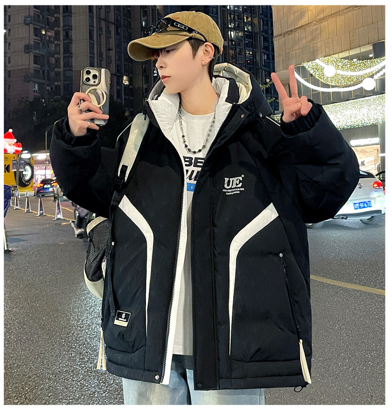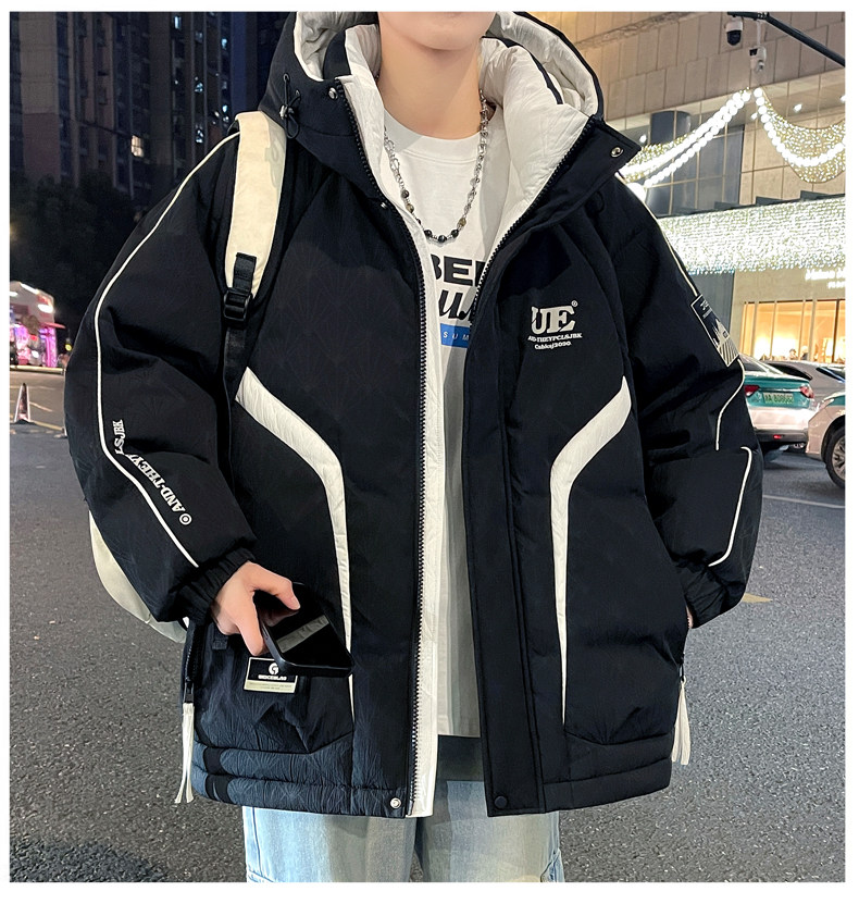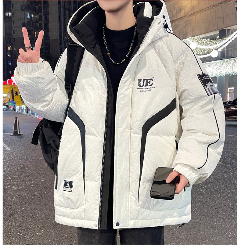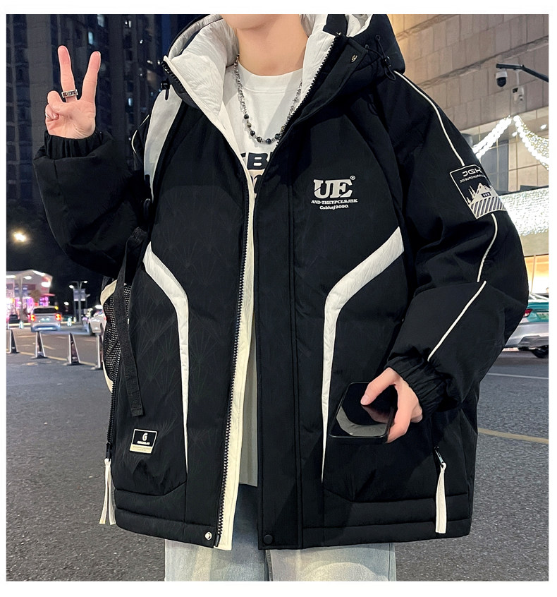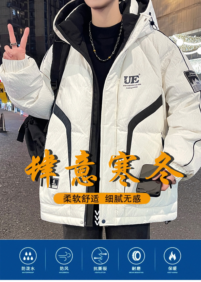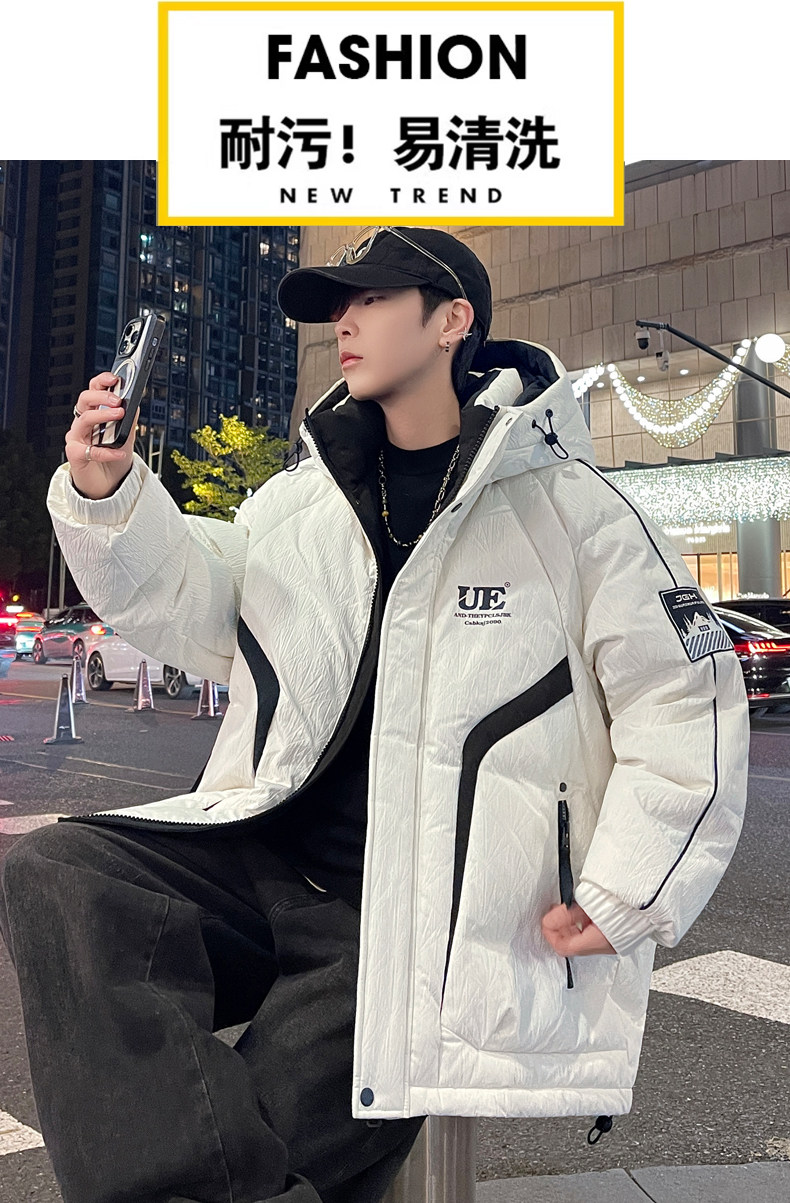 Down jacket men's winter trendy brand contrasting coat male student hooded thickened warm and lockable outdoor cold-proof clothing