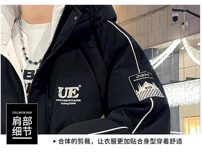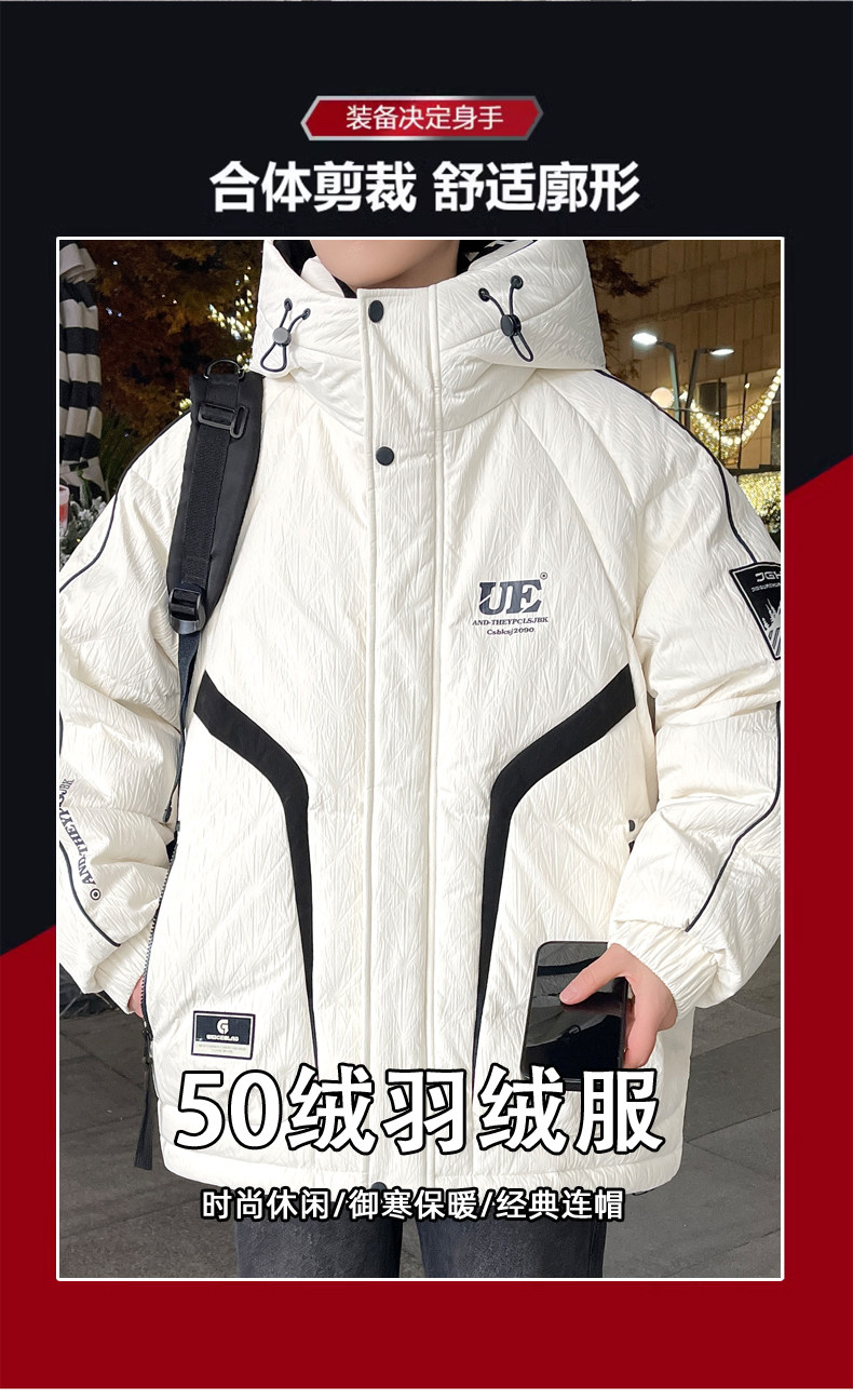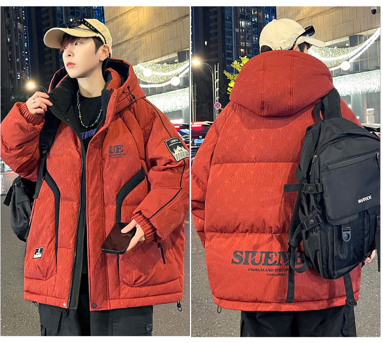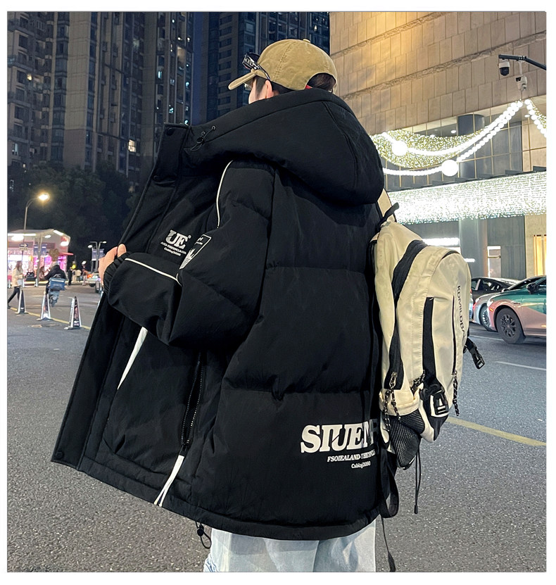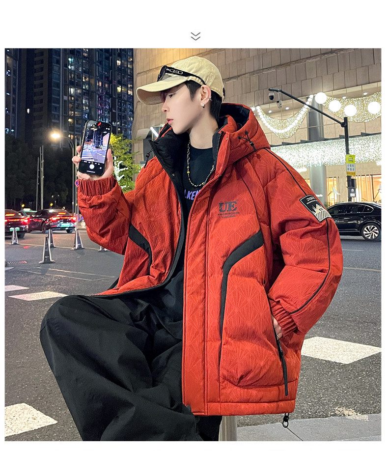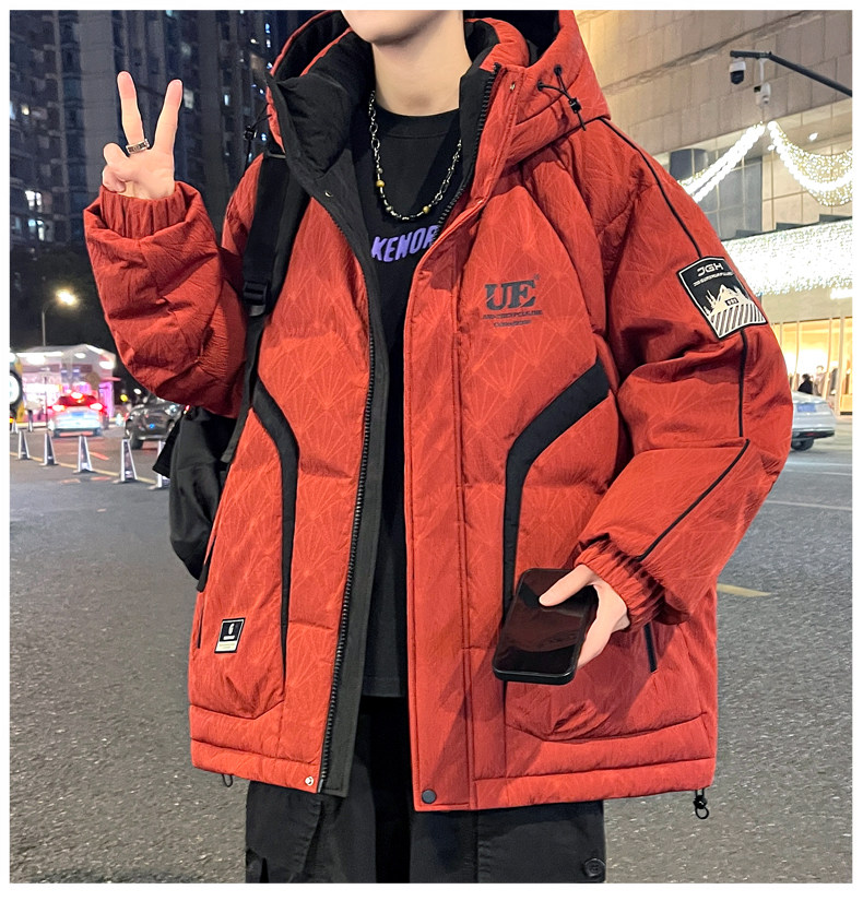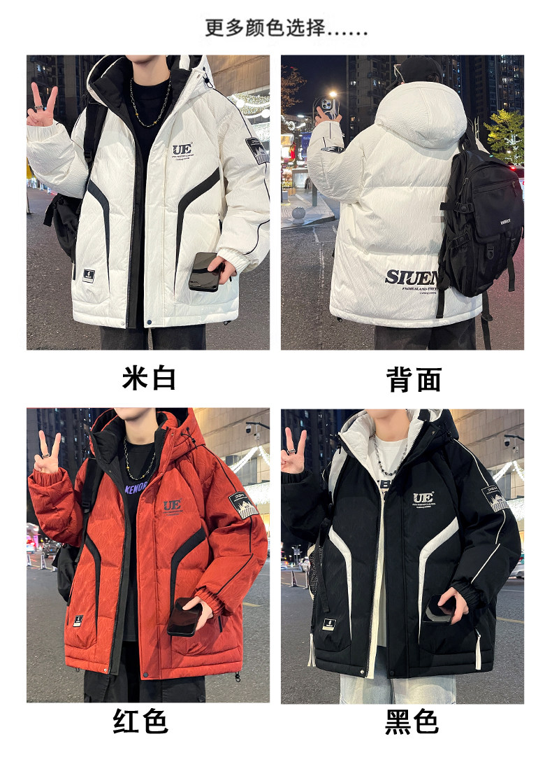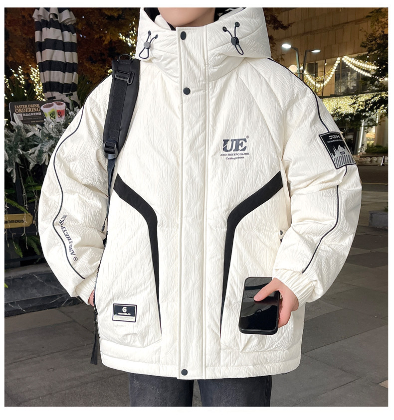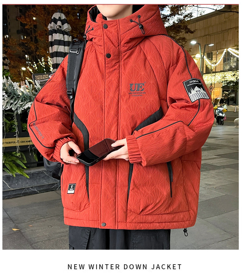 Down jacket men's winter trendy brand contrasting coat male student hooded thickened warm and lockable outdoor cold-proof clothing