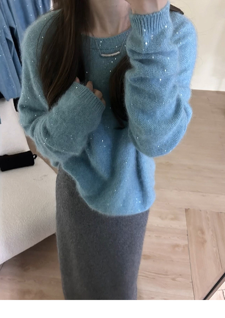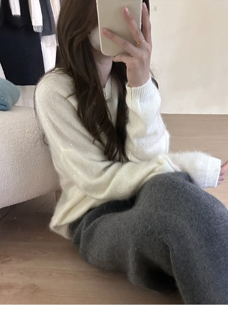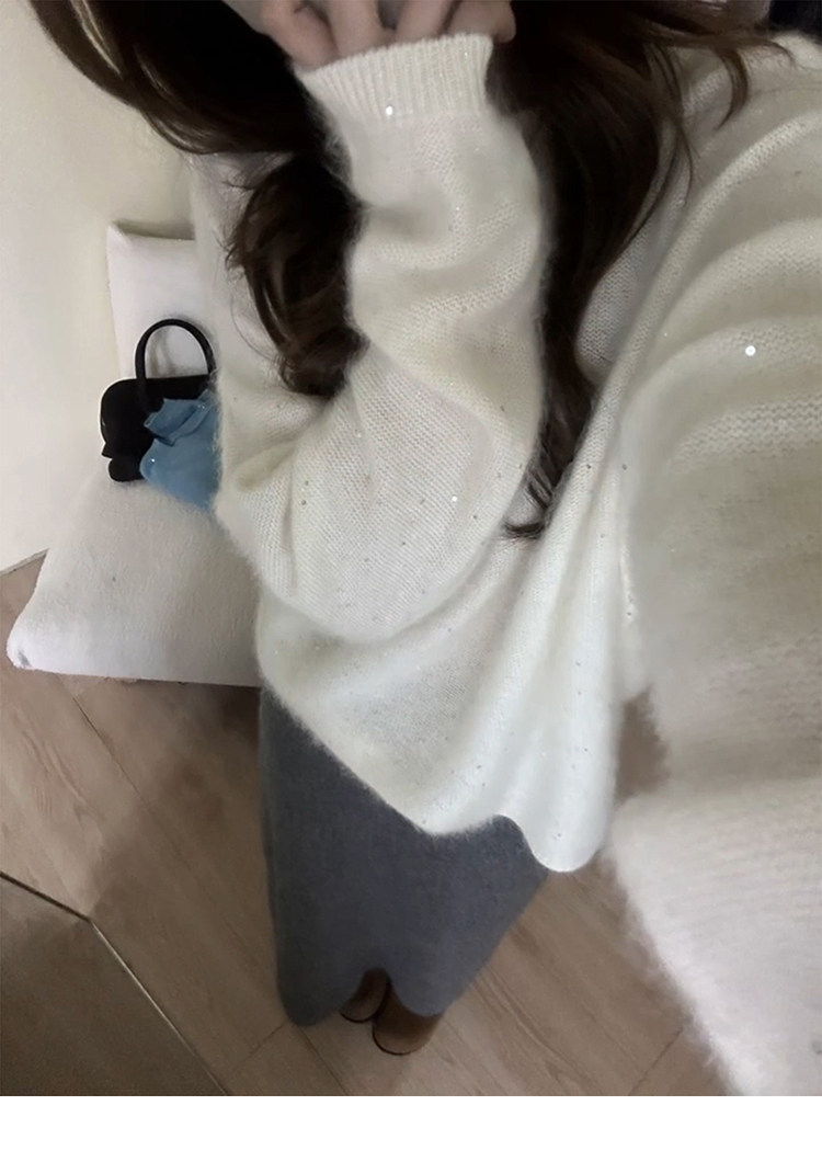 Soft and Fluffy White Sequined Raccoon Fur Sweater for Women, Korean Style, Loose and Lazy Knit Top for Autumn and Winter