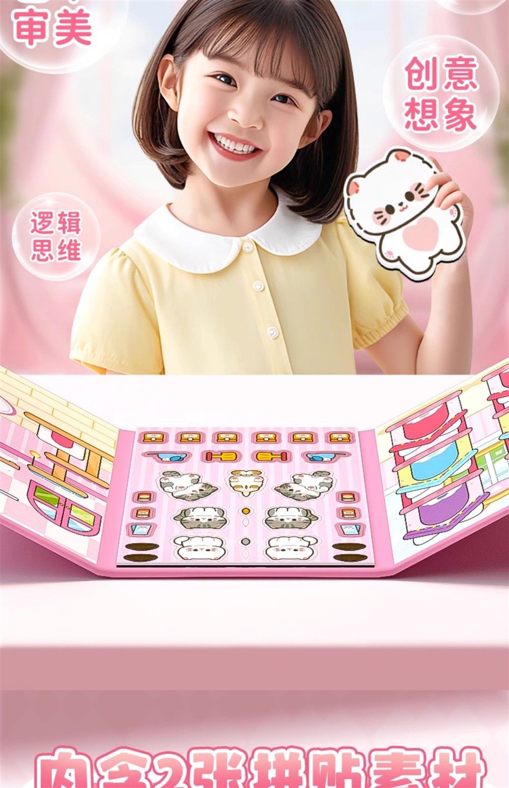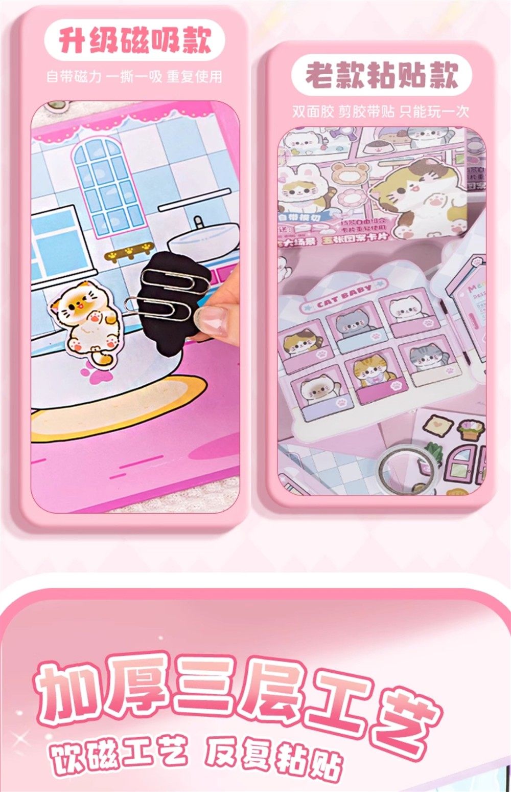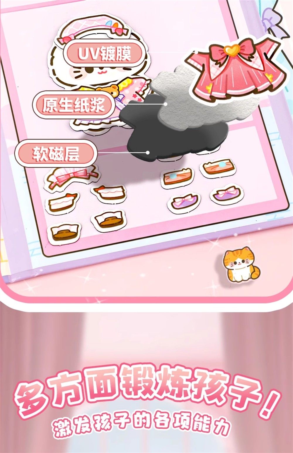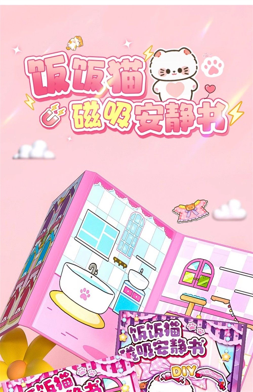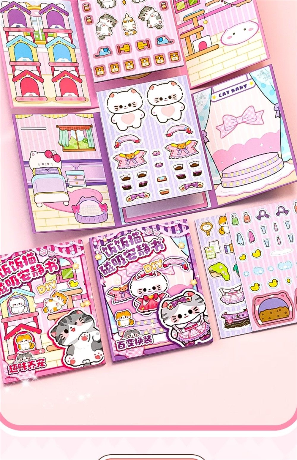 Magnetic Quiet Book New Model for Girls No-Cut DIY Dress-Up Sticker Book Rice Rice Cat Pet Toy 6