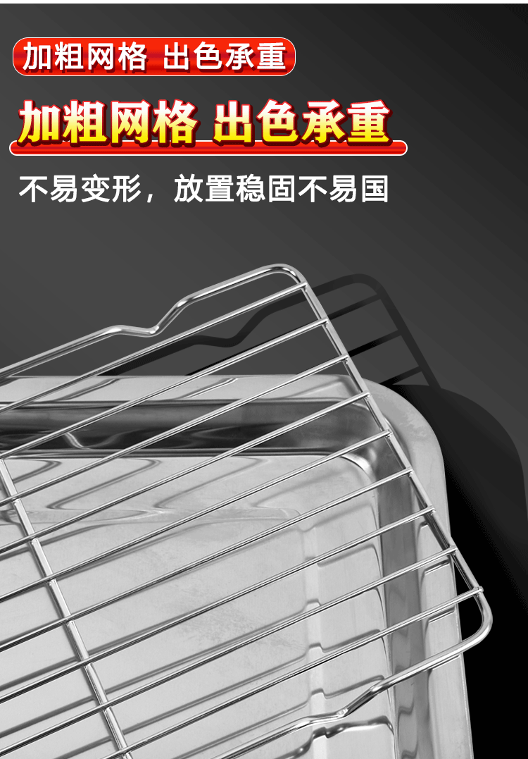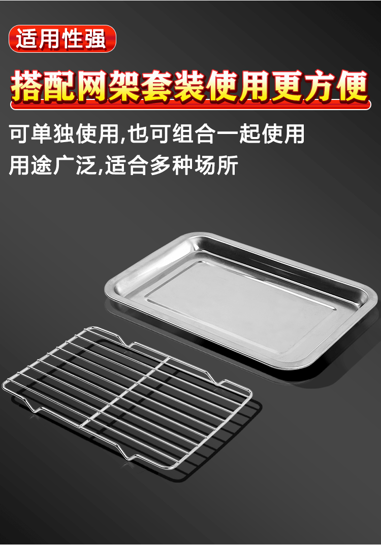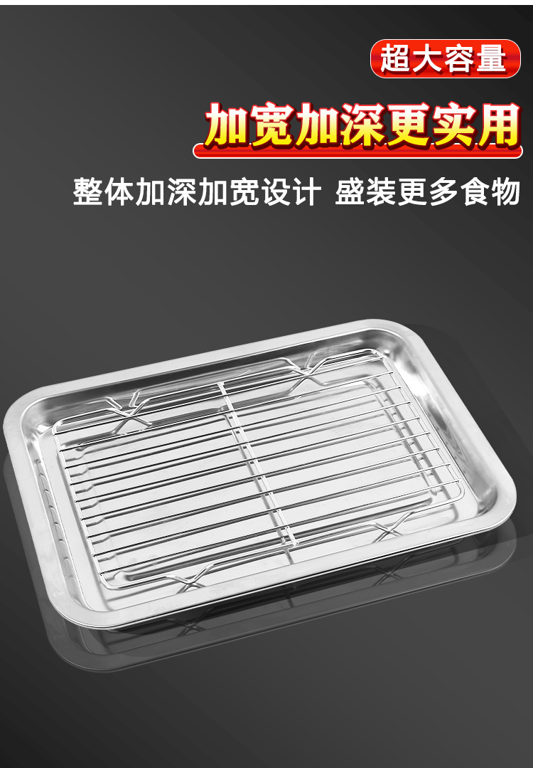 Stainless steel square tray with grid oil control rack Commercial tray Filter water filter oil tray Delicious food display tray BBQ sprinkler tray