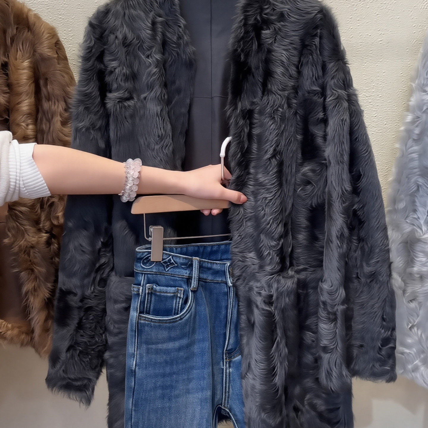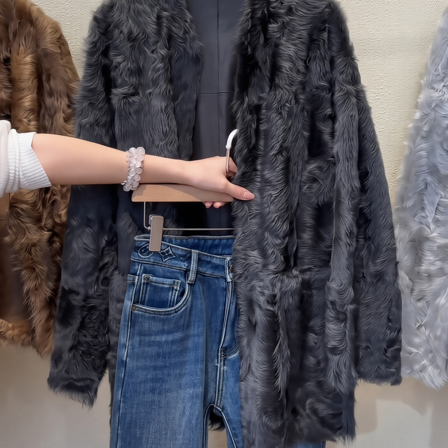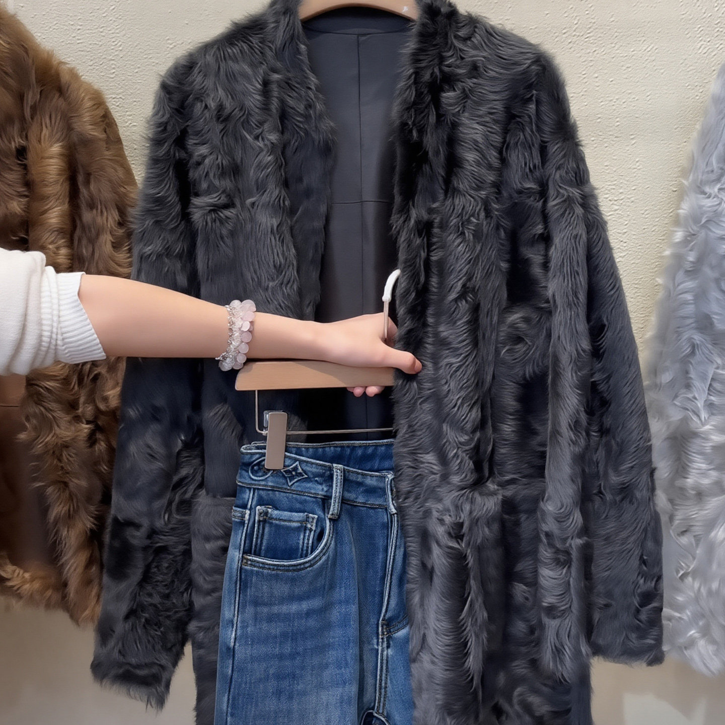 Design black plush coat 2026 spring new large size women's fat MM niche loose long-sleeved coat