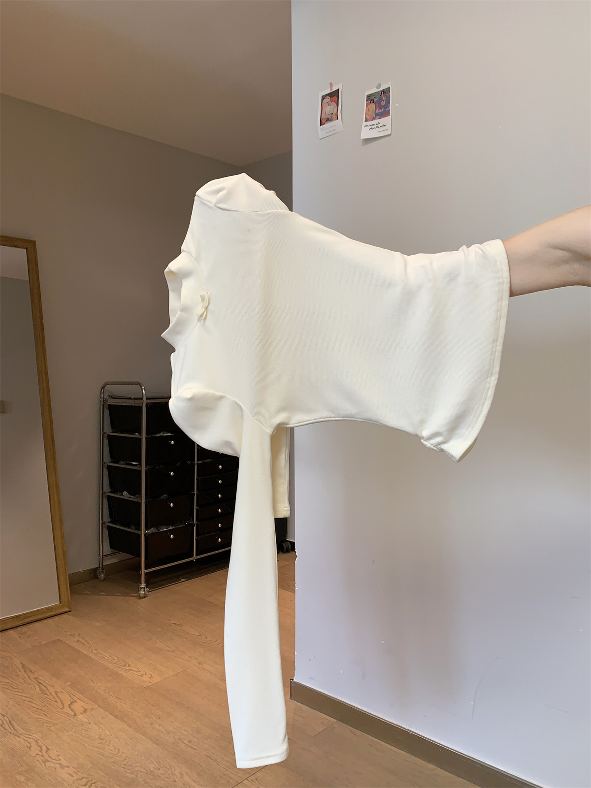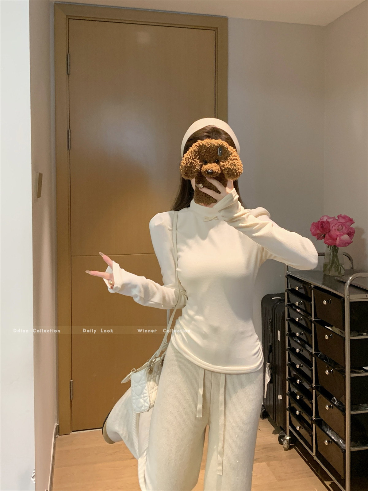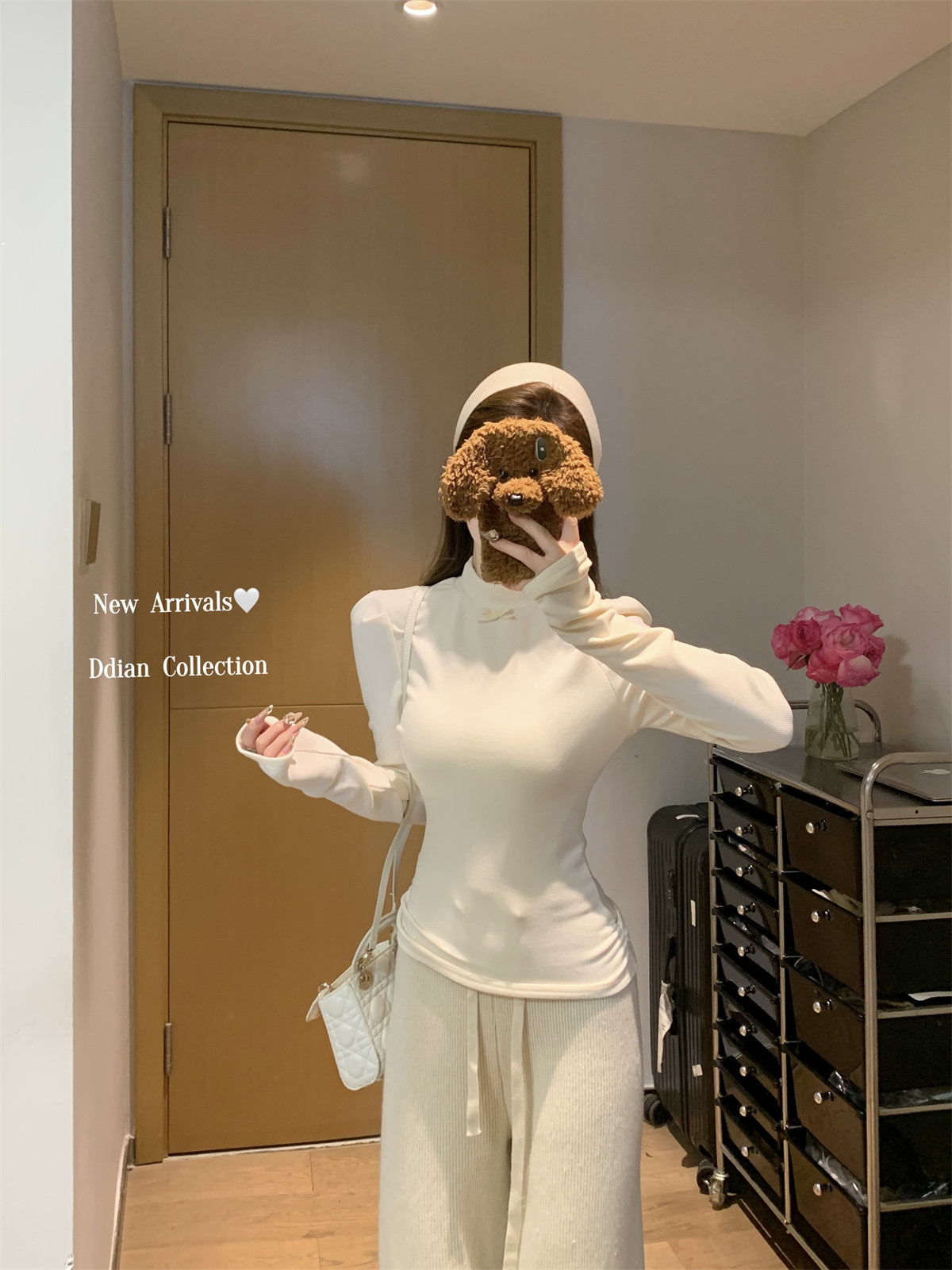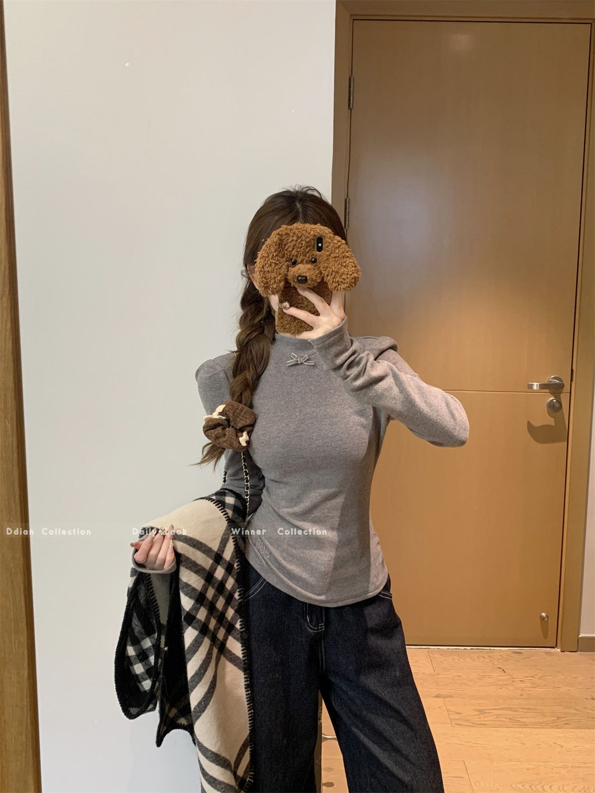 Korean Style Gentle Half-High Collar Puff Sleeve T-Shirt for Women, Autumn and Winter Brushed Fleece with Pleated Design Long-Sleeve Top ins