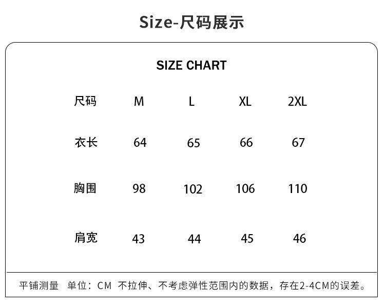 Size M 85-105Jin Jin equals 0.5 kg,L 105-115Jin Jin equals 0.5 kg,XL 115-125Jin Jin equals 0.5 kg,2XL 125-140Jin Jin equals 0.5 kg