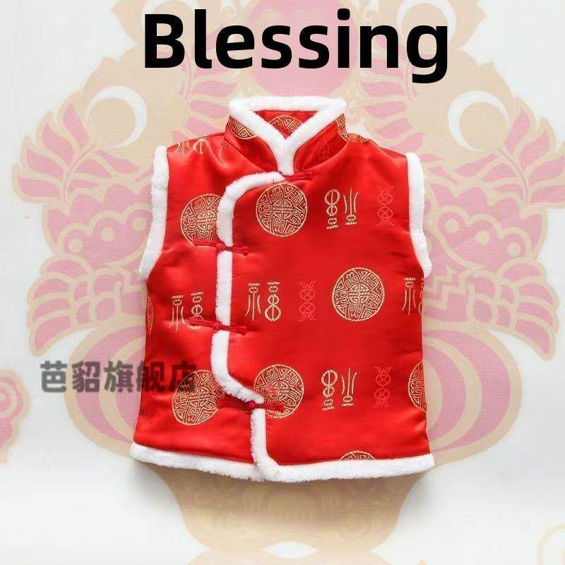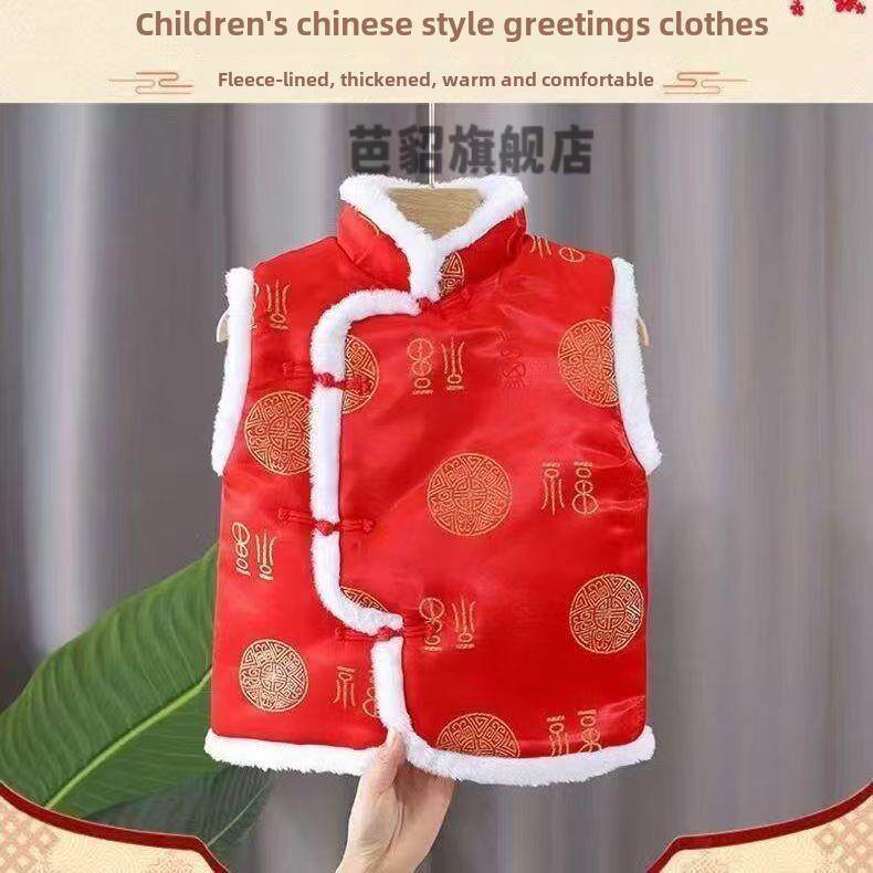 New Year's Day party children's performance clothing Chinese style autumn and winter clothing Tang suit boys and girls festive Chinese style vest New Year's greetings clothing cotton