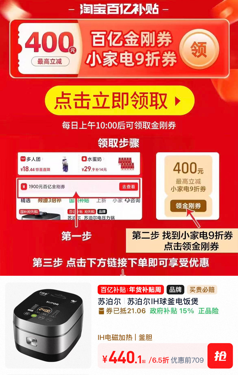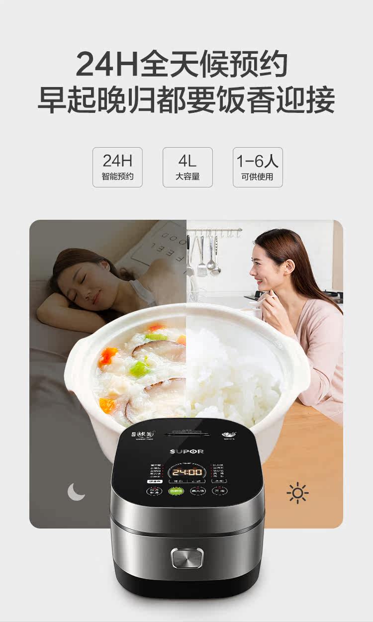 Supor Electric Rice Cooker for Home Use, Multifunctional Smart 4-Liter Rice Cooker with Ih Ball-Shaped Inner Pot, Genuine 2025 New Model