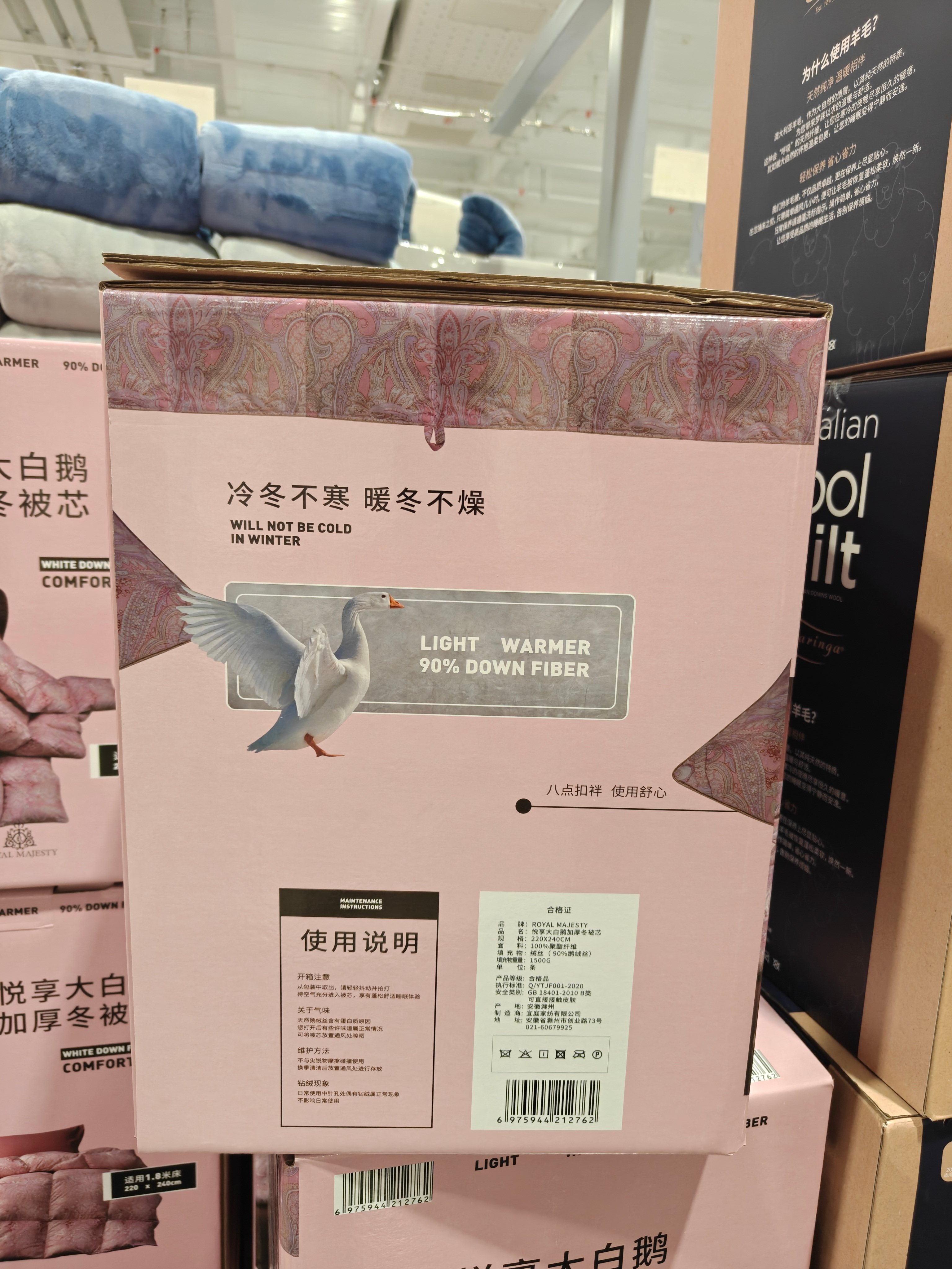 Royal Majesty White Goose down Duvet with 90% down Content, Thickened for Winter Warmth, Costco Selection
