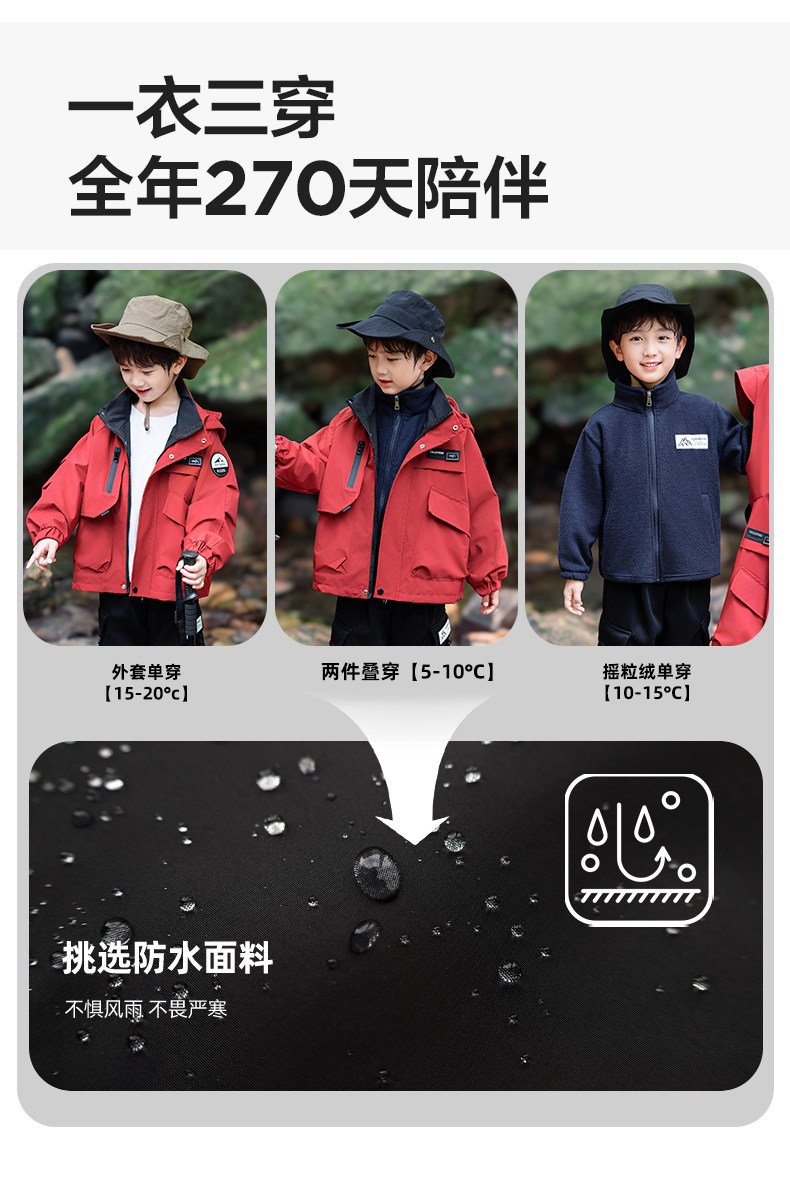 Bala Kidsren's Outdoor Jacket Three-In-One Boys' Spring & Fall Style Jacket, Trendy and Cool for Boys, Suitable for All Seasons