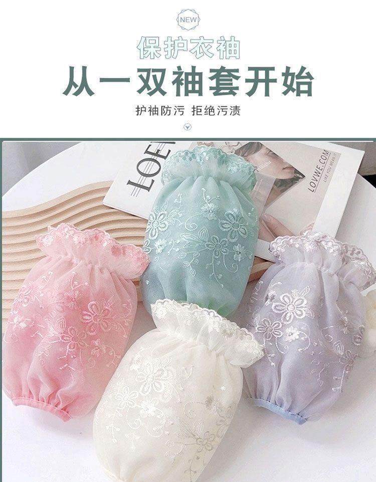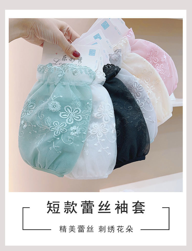 Translucent Lace Sleeve Covers for Women, Embroidered Lace Short Anti-Stain down Jacket Sleeve Cuffs, Office Anti-Dirt Student Sleeve Protectors