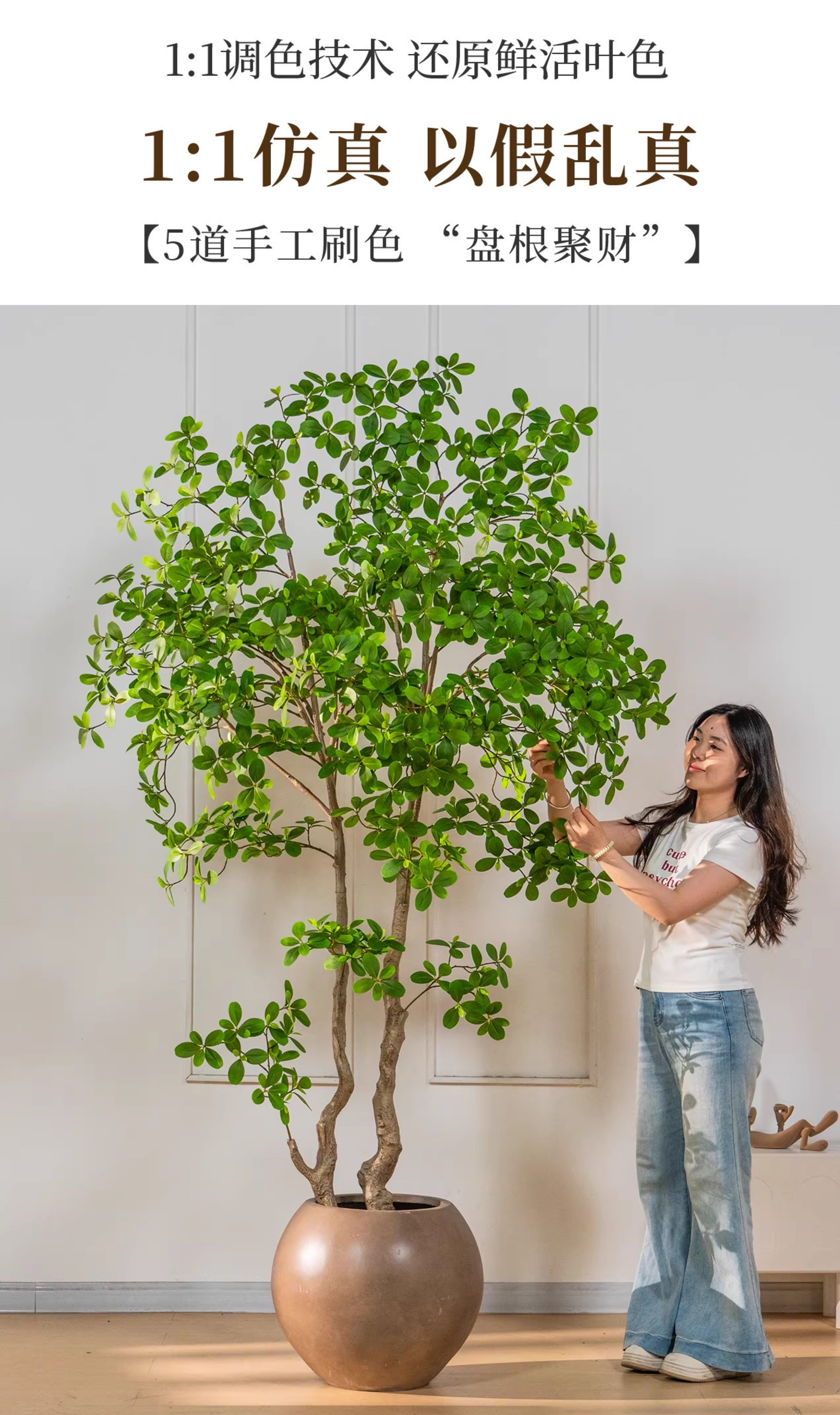 High-End Artificial Green Plant, Fortune Tree, Fake Tree, Artificial Money Tree, Fake Potted Plant, Living Room Indoor Floor-Standing Decorative Ornament