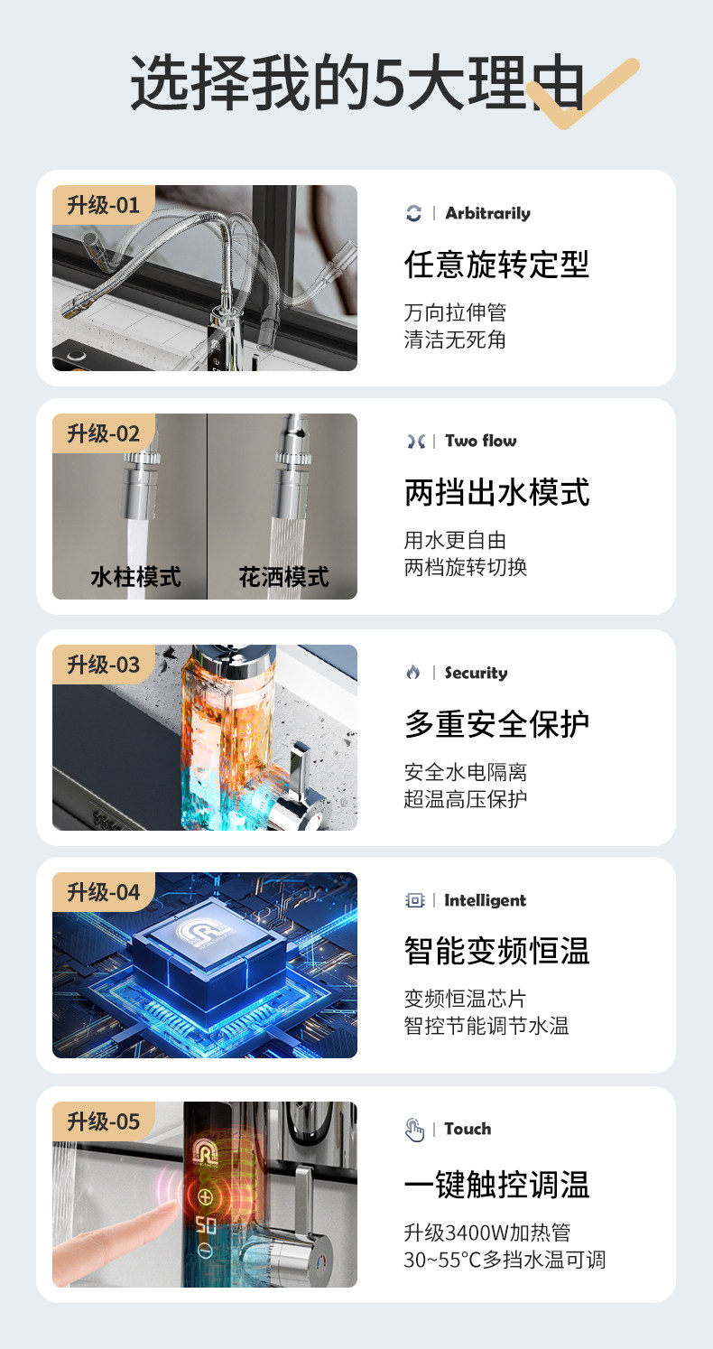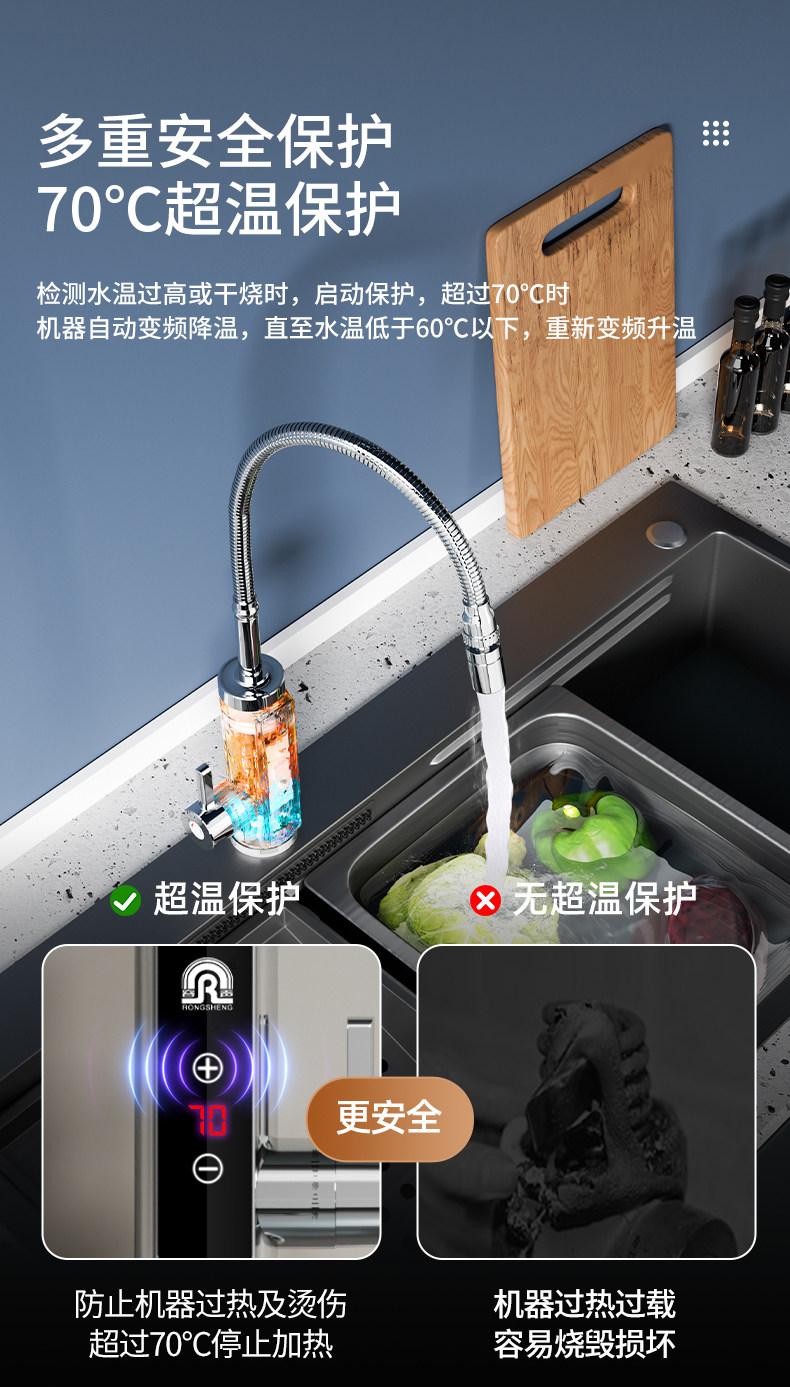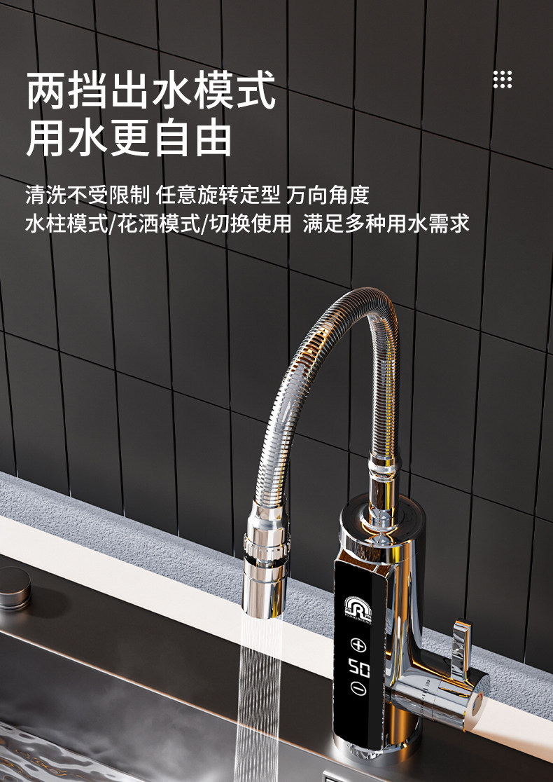 Electric hot water faucet instant heating universal stretch tube kitchen treasure bathroom frequency conversion stainless steel sound-accommodating small heater