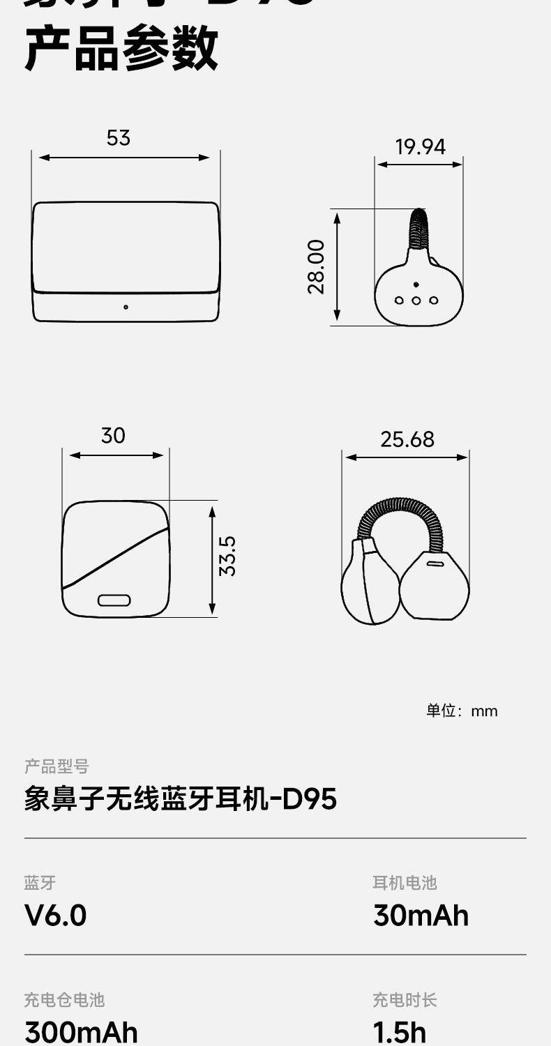 Elephant Nose D95 Magic Bean Ear Clip Series Non-Deformable and Comfortable to Wear Deepseek Translation Headphones