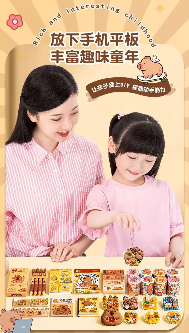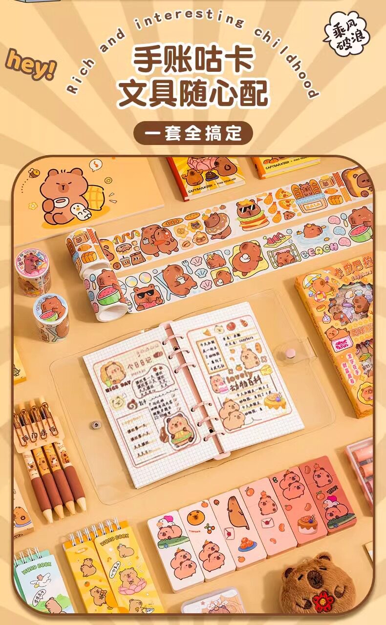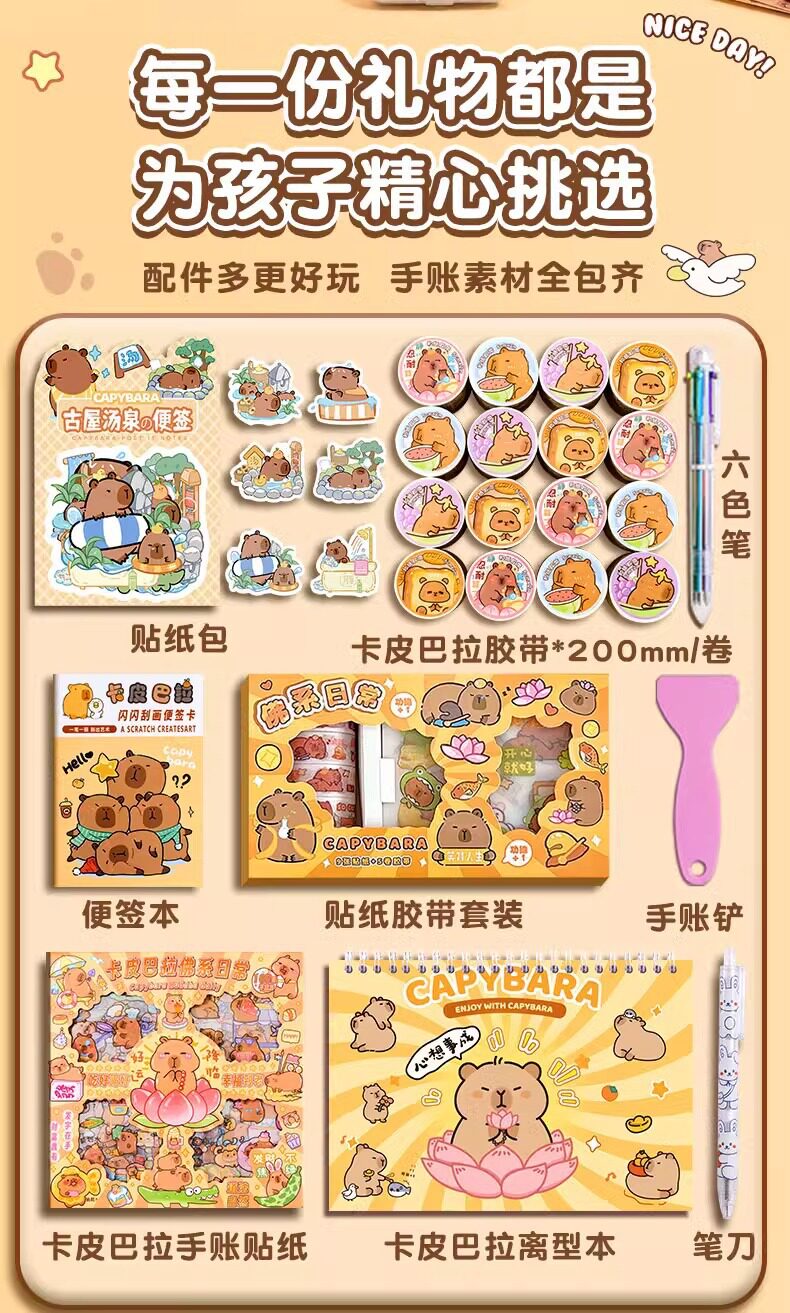 Kapibala stationery set gift box 10-10-year-old little girl children's birthday gift children girls primary school gift package school supplies kindergarten Christmas capybara handbook hug bucket