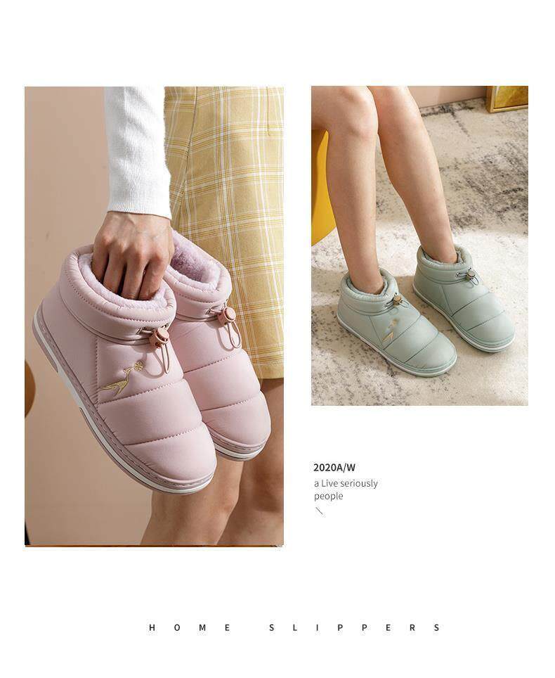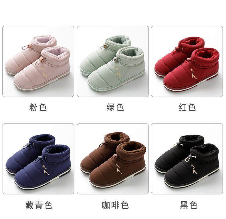 Cotton slippers for women in winter with velvet thickened and warm indoor non-slip thick sole home use down cotton shoes for men to wear outside