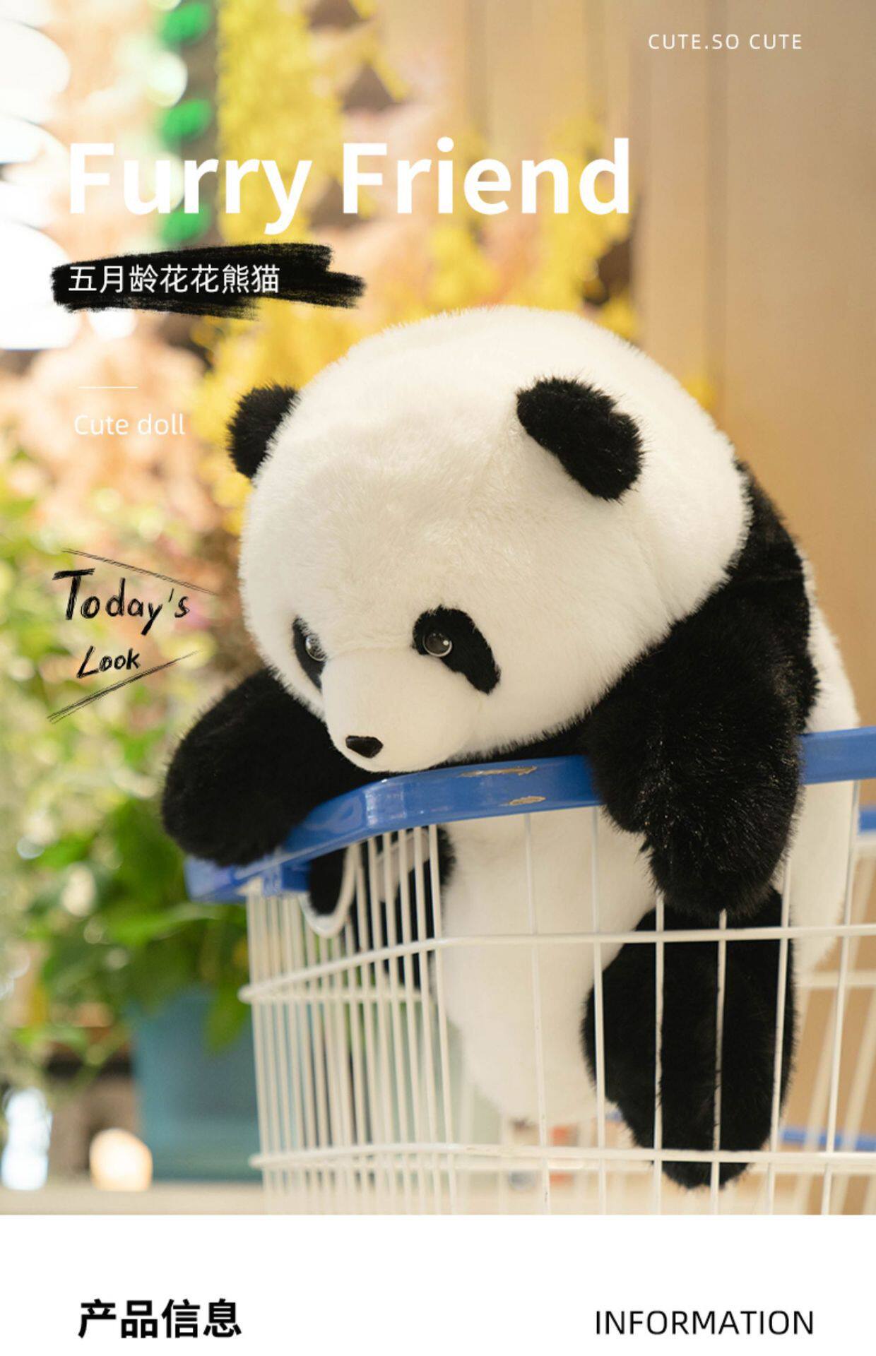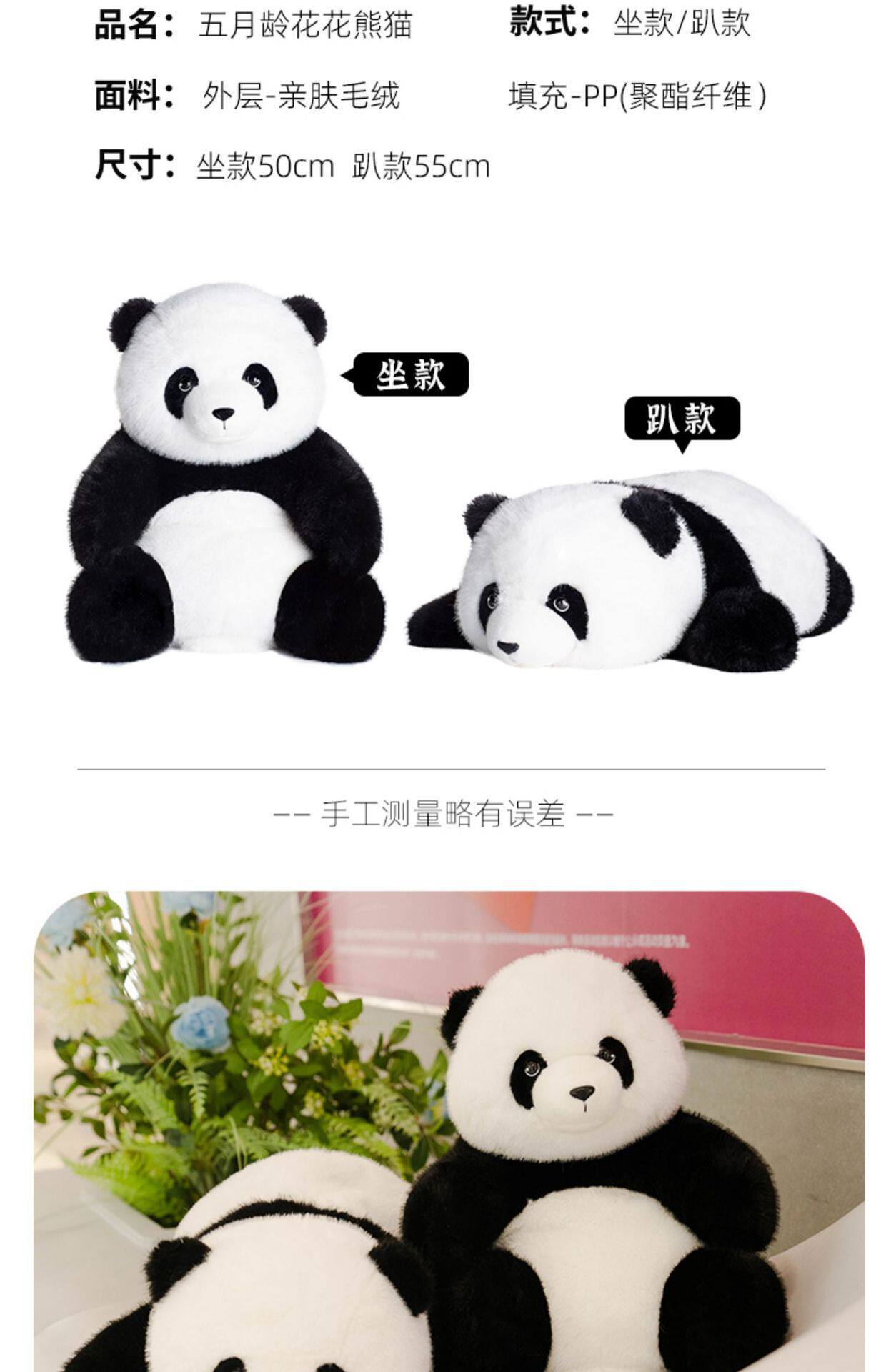 Japanese Sc Panda Plush Toy, Realistic Giant Panda Doll, Stuffed Animal, Fruit-Shaped Pillow, Birthday Gift