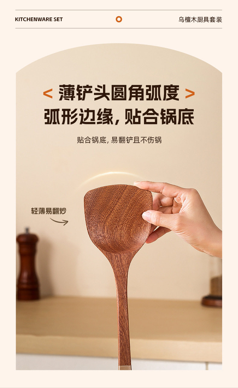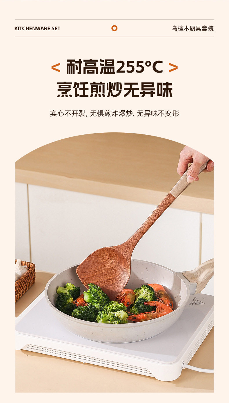 Wooden spatula for non-stick pans, special high-temperature cooking spatula, wooden spatula, ebony soup spoon, rice spoon, wooden spatula, rice spatula
