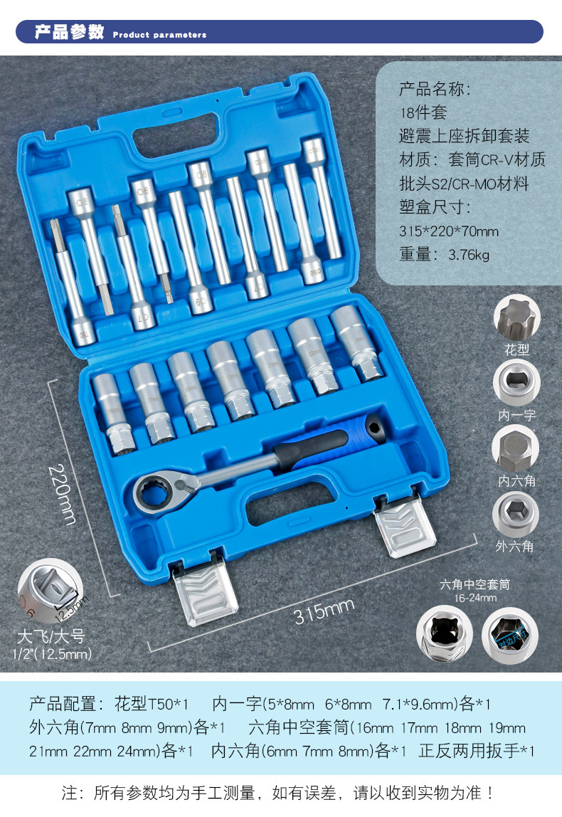 Color Classification 18-Piece Shock Absorber Upper Seat Disassembly Set (Metal Buckle)