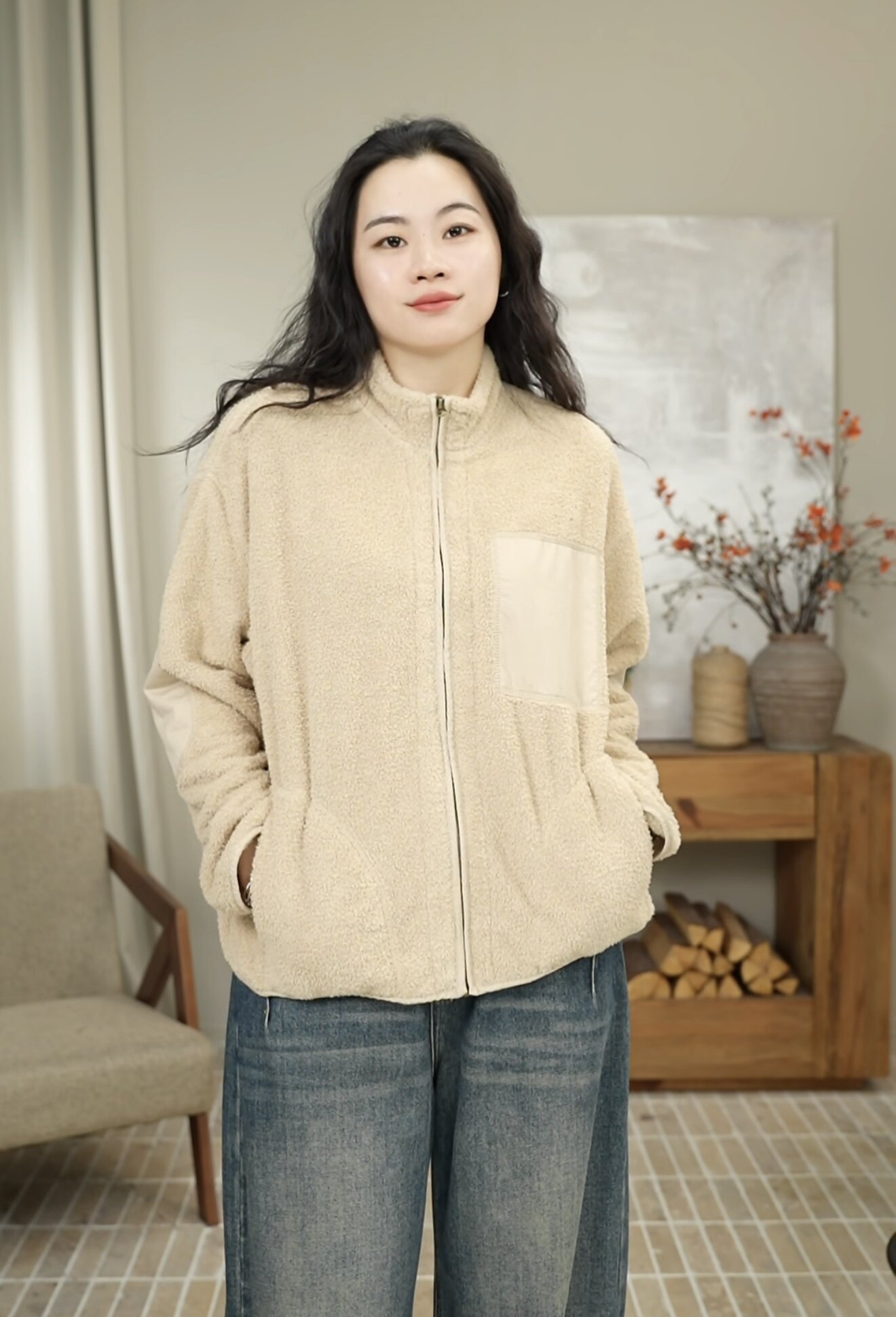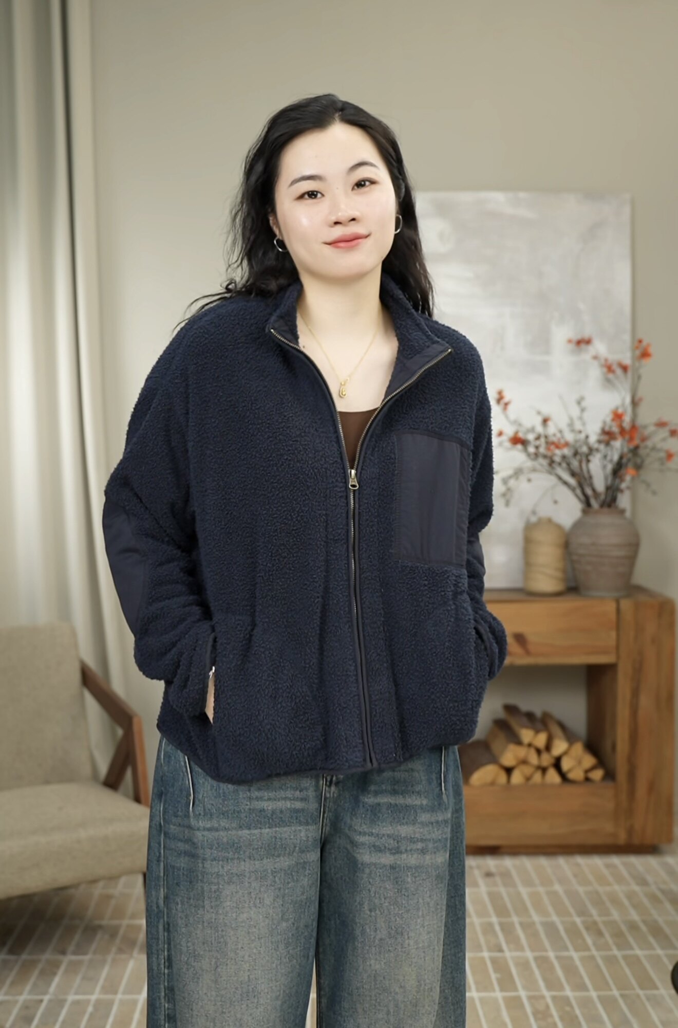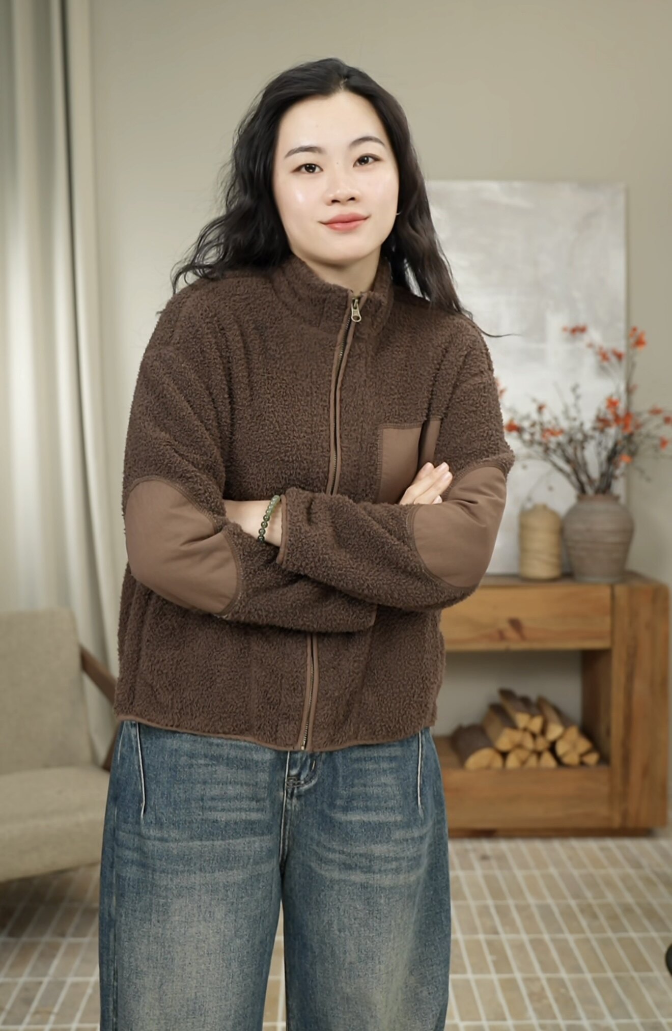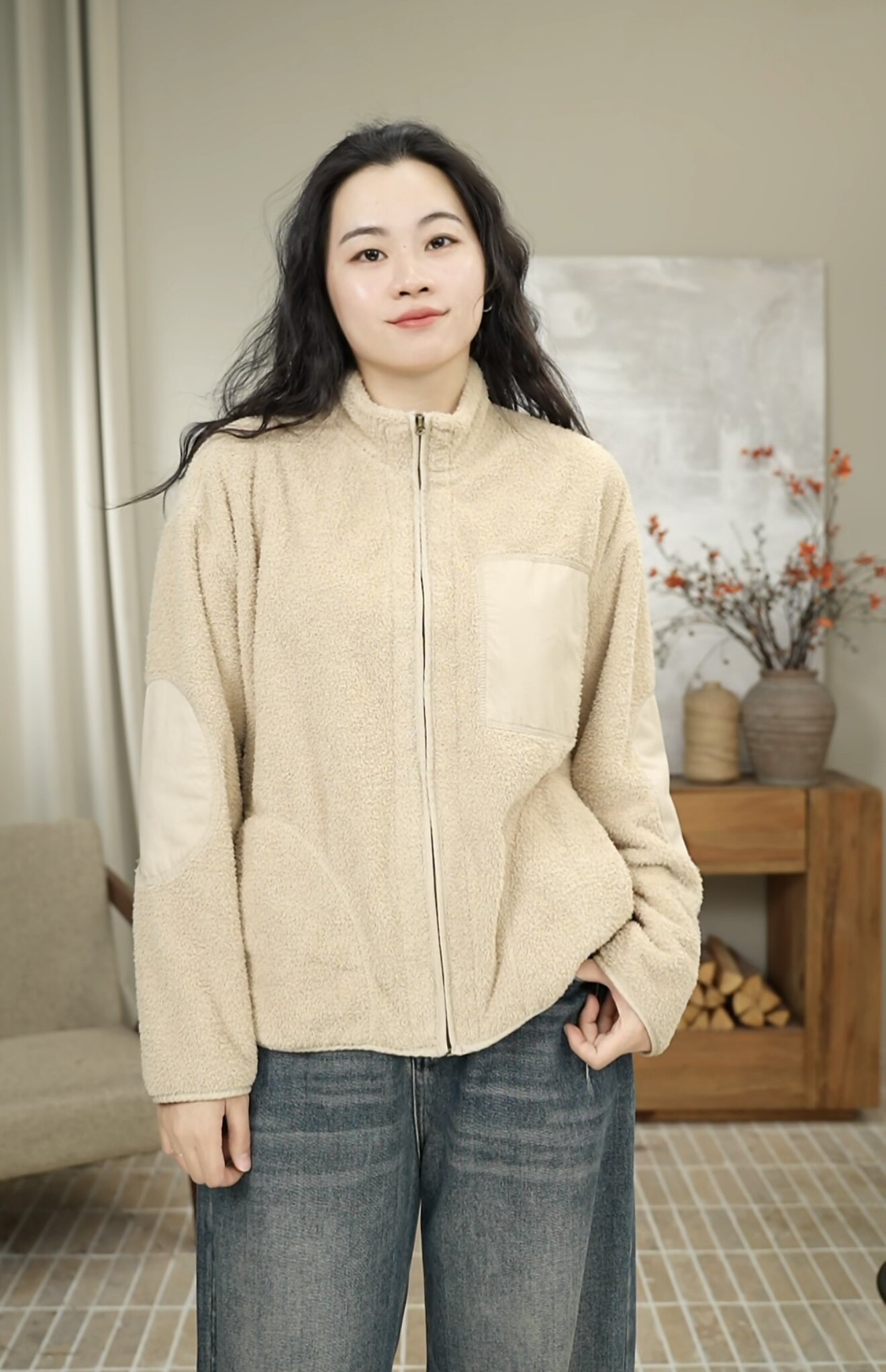 Autumn and winter fashionable spliced ​​double-sided polar fleece stand-up collar versatile age-reducing casual jacket 9698