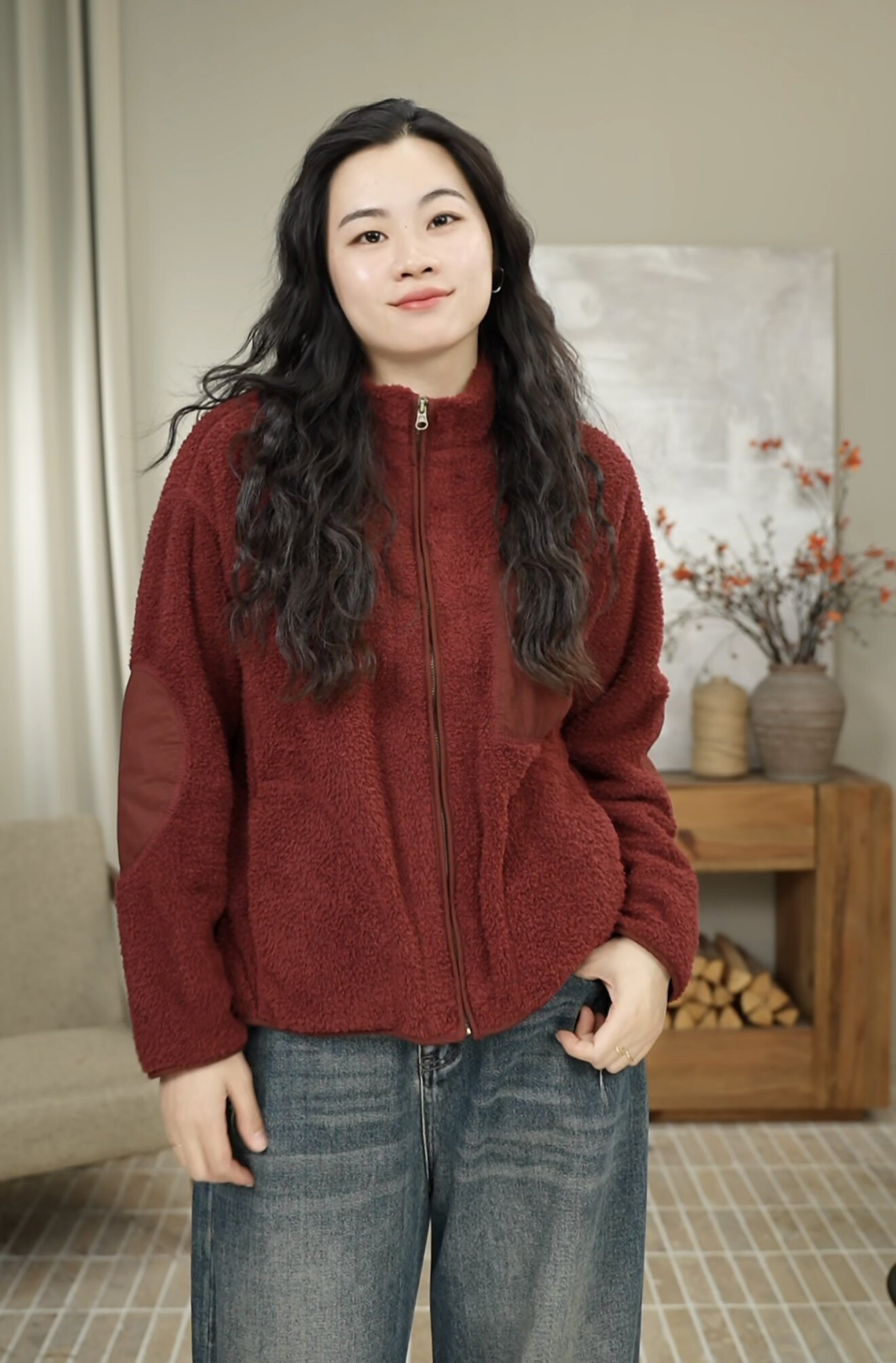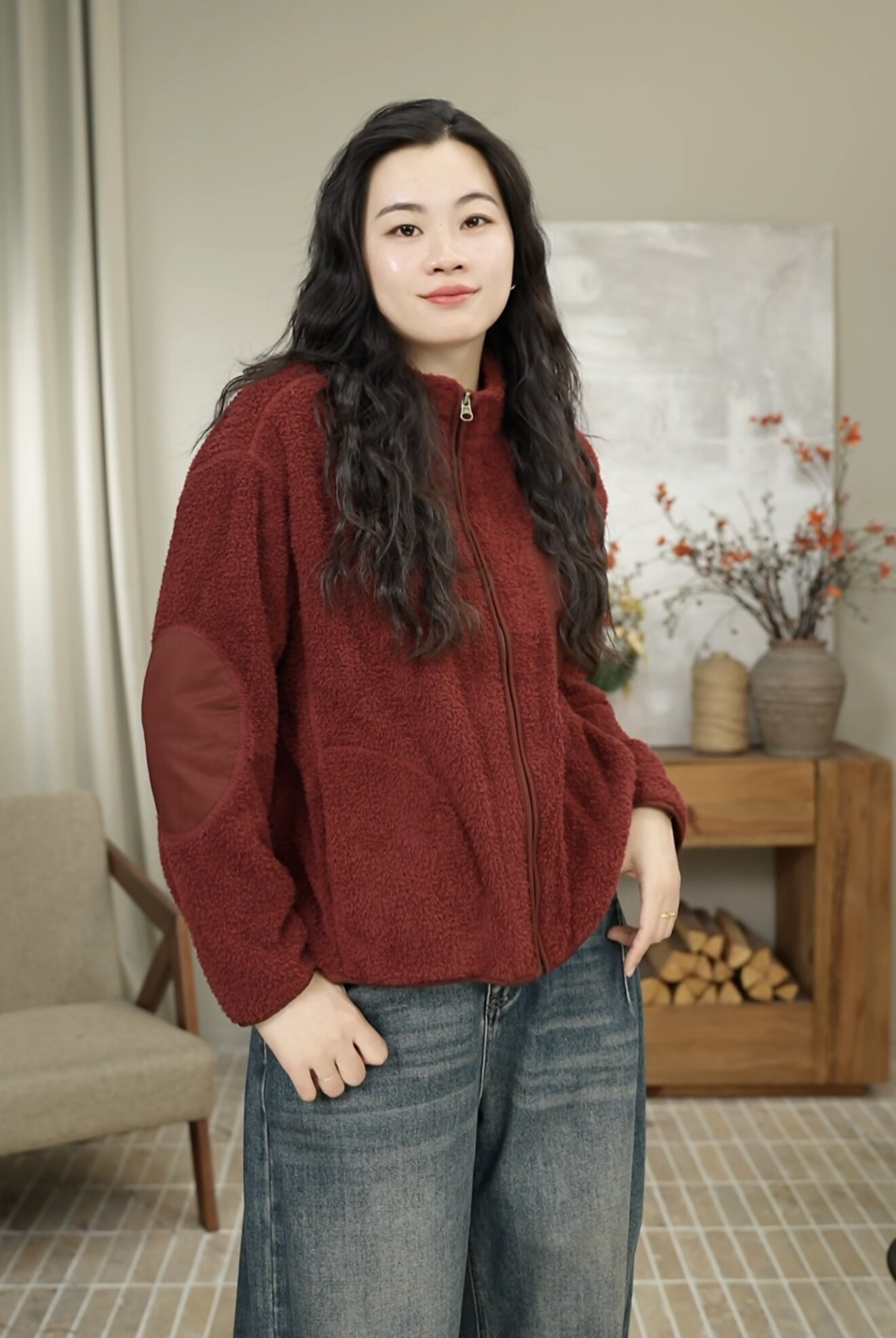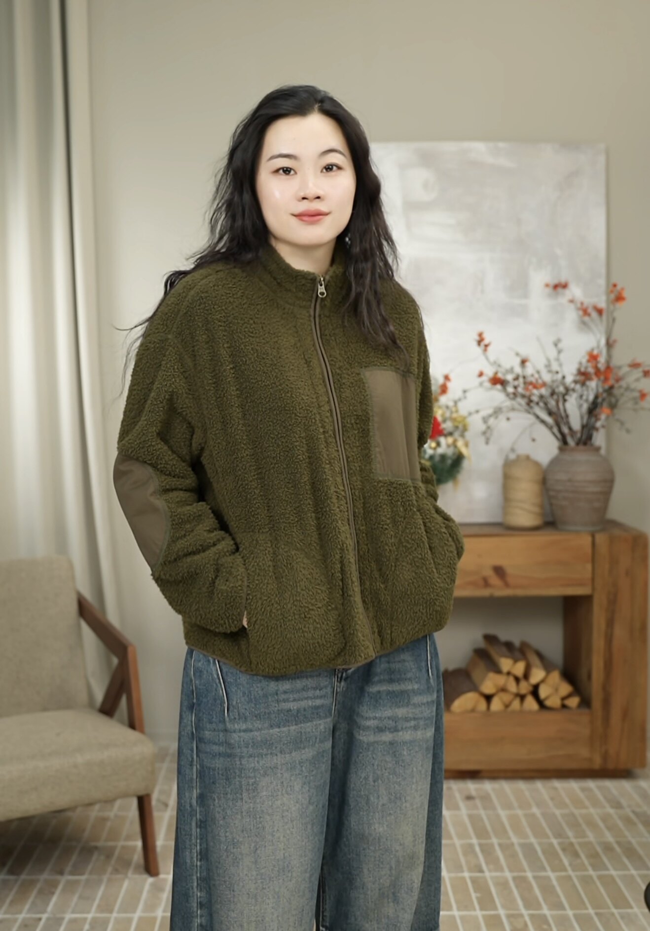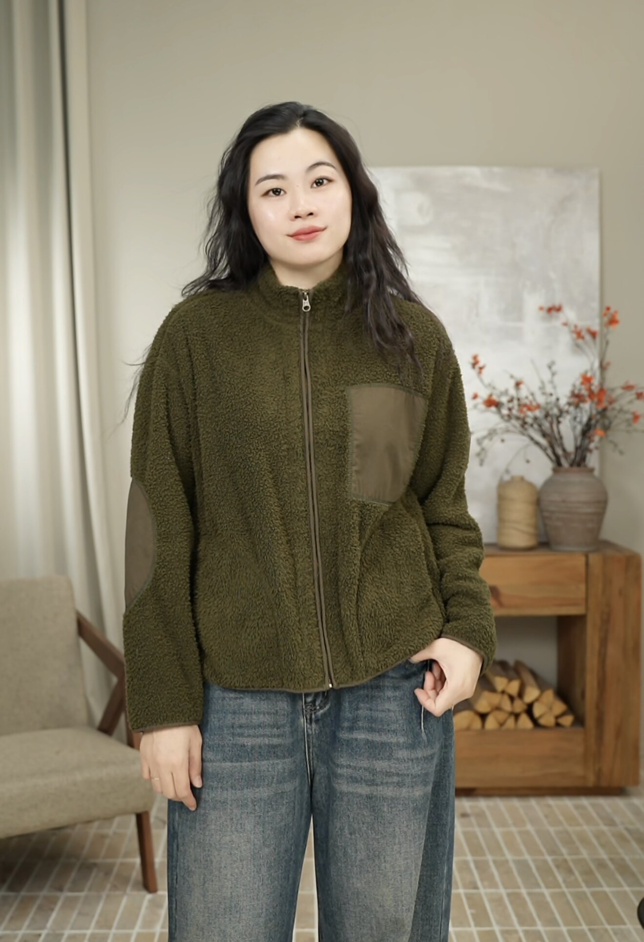 Autumn and winter fashionable spliced ​​double-sided polar fleece stand-up collar versatile age-reducing casual jacket 9698