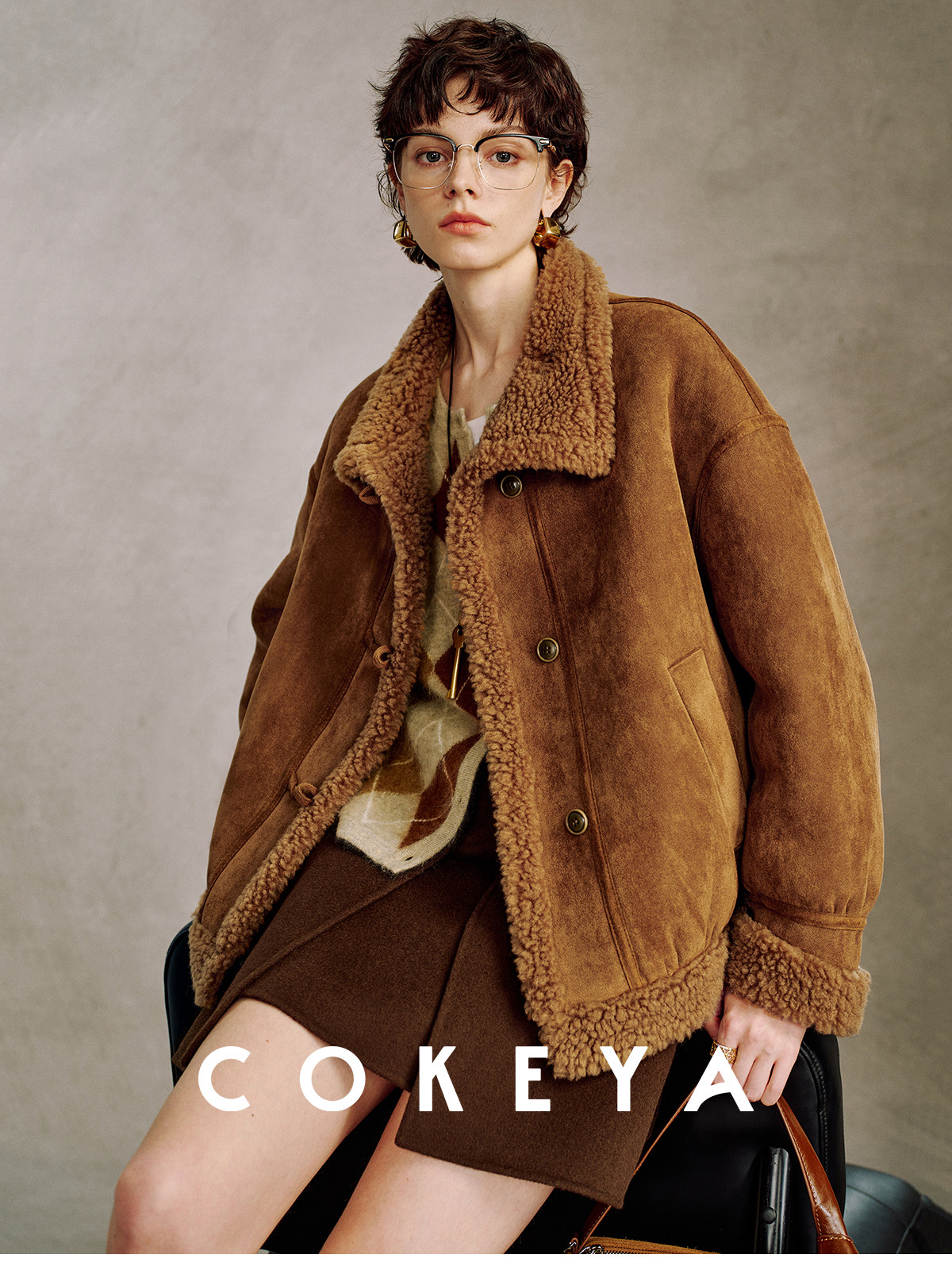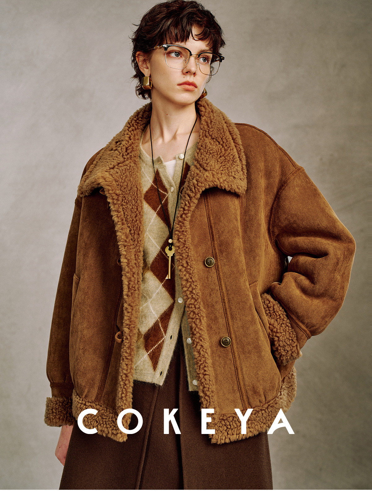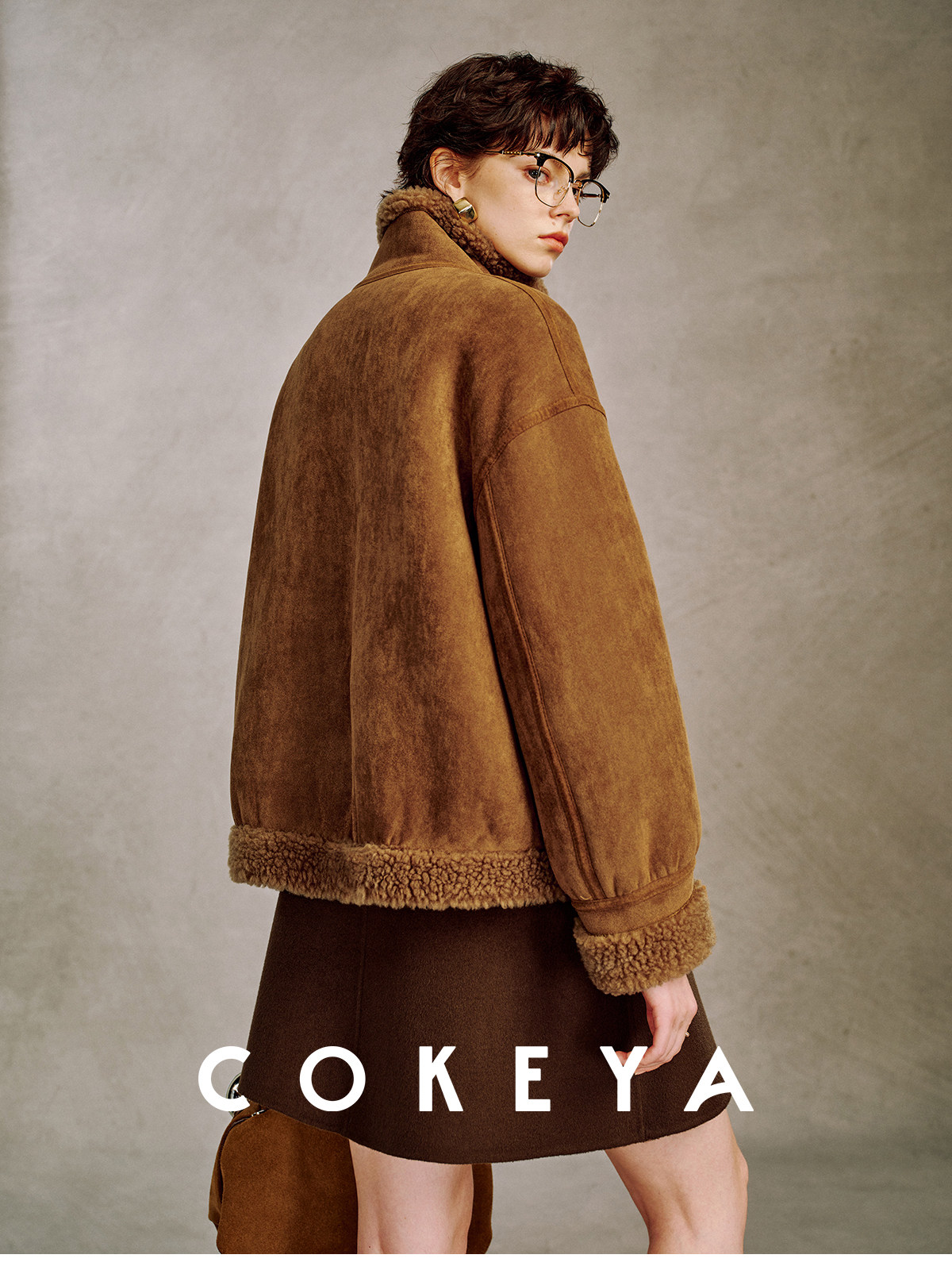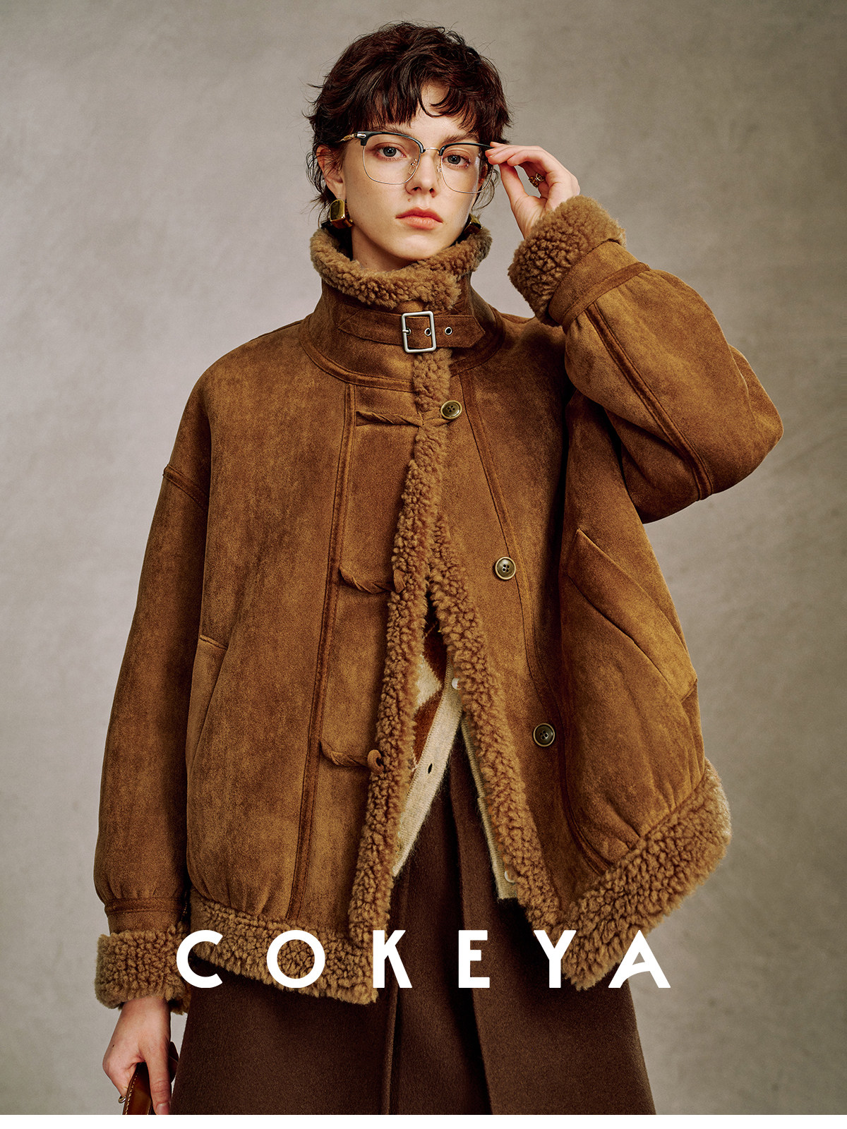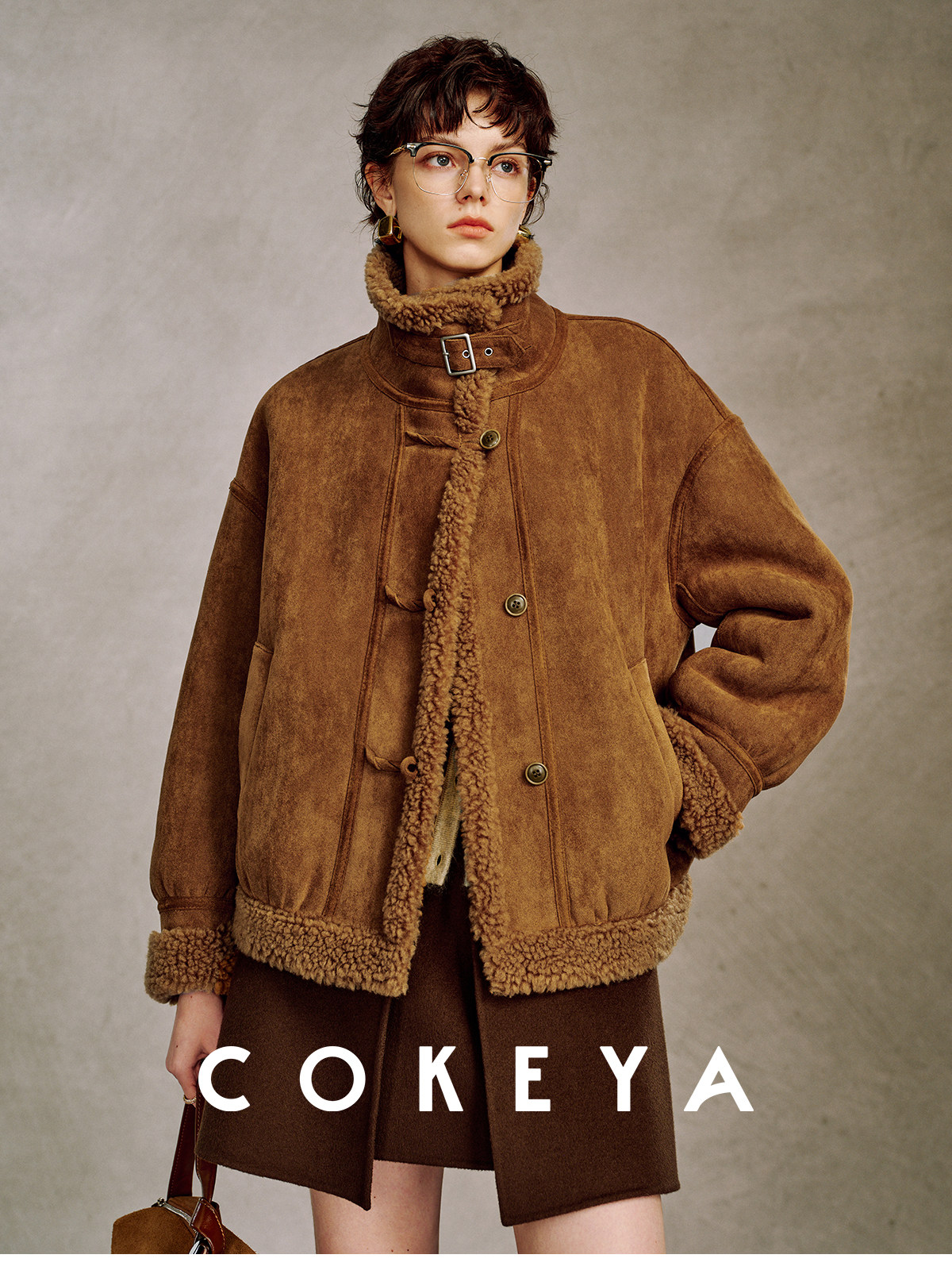 Cokeya/Du Se Gallery~Sheep Wool Suede Stand-Up Collar Short Loose Long-Sleeved Jacket Fur Outwear for Women Winter