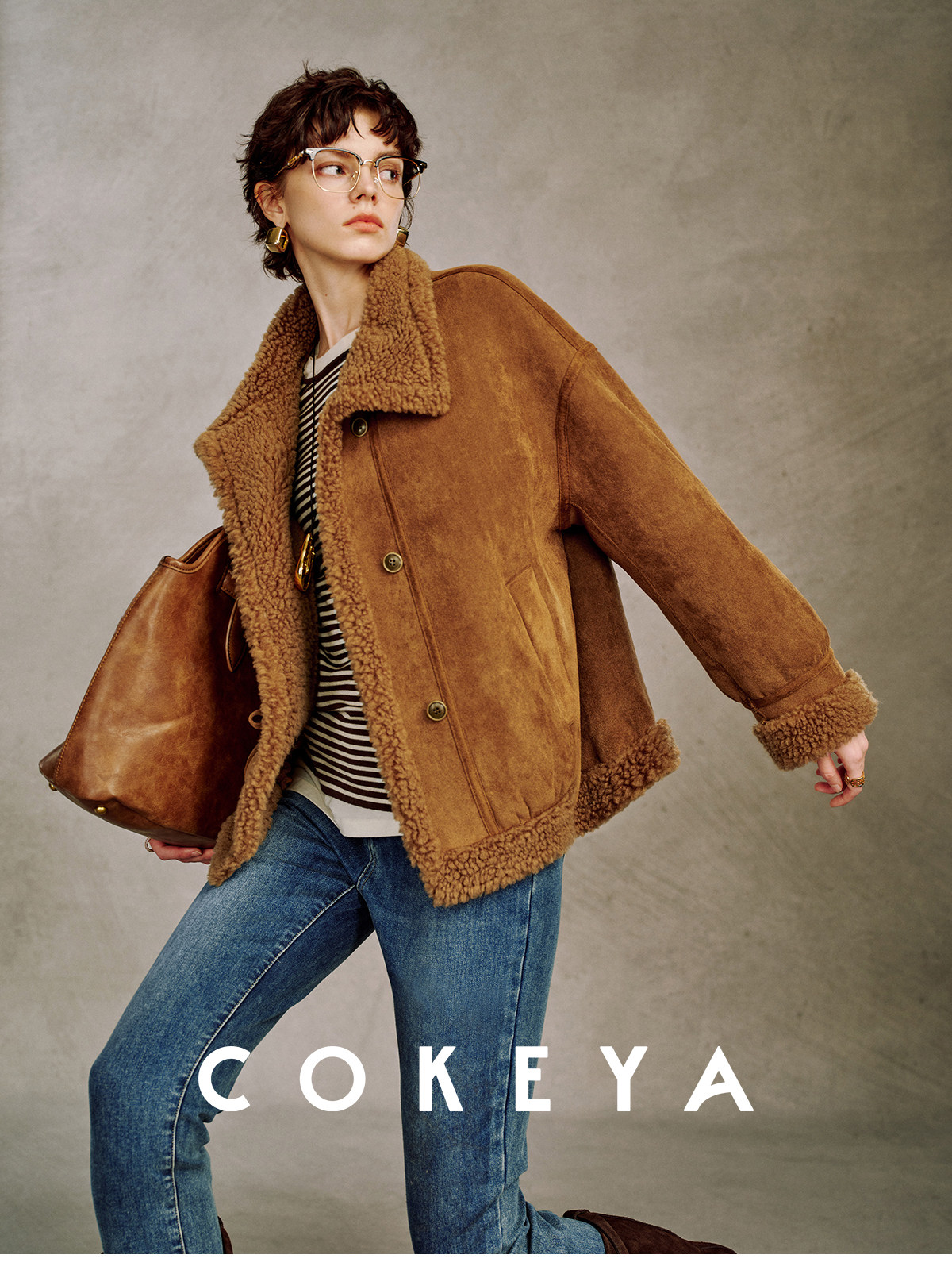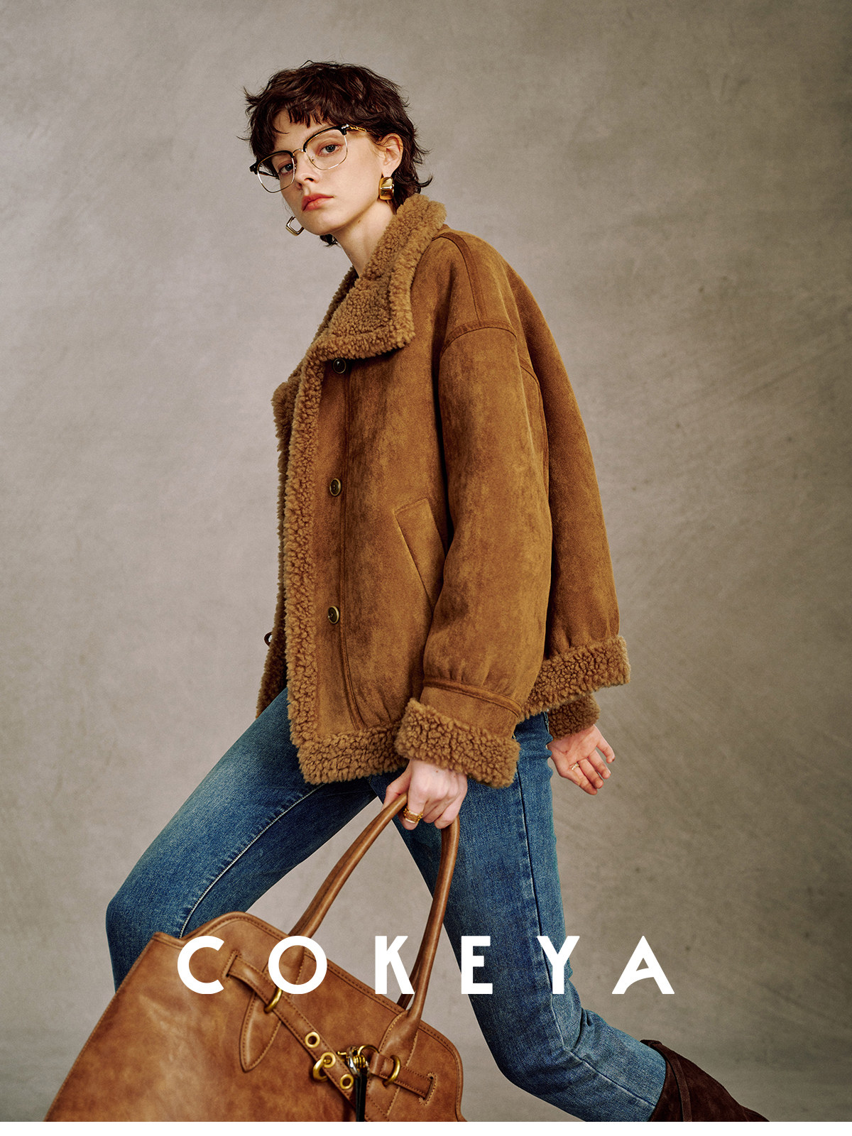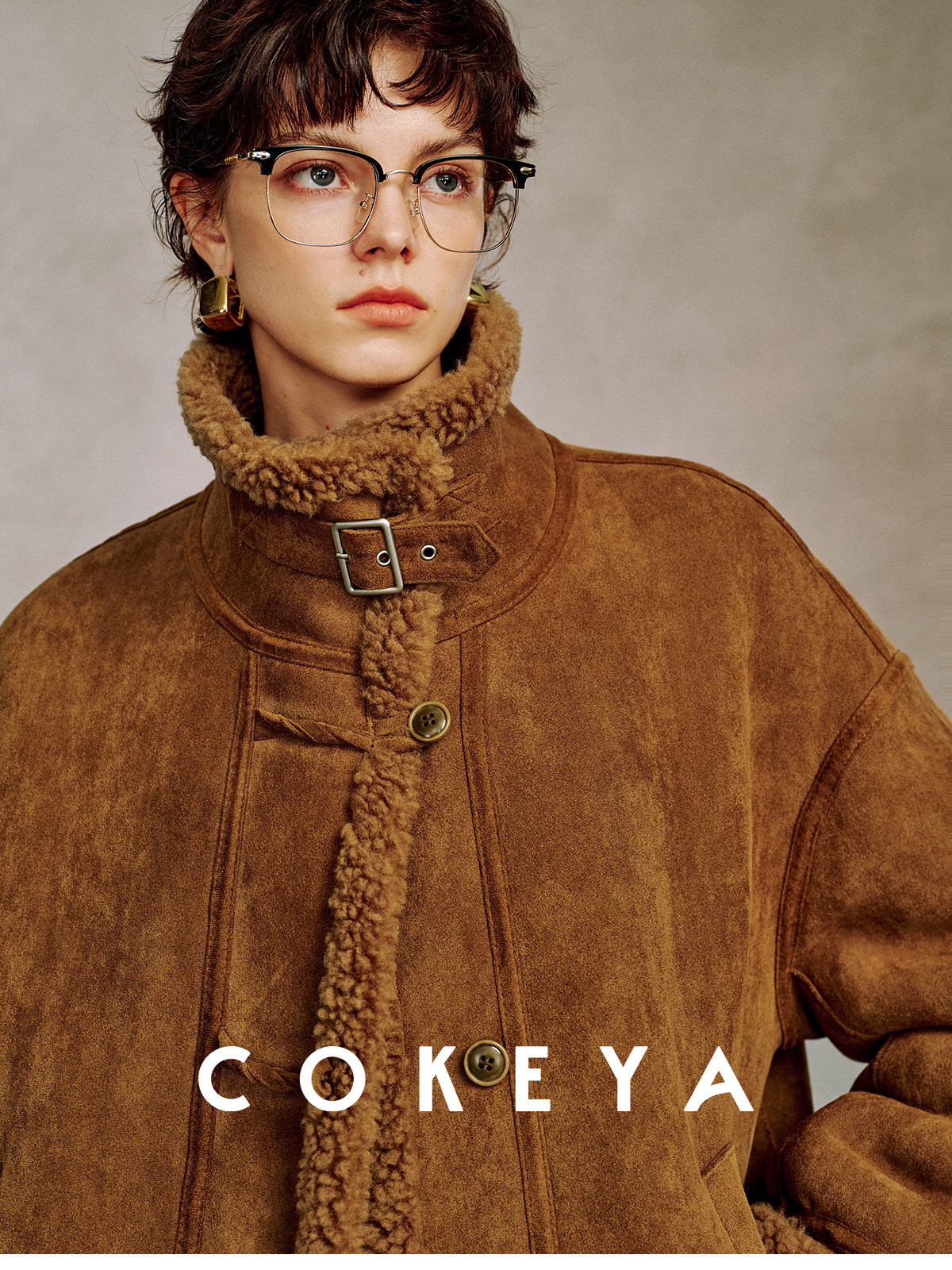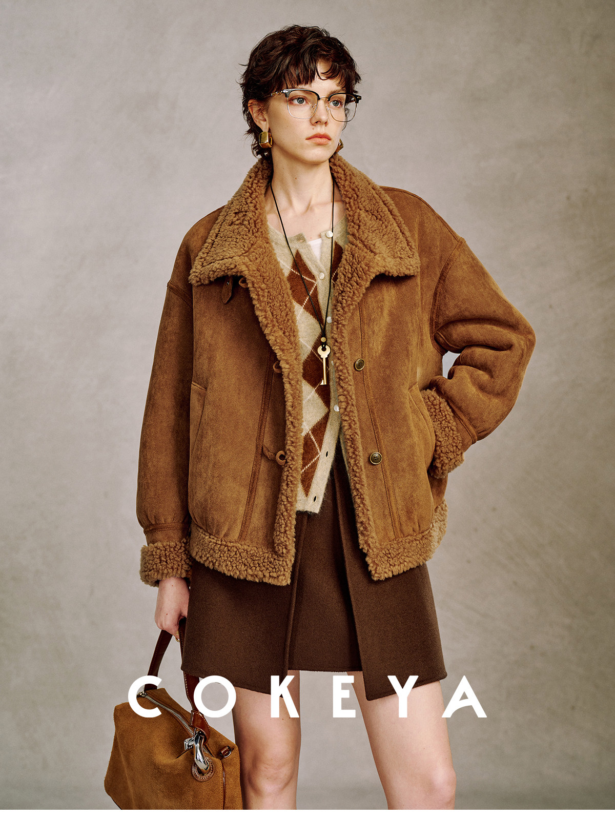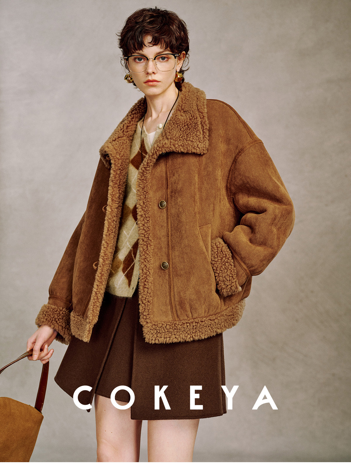 Cokeya/Du Se Gallery~Sheep Wool Suede Stand-Up Collar Short Loose Long-Sleeved Jacket Fur Outwear for Women Winter