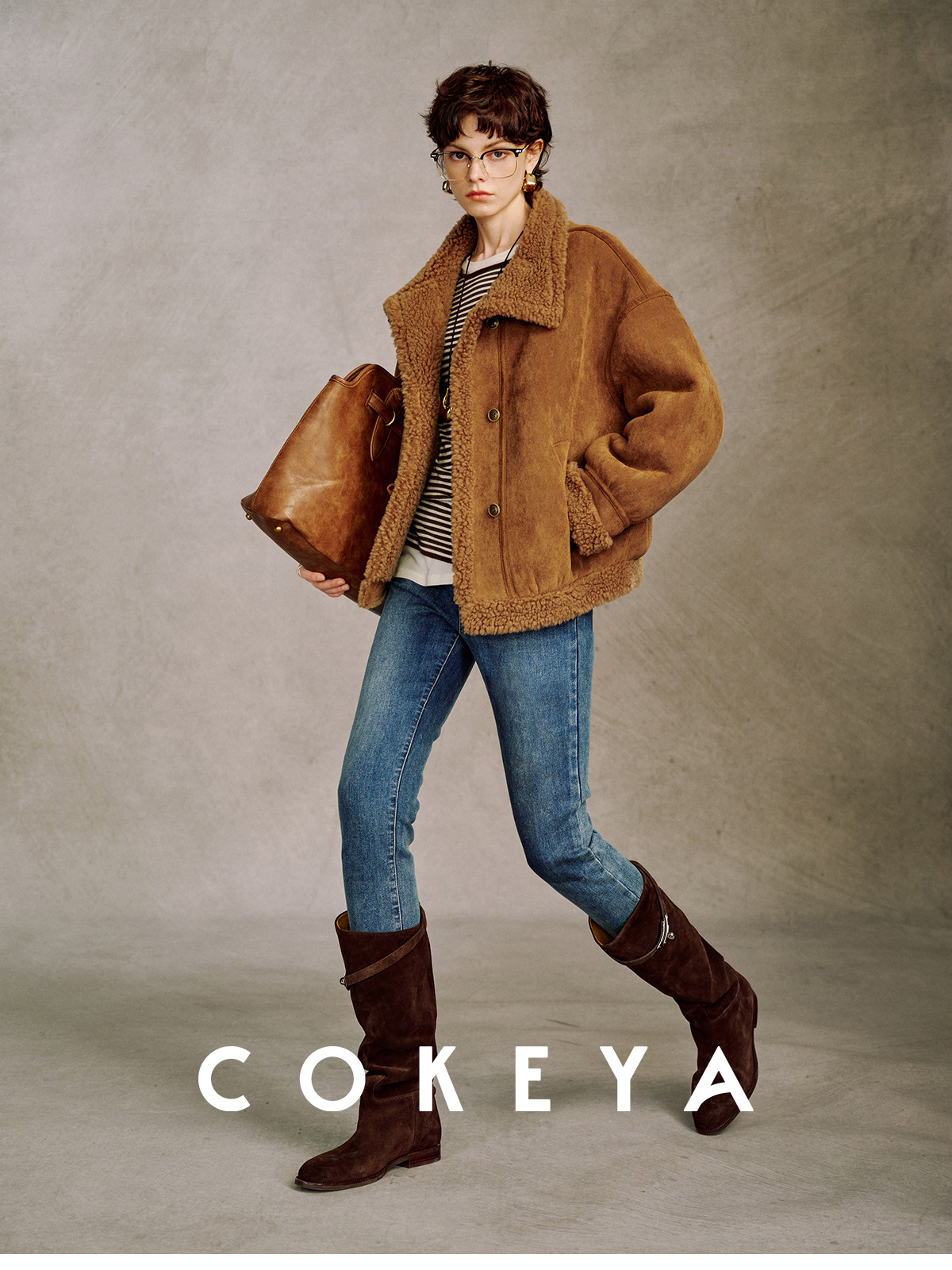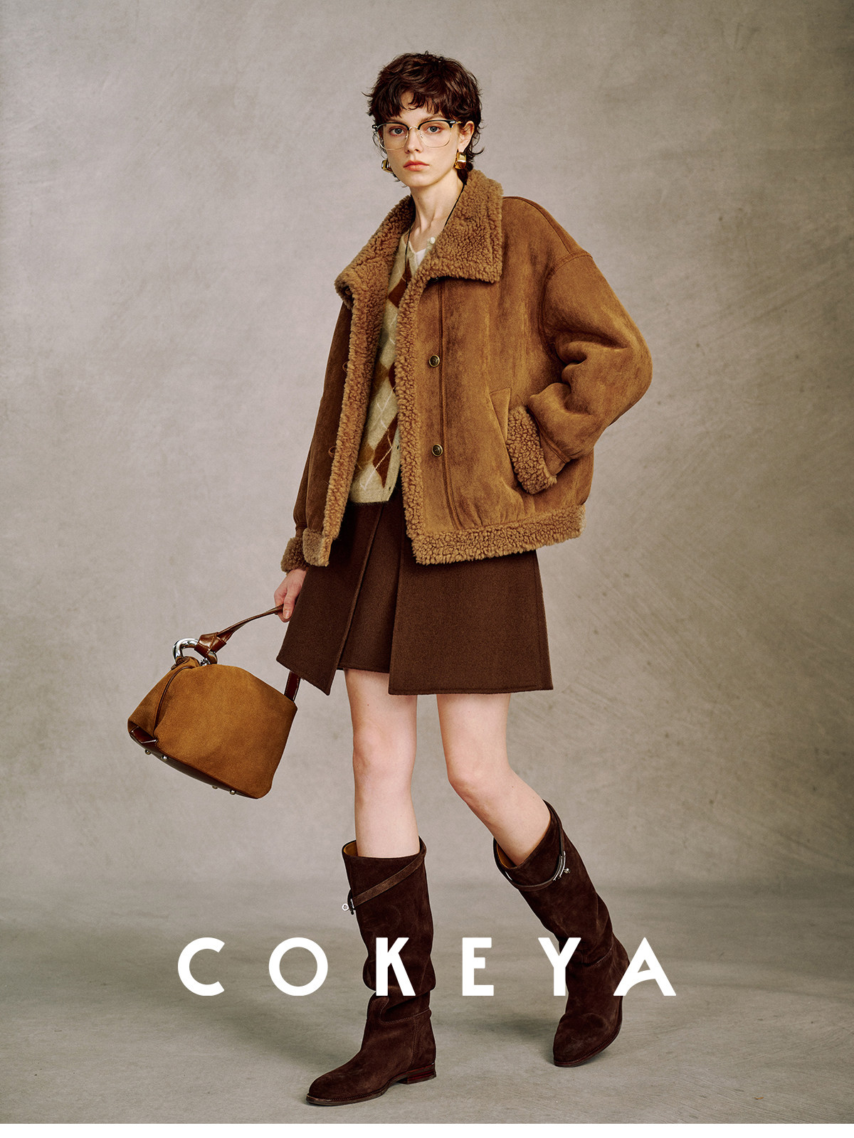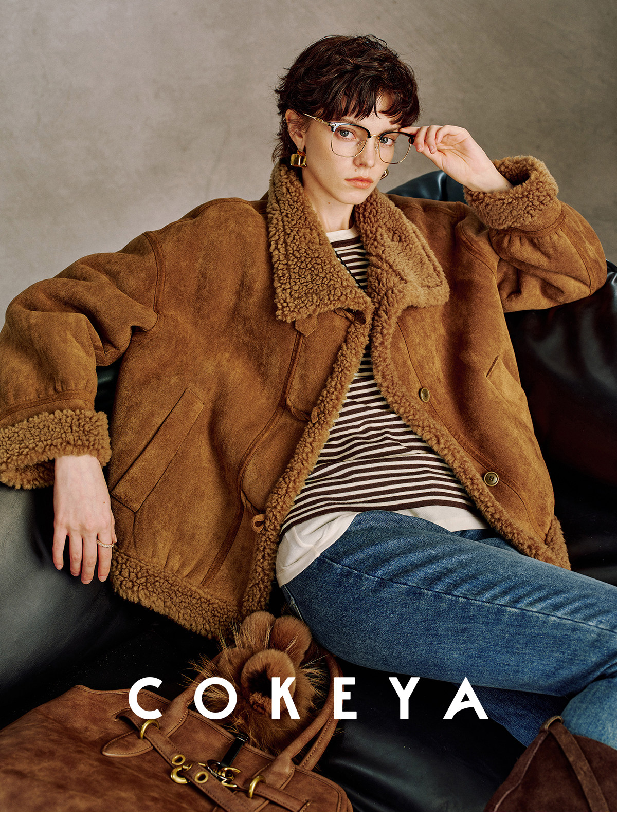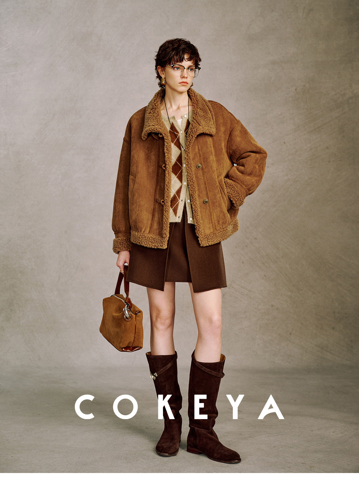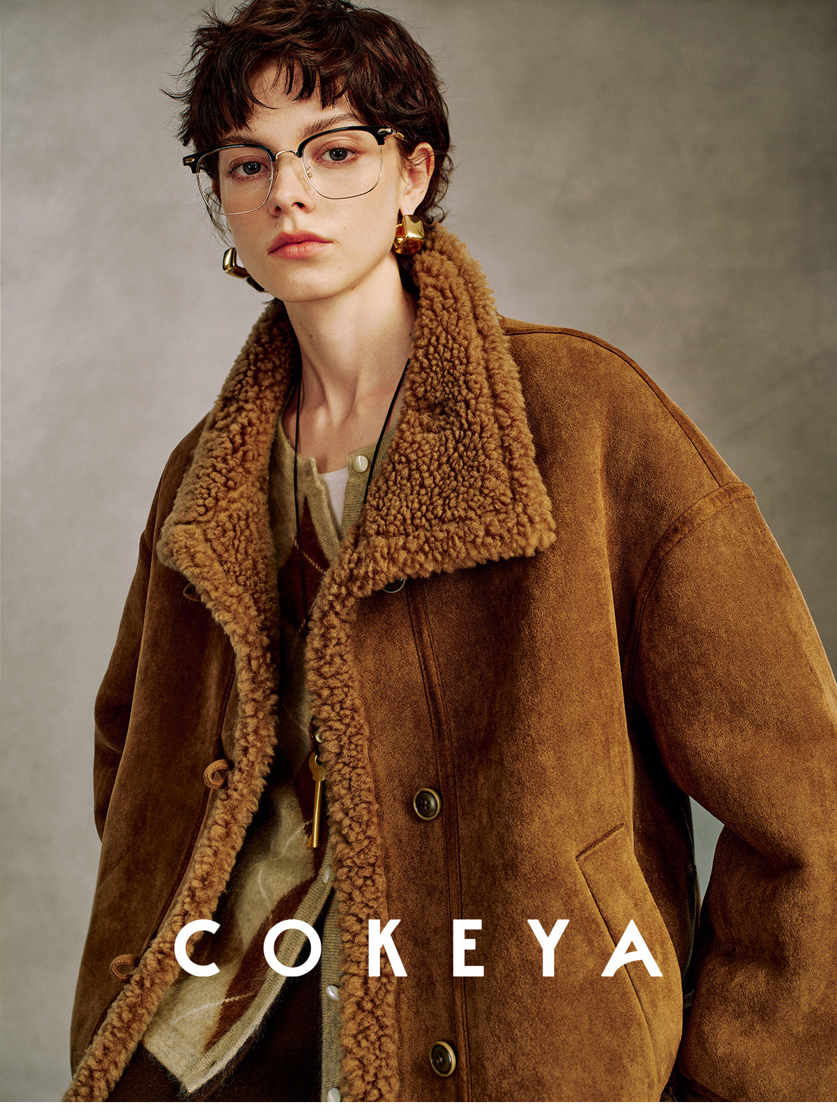 Cokeya/Du Se Gallery~Sheep Wool Suede Stand-Up Collar Short Loose Long-Sleeved Jacket Fur Outwear for Women Winter