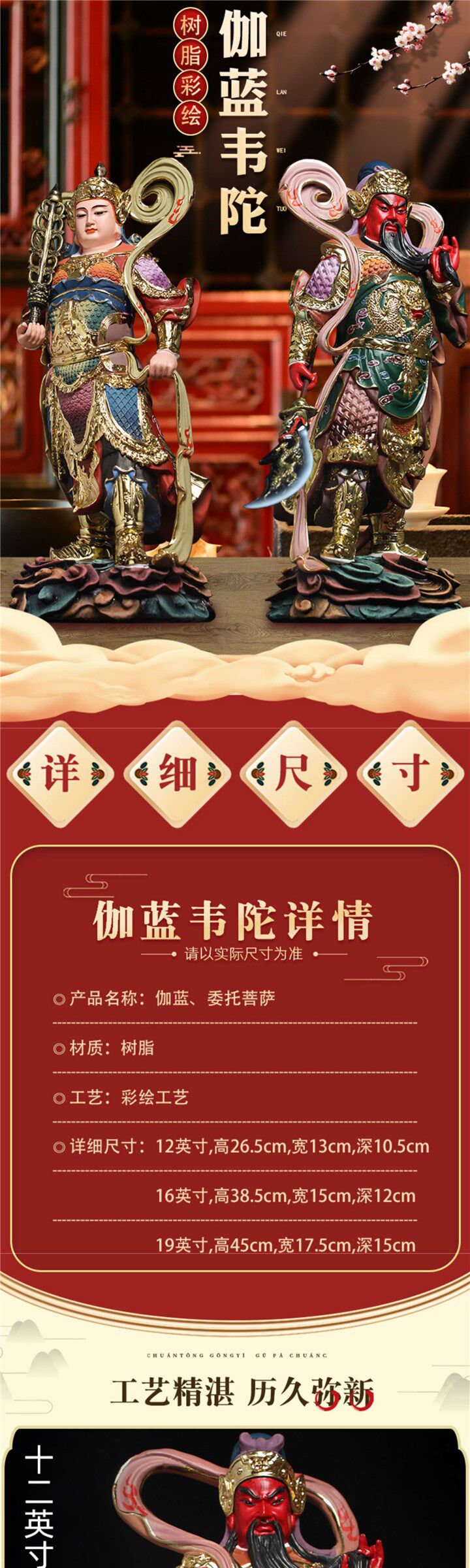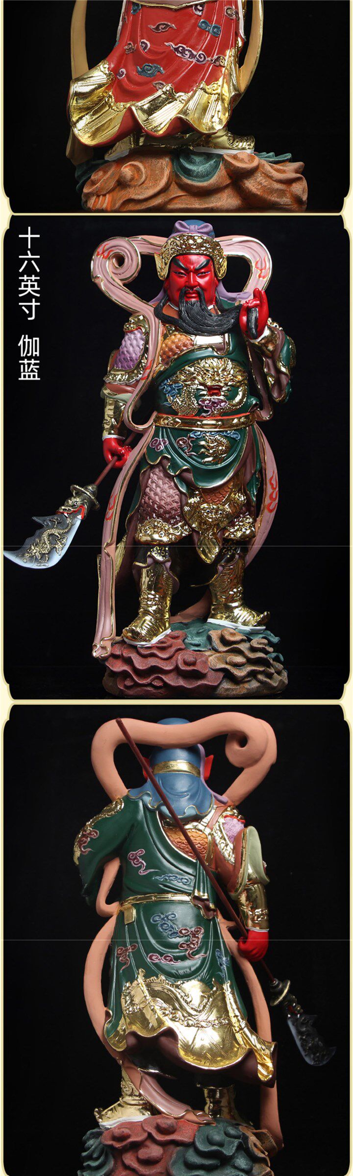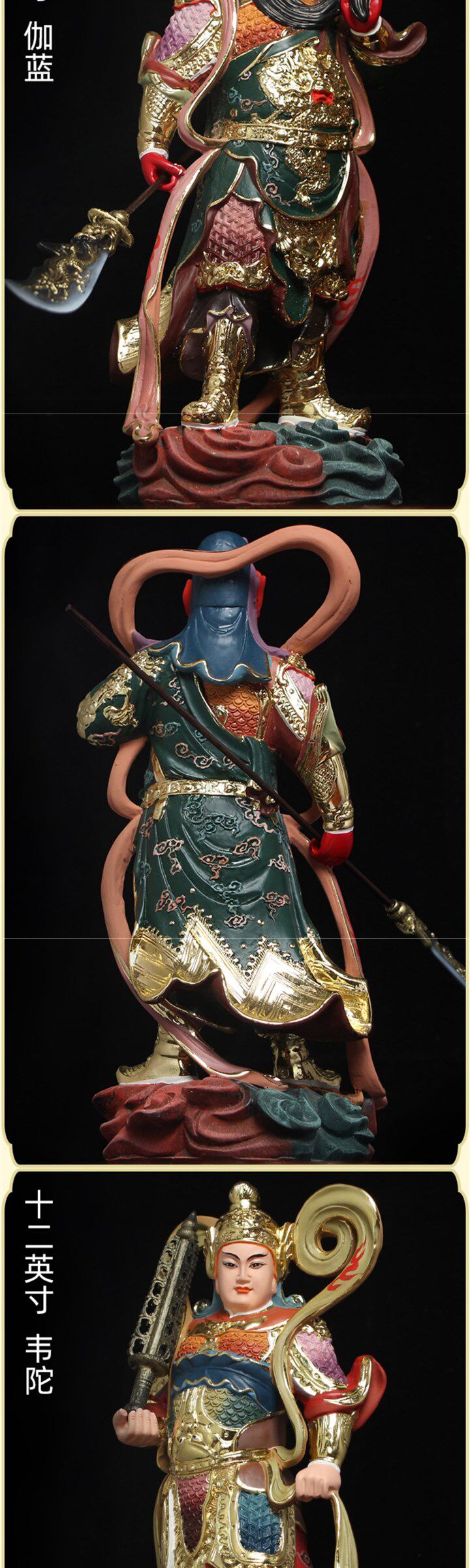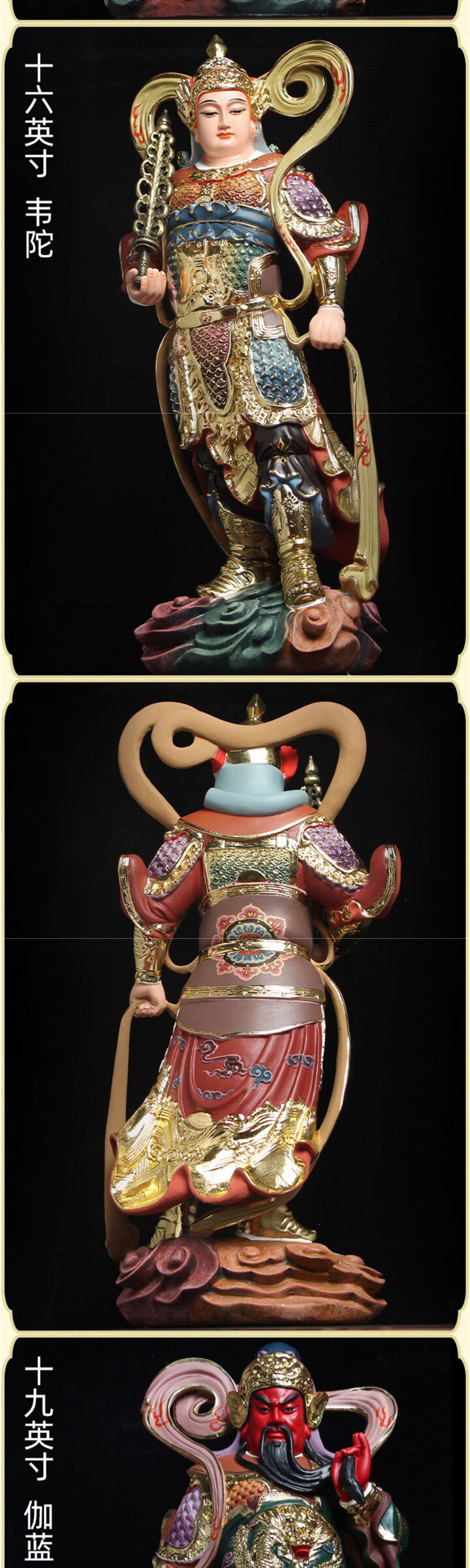 The popular left and right Dharma protector Jialanweituo Bodhisattva Buddha statue Guan Gong God of Wealth Wei Tuo temple Buddhist hall worship ornaments for home use