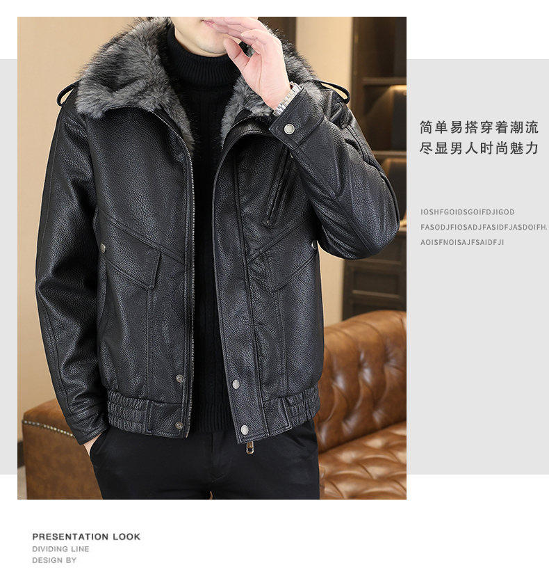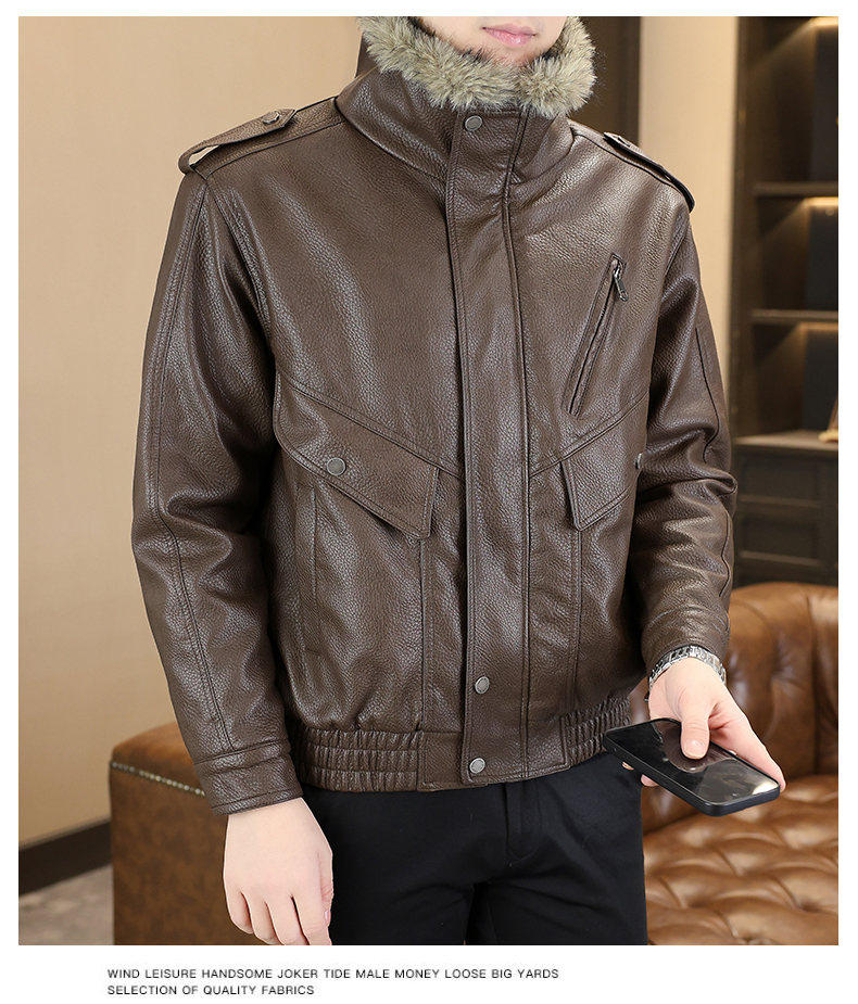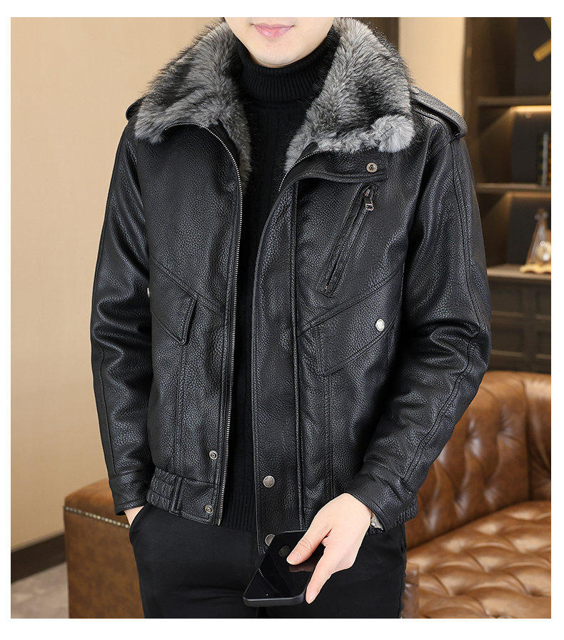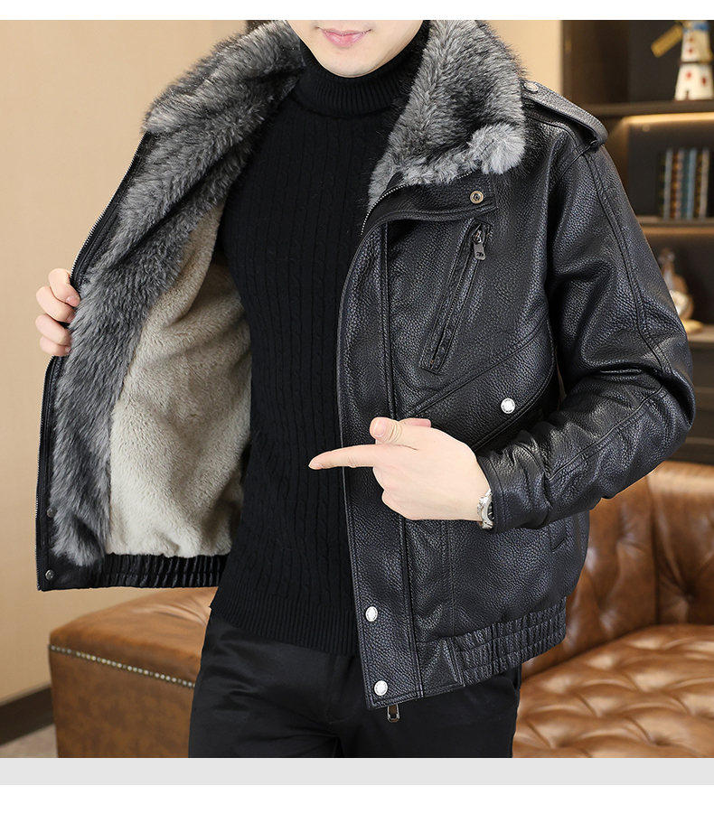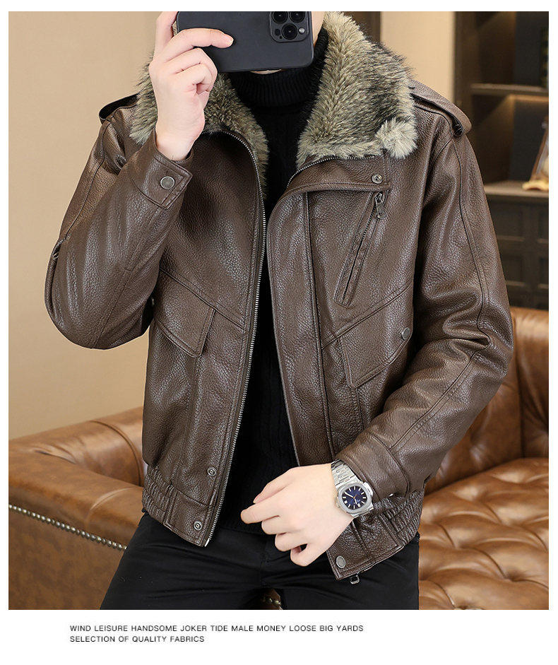 Winter new style lapel high-end large fur collar plus velvet thickened leather jacket jacket for men's youth warm mountain sculpture