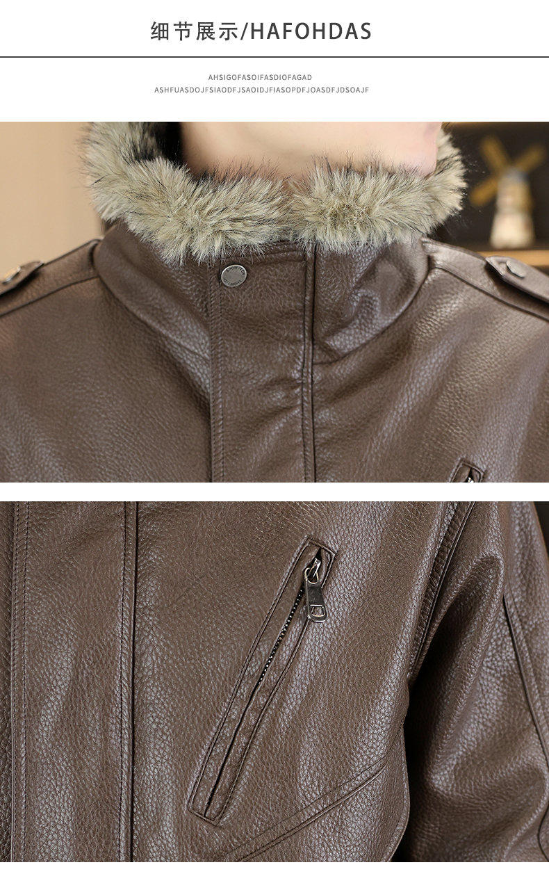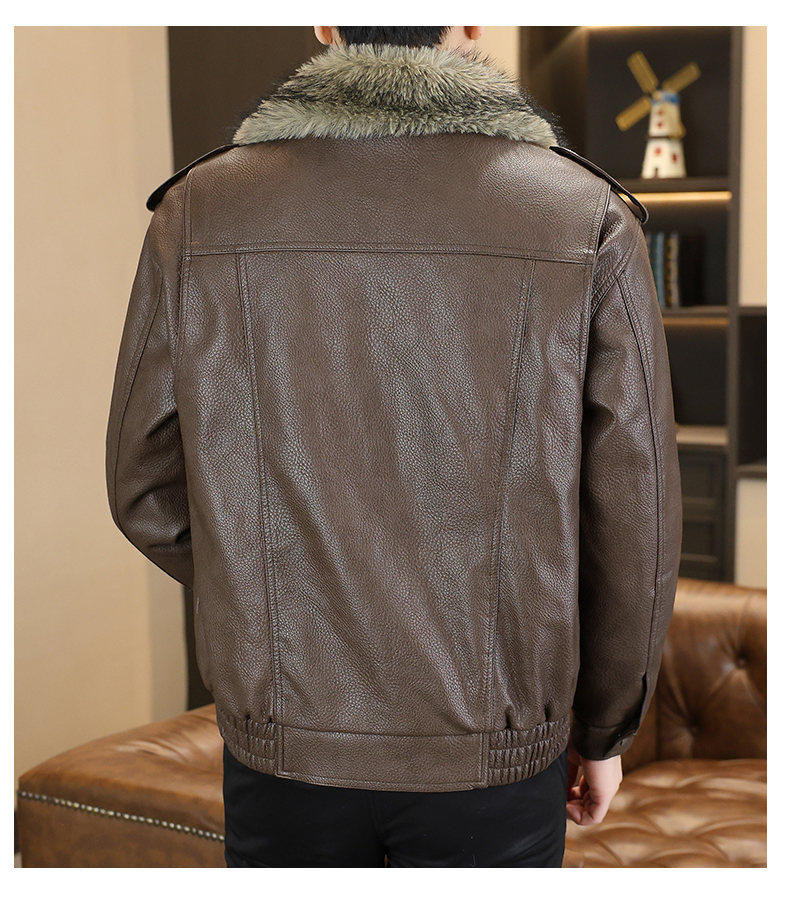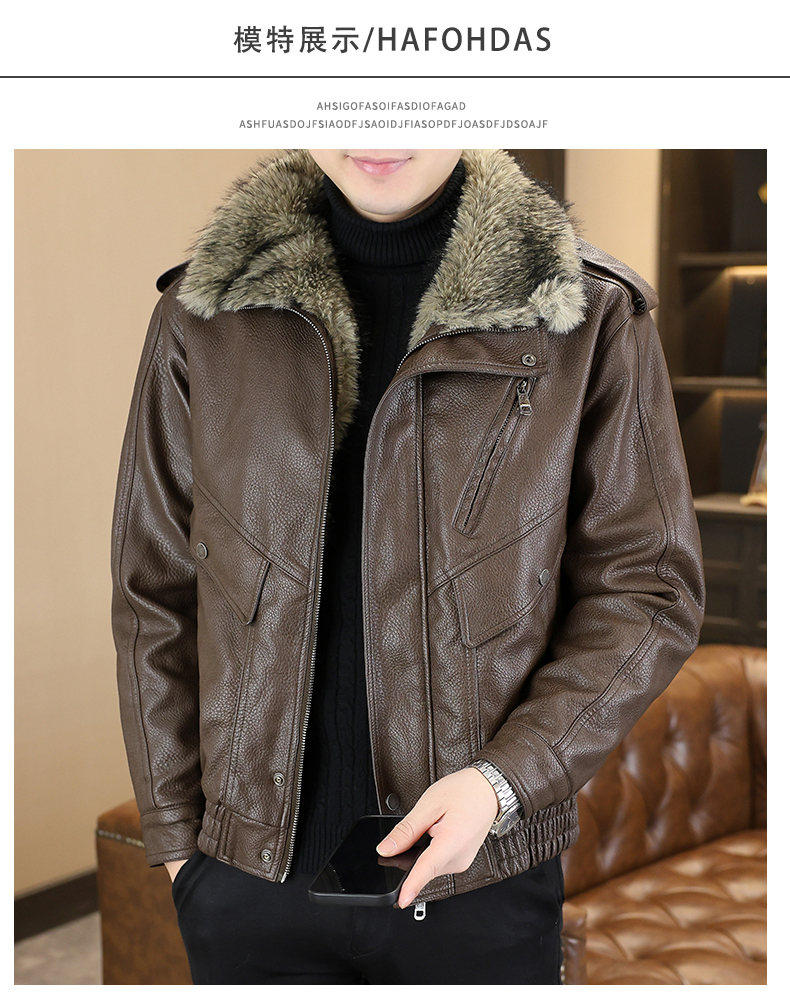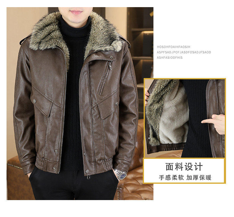 Winter new style lapel high-end large fur collar plus velvet thickened leather jacket jacket for men's youth warm mountain sculpture